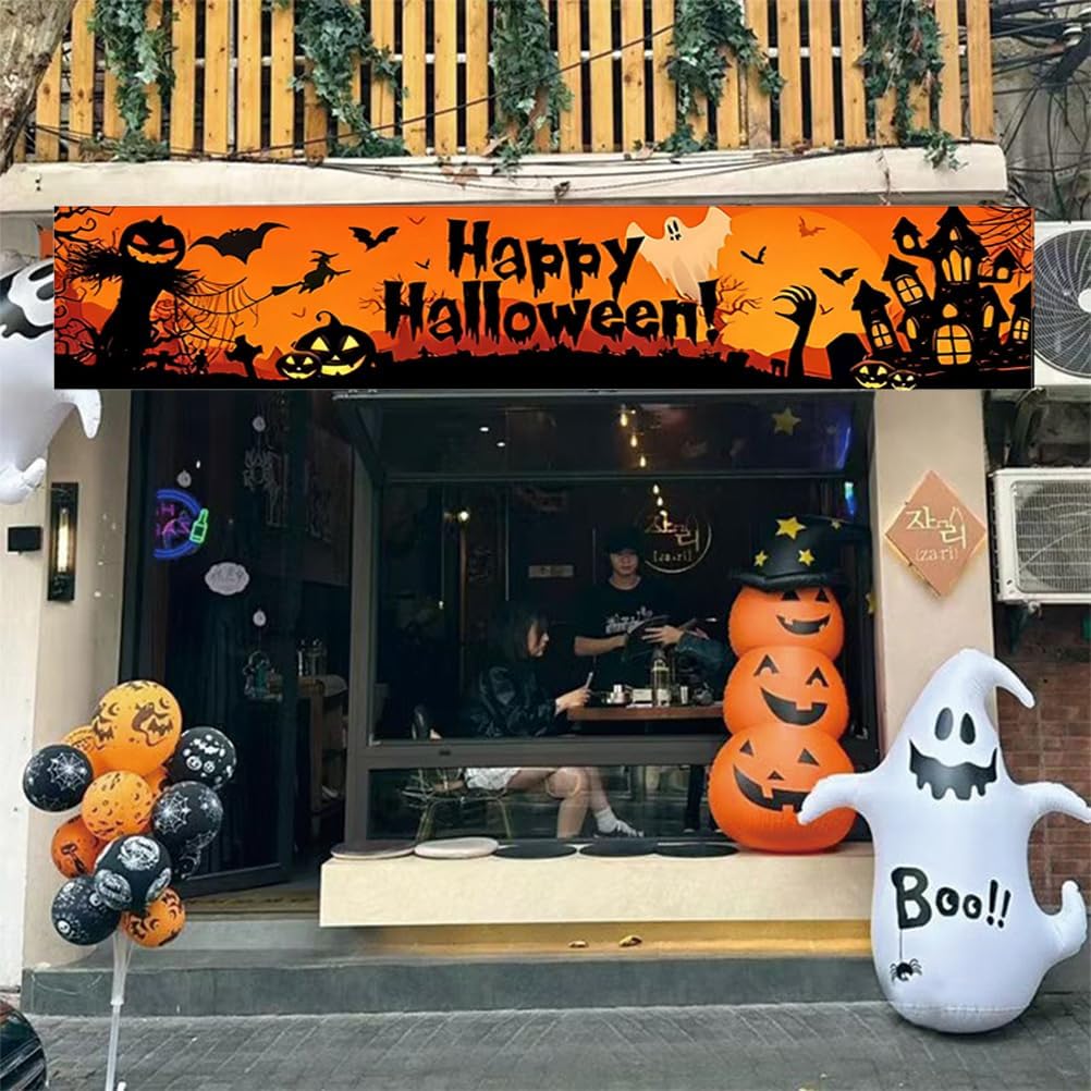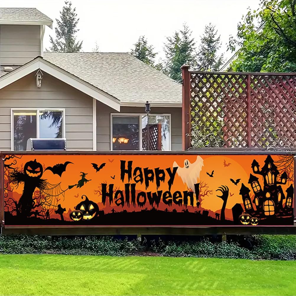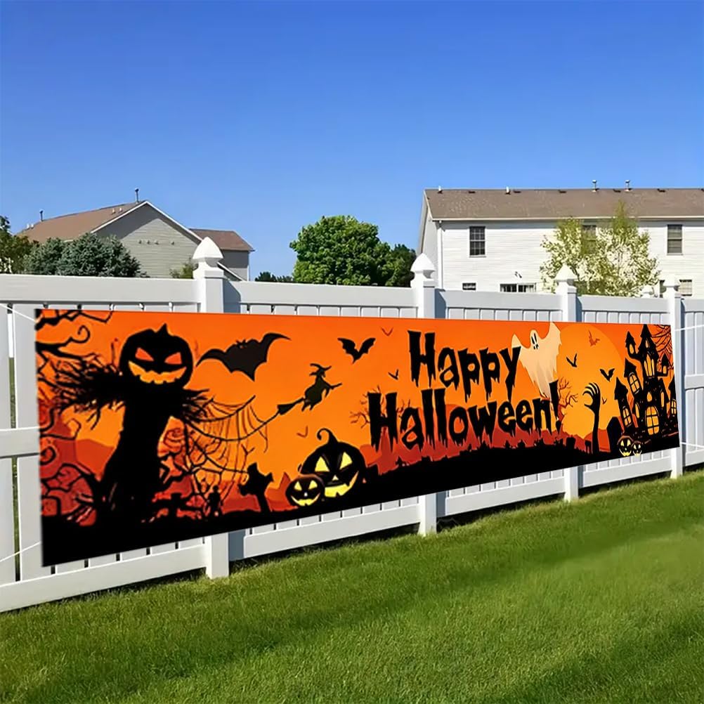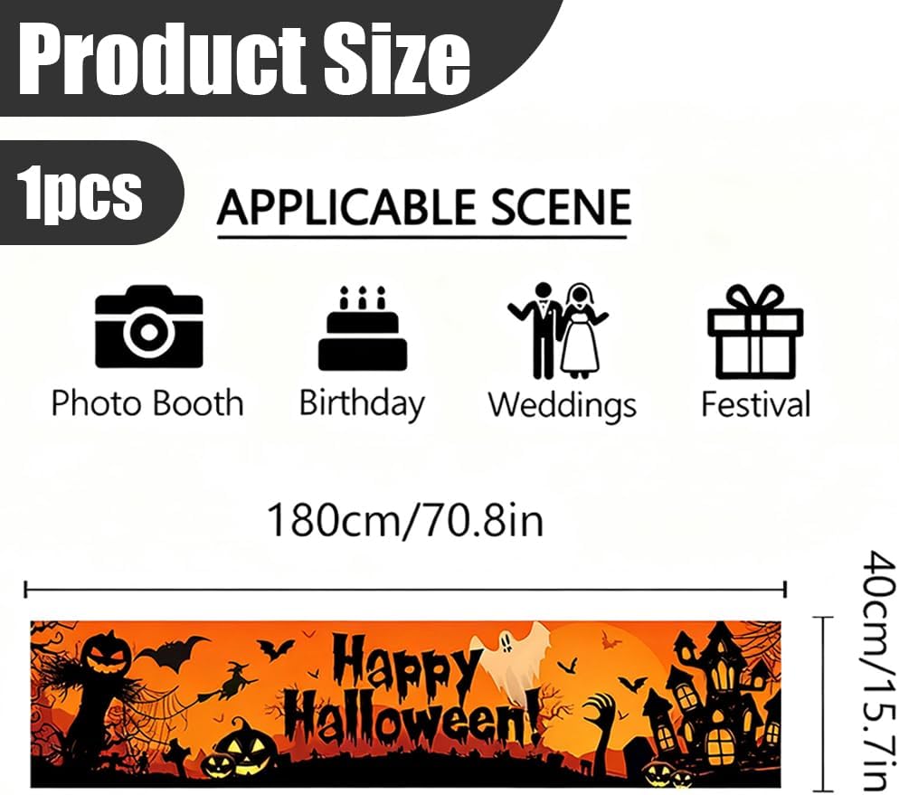 Design vivace per Halloween: questo festoso striscione presenta un design vivace con zucche, fantasmi ed elementi inquietanti. Crea immediatamente un'atmosfera spettrale di Halloween, perfetta per zone fotografiche, feste o qualsiasi evento di Halloween. Resistente e riutilizzabile: realizzato in tessuto di poliestere, il banner è resistente agli strappi, pieghevole e facile da riporre. Progettato per essere utilizzato anno dopo anno, offre una scelta economica per le decorazioni di Halloween. Facile da appendere: gli anelli agli angoli consentono di infilare facilmente il cordino incluso e di appenderlo ovunque, all'interno o all'esterno. Non sono necessari strumenti o configurazioni complicate. Versatile per molteplici ambientazioni: adatto a tutte le occasioni legate ad Halloween. Che si tratti di feste a casa, eventi scolastici o riunioni di comunità, questo banner aggiunge uno spirito festoso a qualsiasi spazio. Dimensioni decorative perfette: con una misura di 180×40 cm, il banner è sufficientemente grande da fungere da sfondo accattivante, pur rimanendo compatto per una facile manipolazione e conservazione. Ha un forte impatto visivo senza dominare lo spazio.