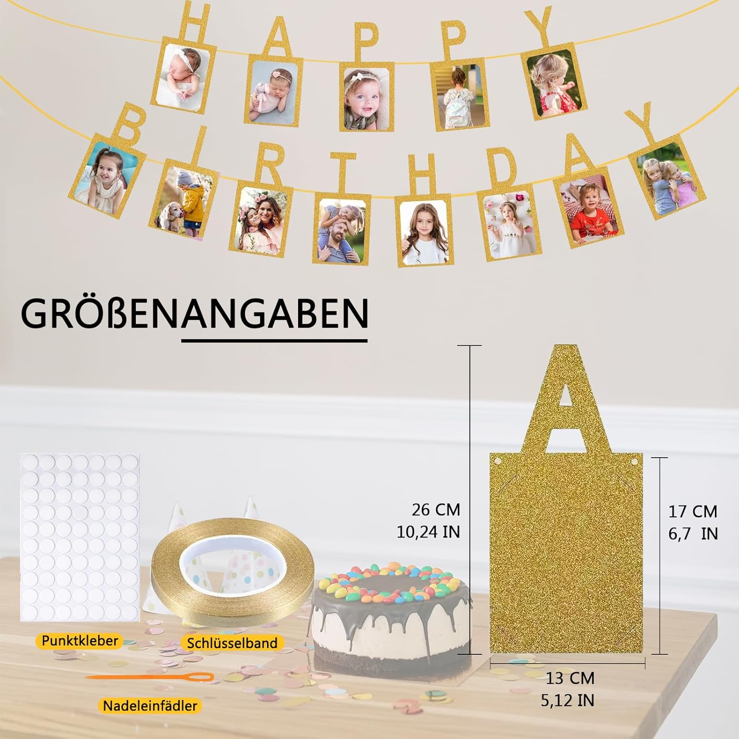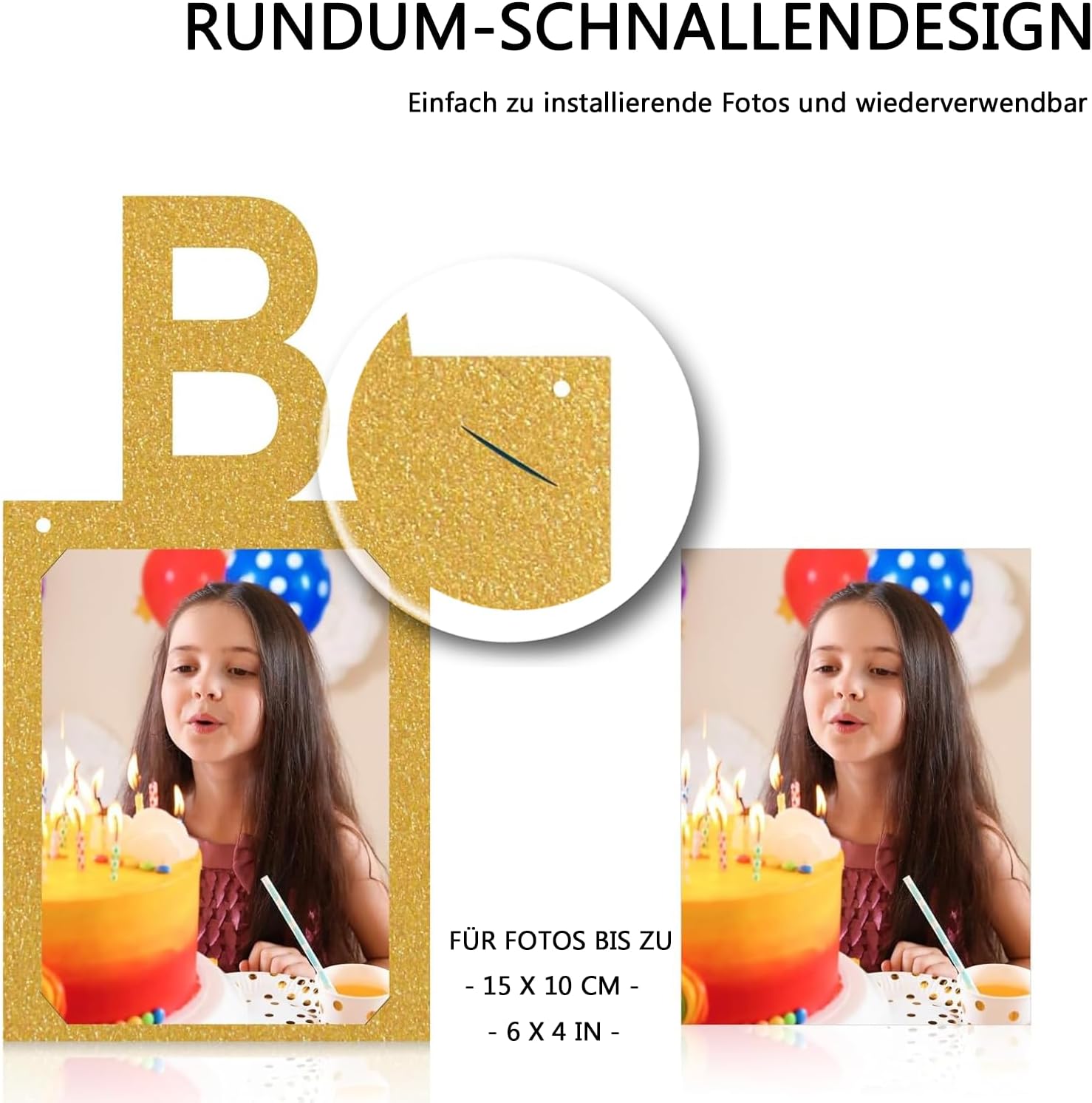 ✅【DECORAZIONE PERFETTA】La nostra ghirlanda fotografica di compleanno è il modo perfetto per condividere bellissimi ricordi con la famiglia e gli amici. Che si tratti di un compleanno, una festa o un uso all'aperto, le decorazioni di compleanno con 13 lettere ti lasceranno ricordi indelebili. ✅【Il set include】Il set di ghirlande di compleanno include 13 archi di ghirlande fotografiche con etichette, un infila-ago di plastica, un foglio di colla a punti e un rotolo di nastro dorato. Utilizza l'infila-ago per un facile montaggio, quindi appendi ogni arco di ghirlanda fotografica nella posizione desiderata. Facile da installare e personalizzare a proprio piacimento. ✅【Informazioni sulle dimensioni】Il lato più lungo della decorazione di compleanno misura 26 x 13 cm (10,24 x 5,12 pollici), che può contenere una foto di 15 x 10 cm (6 x 4 pollici); la lunghezza totale del cordino è di 500 cm (196 pollici), che è abbastanza lunga per un uso ripetuto. ✅【Materiali di alta qualità】Questa ghirlanda di compleanno è realizzata in carta di alta qualità, che non si rompe facilmente, e anche le paillettes dorate sulla carta sono molto lucide e resistenti e adotta uno speciale processo di laminazione delle paillettes, che non si stacca facilmente. ✅【Servizio clienti】In caso di problemi durante l'utilizzo delle decorazioni di buon compleanno, non esitate a contattarci. Risponderemo alle vostre domande in tempo utile e forniremo un servizio di reso e cambio gratuito.