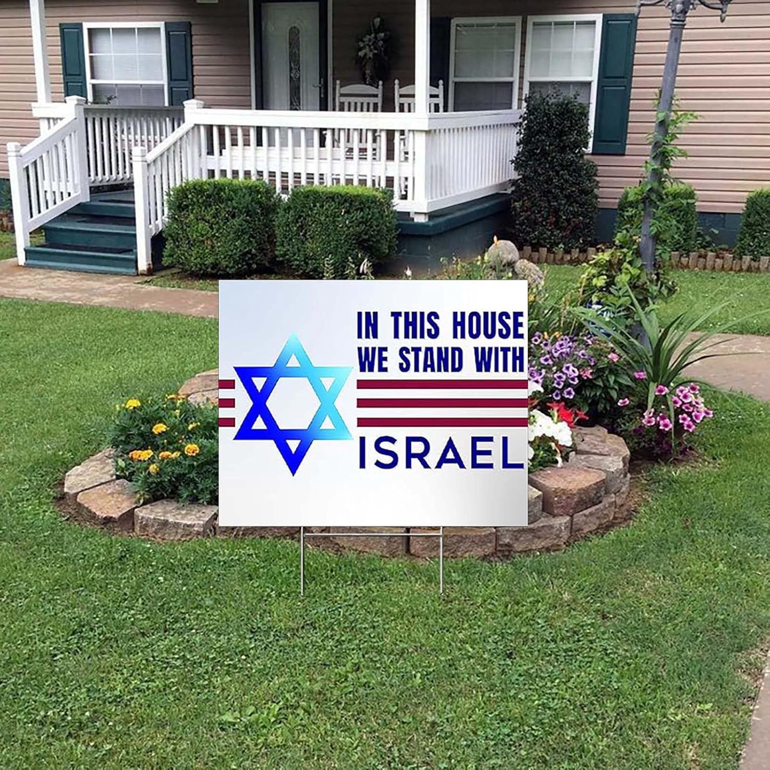 3. Design accattivante: la scritta e il design elegante rendono questo paletto da giardino un'aggiunta sorprendente a qualsiasi giardino, o spazio esterno. 1. Mostra il tuo supporto: mostra il tuo incrollabile sostegno per Israele con questo elegante paletto da giardino con la scritta "In This House We Stand With Israel" 2. Struttura in metallo acrilico: questo cartello da cortile è costruito per resistere alle condizioni esterne, garantendo un uso duraturo. 4. Facile installazione: il palo ha un'estremità appuntita per un'installazione facile su qualsiasi superficie morbida del terreno, permettendoti di mostrare con orgoglio il tuo supporto in pochi minuti. 5. Regalo perfetto: ideale come regalo, questo paletto da giardino è un regalo premuroso per amici e familiari