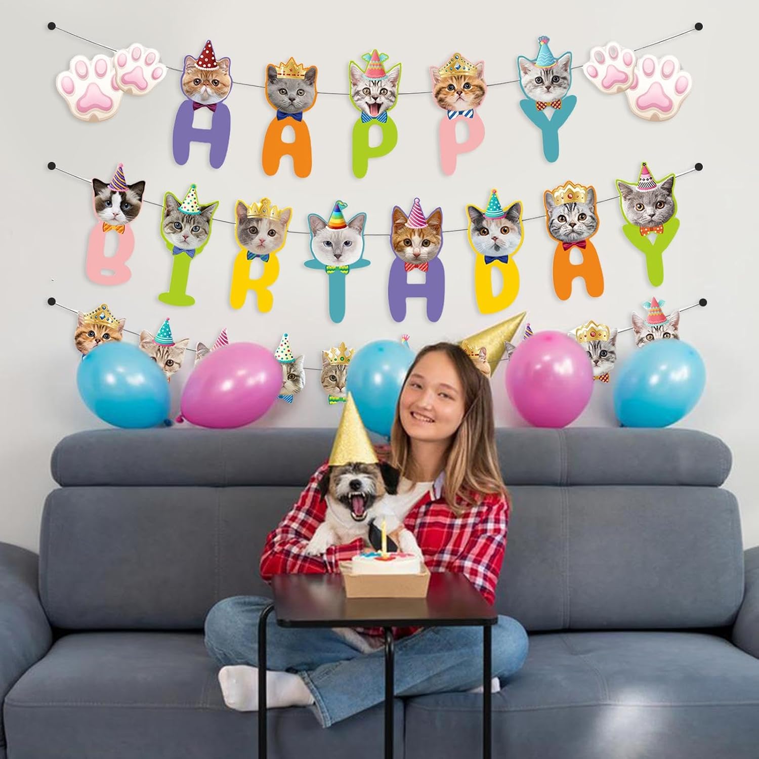✩Festa delle fusa: organizza una festa indimenticabile per il tuo gatto con il nostro striscione di compleanno per gatti, completato da un simpatico striscione di buon compleanno a forma di zampa di gatto e un adorabile striscione con la faccia di gatto. Ideale per una festa a tema gatti. Il nostro set include una confezione per una decorazione semplice. ✩ Materiale in cartone: realizzato in cartone robusto per garantire durata, questo striscione per il compleanno di gatti presenta design vivaci e resistenti ai colori ed è riutilizzabile grazie alla tecnologia di stampa. ✩ DIVERTIMENTO UNICO PER LE FESTE: appendi facce e zampe di gatto dove preferisci utilizzando il cordino flessibile del nostro striscione di compleanno per gatti. Puoi regolare la spaziatura delle carte come preferisci e dare libero sfogo alla tua creatività mentre organizzi una festa unica e vivace per il tuo amico felino. ✩Temi per gatti: ravviva qualsiasi riunione con il nostro striscione per compleanno di gatti, che mostra una deliziosa progressione di adorabili facce di gatti con zampe carine, perfetti per compleanni, baby shower e per portare felicità che tu sia il proprietario di un gatto o meno. ✩Ampiamente usato: che si tratti di un compleanno, di un baby shower o dell'adozione di un animale domestico, questo simpatico striscione per gatti è la decorazione perfetta per aggiungere divertimento alla tua celebrazione. Versatile per molteplici occasioni, perfetto per chi vuole decorare la propria festa con fascino giocoso e creare ricordi eterni.