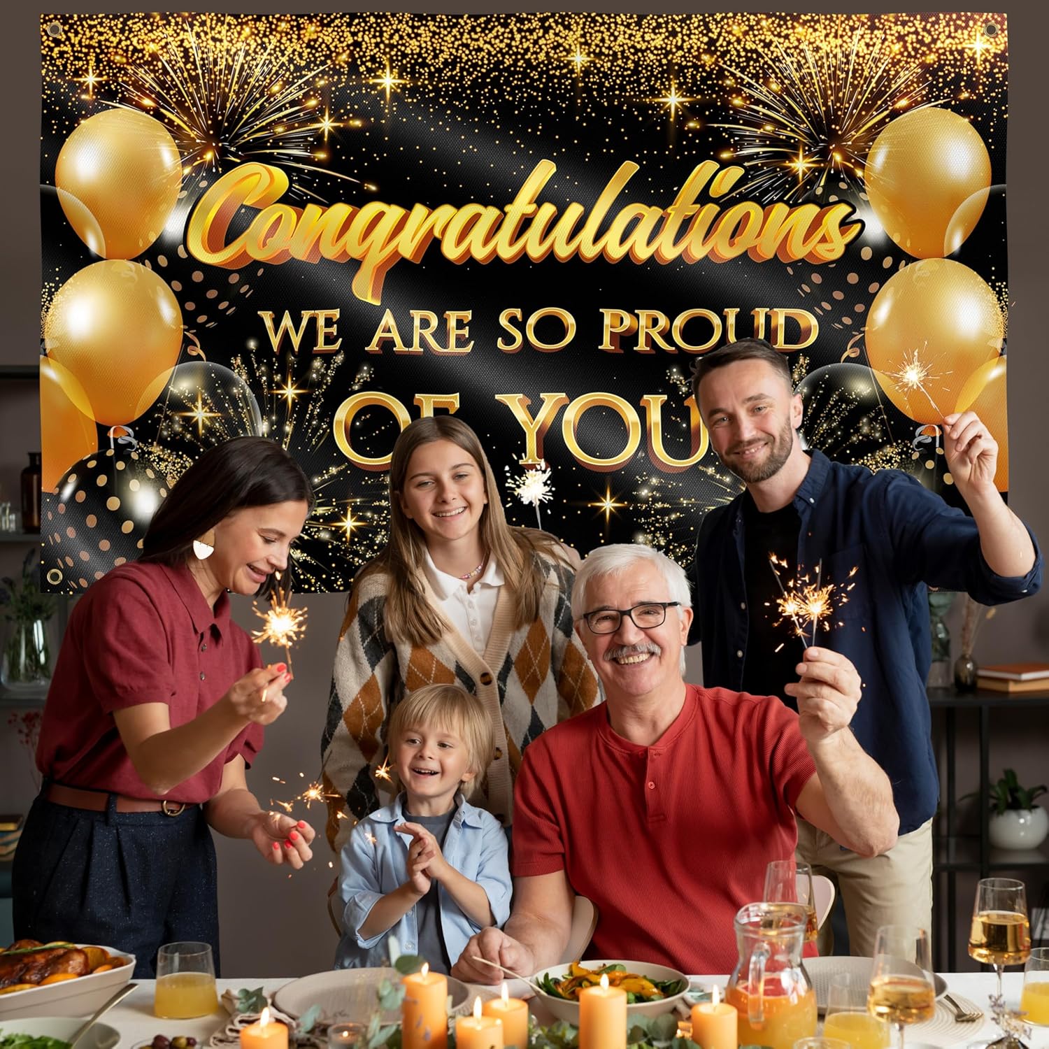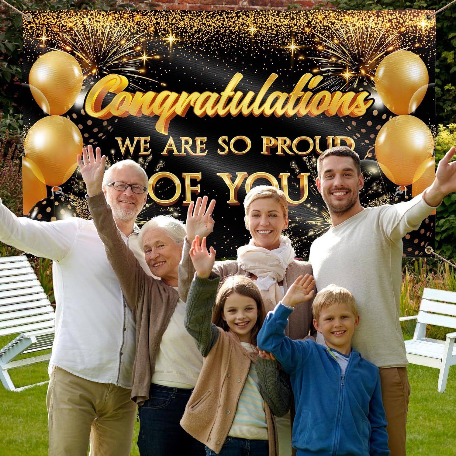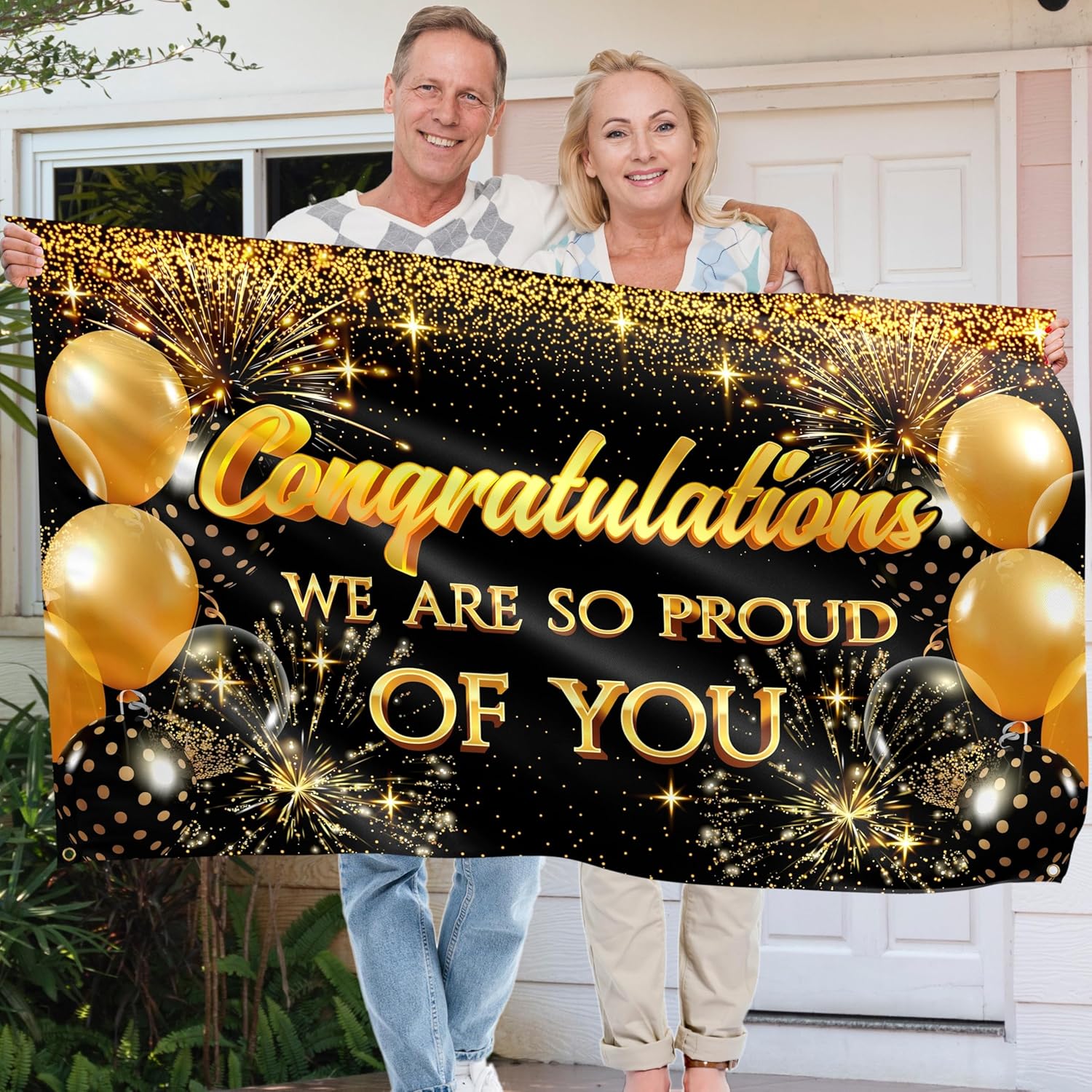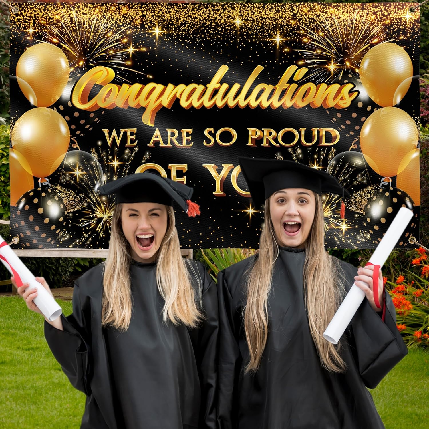 Ravviva la tua festa: i colori sono opportunamente scelti per la stampa su tessuto, rendendoli molto nitidi e vibranti. Lo striscione creerà l'atmosfera della tua festa di laurea e potrà essere utilizzato come decorazione fotografica per scattare foto indimenticabili. Regalo perfetto per i laureati,Materiale durevole: il nostro grande banner di sfondo di congratulazioni è realizzato in poliestere 110D resistente agli strappi e doppia cucitura tutt'intorno. Il tessuto resistente e lavabile rende orgoglioso il tuo striscione perfetto per un uso frequente, così potrai conservarlo per il prossimo anno e utilizzarlo più volte come decorazioni per la festa di laurea. 【Per uso interno o esterno】 Il colorante è stato trattato per resistere ai raggi UV, rendendo i banner di sfondo adatti per l'uso esterno al sole. 4 fori in ottone per un facile fissaggio a qualsiasi muro di casa o recinzione del giardino e un tessuto leggero di alta qualità consentono di allungare lo striscione in modo che non si pieghi e mantenga la sua forma. Decorazione perfetta per una festa universitaria! 【Specifiche】La confezione include 1 banner di congratulazioni 5x3 piedi con 4 fori in ottone. Senza corda, supporti, borse o clip. Pezzo di decorazione perfetto per la tua festa in età prescolare, superiore o universitaria, riunione di famiglia o riunione. Nota: per rimuovere le rughe, utilizzare la stiratura a vapore in modalità a bassa temperatura dal retro. Non provare a stirare a secco! È meglio stendere un ulteriore strato di tessuto sul banner di laurea per non distruggere la stampa.