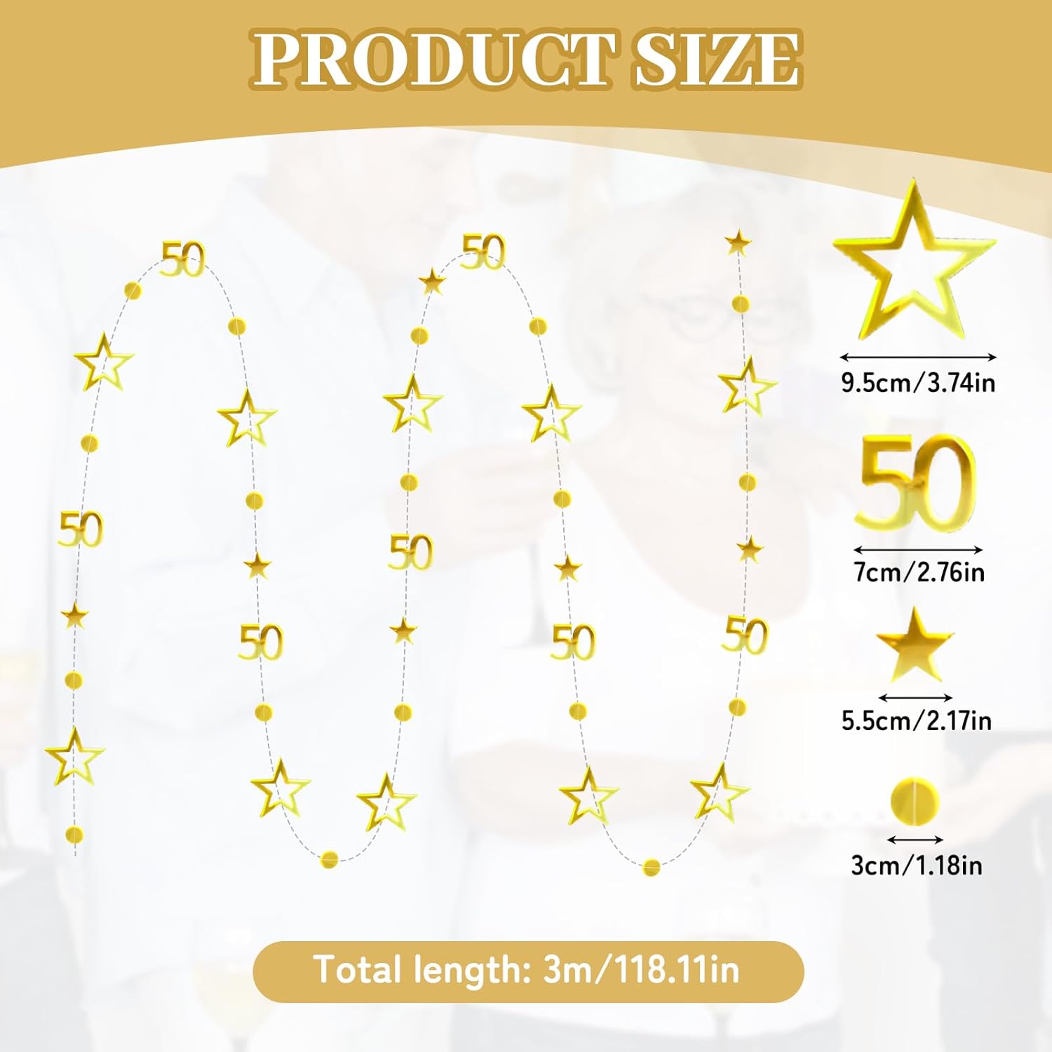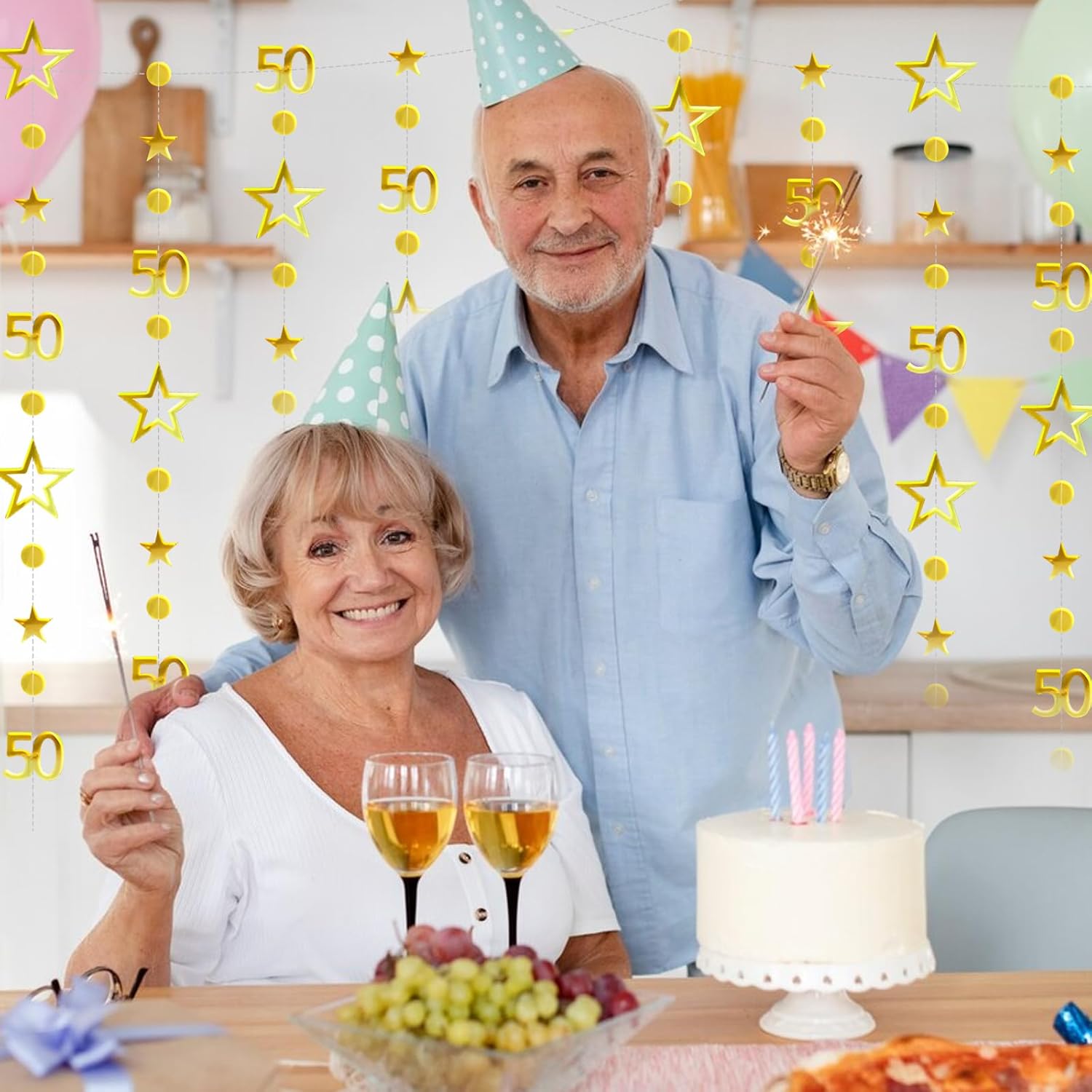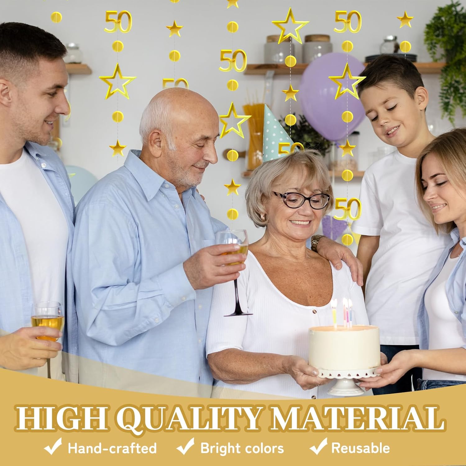 [Contenuto della confezione]: ottieni uno striscione dorato per il cinquantesimo compleanno da 3 metri con numeri "50" lucenti (circa 8 cm di altezza), stelle vuote (9,5 cm di larghezza), stelle solide (5 cm) e divisori a punti coordinati (3 cm). Personalizza facilmente l'arredamento tagliando, unendo e disponendo gli elementi per creare uno spazio vibrante e trasformato rapidamente e senza eccessivo disordine. [Materiale Premium]: Realizzata in robusto cartone metallico fronte-retro con fili rinforzati, questa decorazione è riutilizzabile e resiste allo sbiadimento e agli agenti atmosferici sia all'interno che all'esterno. Progettato per mantenere un aspetto elegante attraverso molteplici usi, risparmia su decorazioni ripetute. [Versatilità per tutti gli eventi]: perfetti come striscioni di compleanno per donne e uomini, questo decoro è ideale per tutti i tipi di eventi come compleanni, serate di gala, fidanzamenti, battesimi, matrimoni e persino barbecue. Trasforma i tuoi luoghi ordinari in straordinari centri celebrativi con uno stile inclusivo adatto a tutti i tuoi eventi familiari o comunitari. [Installazione rapida senza attrezzi]: basta aprire la striscia antigroviglio e appenderla facilmente a pareti, finestre, recinzioni, caminetti, tavoli da dessert o rami di alberi con nastro adesivo o ganci trasparenti. Regola le lunghezze con un paio di forbici in pochi secondi per un'installazione professionale in meno di 5 minuti. [Elegante celebrazione del cinquantesimo compleanno]: crea accattivanti punti focali con questa lussuosa decorazione progettata per celebrare i tuoi risultati personali, professionali o di vita, sia durante cene di riconoscimento, riunioni di famiglia o feste di compleanno. Dai un tocco raffinato alle celebrazioni grandi o piccole, al chiuso o all'aperto.
