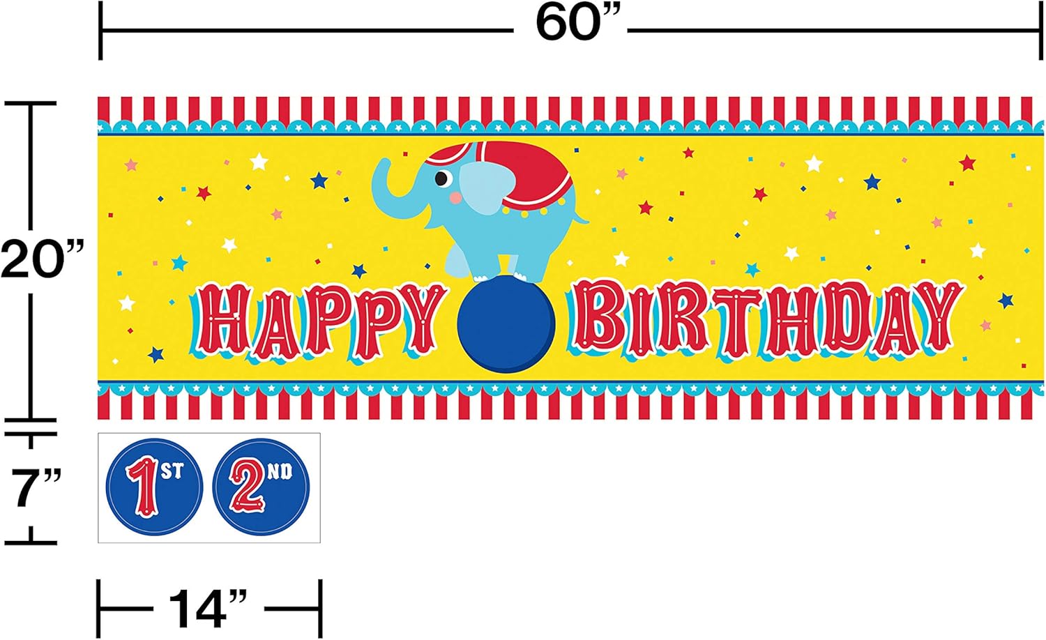 1 striscione decorativo grande per animali da circo misura 20 x 60 pollici. Realizzato in plastica di alta qualità per una facile regolazione. Perfetto per qualsiasi festa circense. Può essere combinato con qualsiasi altro accessorio per feste con animali da circo