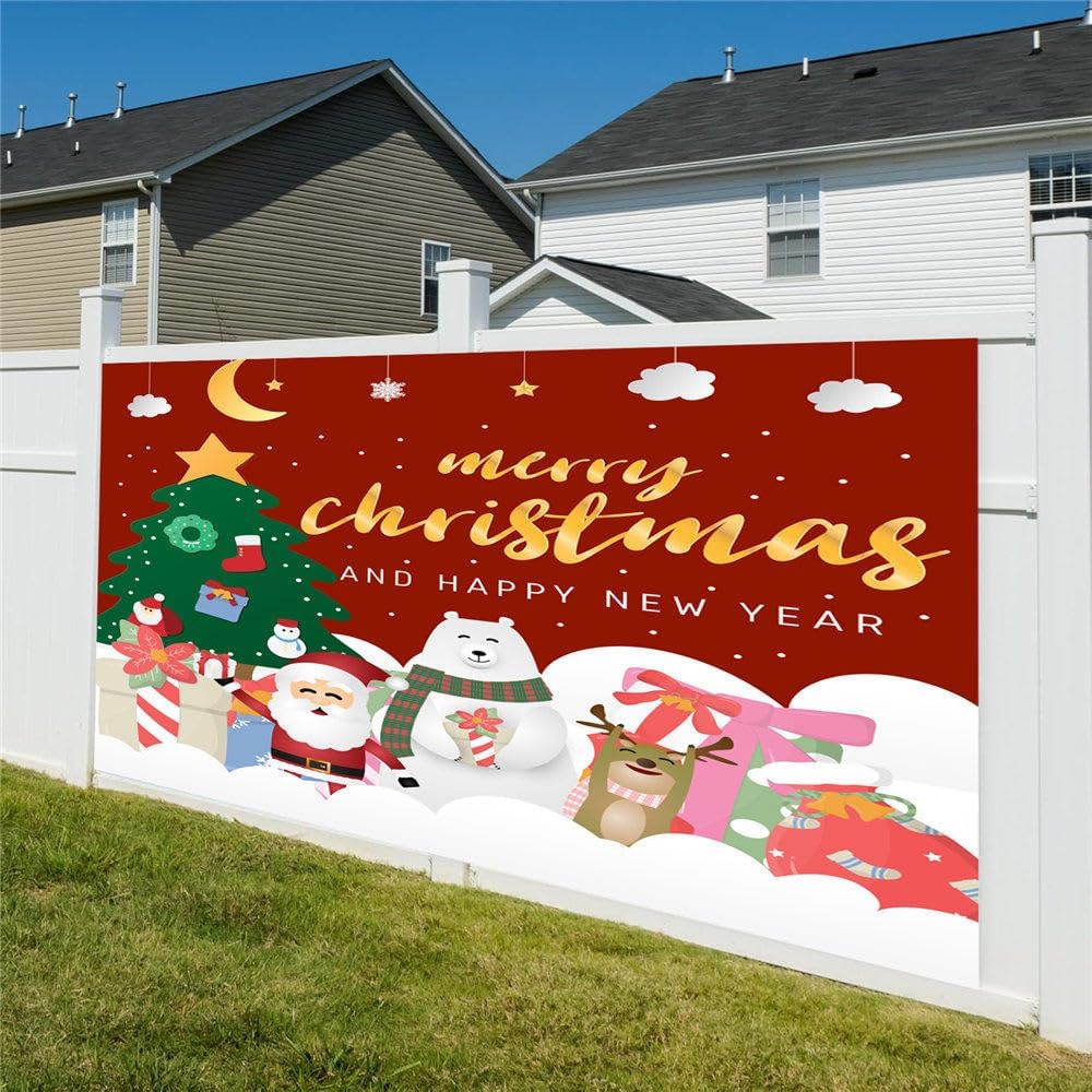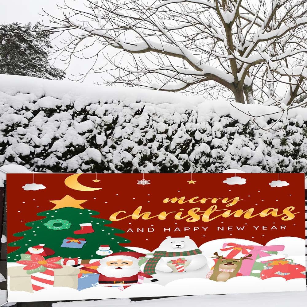 🎄Dimensioni: abbiamo 4 dimensioni tra cui scegliere, 150x200 cm; 180x400 cm / 5,9x13 piedi; 210x240 cm/6,8x7,9 piedi; 210x480 cm/6,8x15,7 piedi, in grado di soddisfare le esigenze di decorazione murale di diverse aree. 🎄Materiale: lo sfondo con striscione natalizio è realizzato in poliestere, facile da asciugare all'aria sotto la pioggia, riutilizzabile, resistente alle pieghe, leggero, facile da riporre e trasportare. Il motivo è stampato digitalmente, il colore è più vivido e la stampa è chiara. 🎄 Bellissimo sfondo natalizio: striscione natalizio adatto per la decorazione del giardino di Natale, decorazione della parete della casa di Natale, decorazione del corridoio del balcone di Natale, decorazione dello sfondo della cabina fotografica di Natale, decorazione della tavola di Natale. 🎄Ampie applicazioni: gli striscioni natalizi possono essere decorati sulla porta d'ingresso o sul cortile, adatti per finestre di stanze alte, portici e sfondi per feste. Eccellente decorazione pittorica per giardini, bar, club, scuole, aziende, ecc. 🎄Facile da usare: ci sono fori in ciascuno dei quattro angoli con 4 occhielli in metallo di questo allegro striscione natalizio. Devi solo prenderti qualche minuto per legarli con dei nastri e appenderli all'albero, al tuo giardino, alla recinzione, al soffitto, a una porta, a una finestra, ad un arco e in qualsiasi posto tu voglia, o come sfondo quando scatti delle foto.