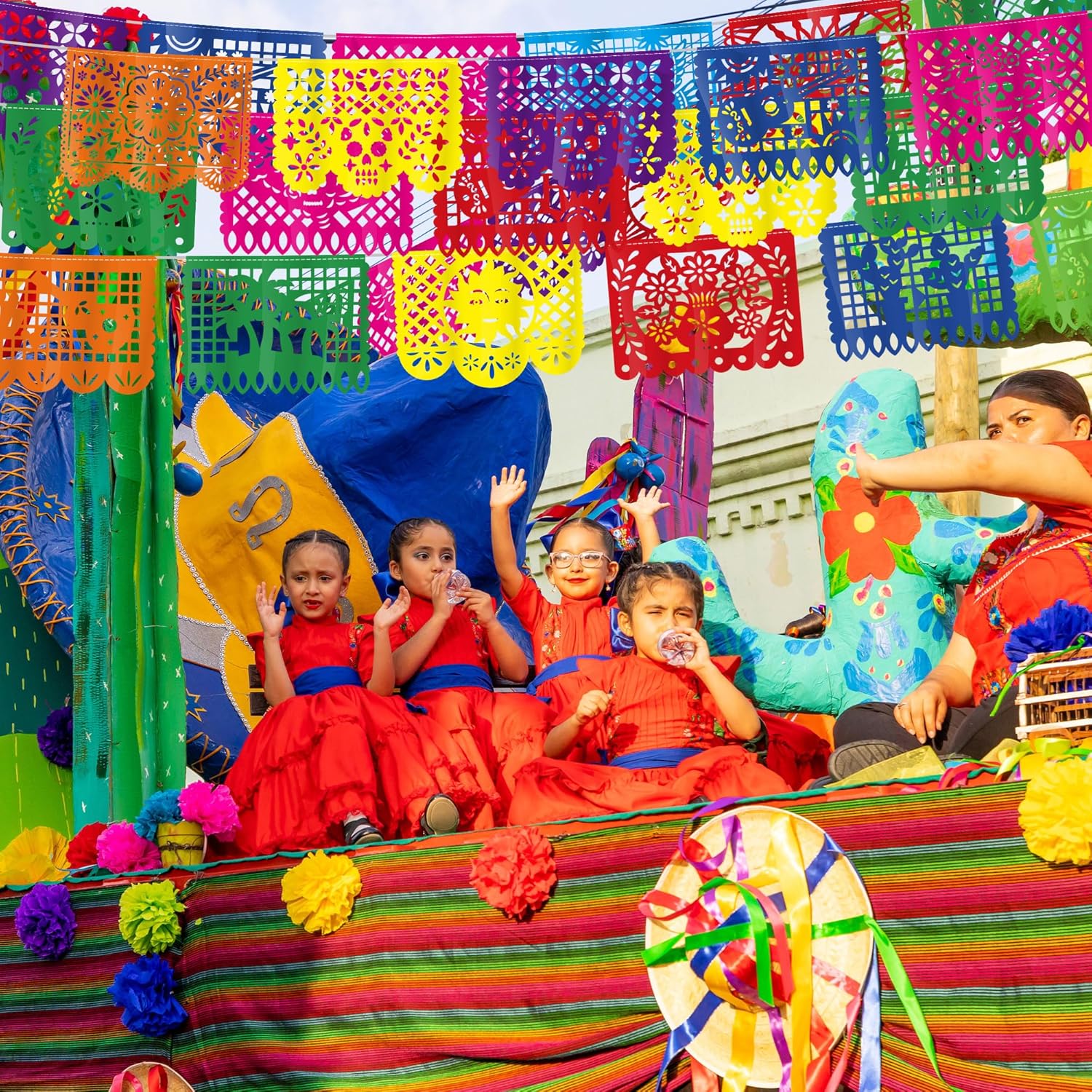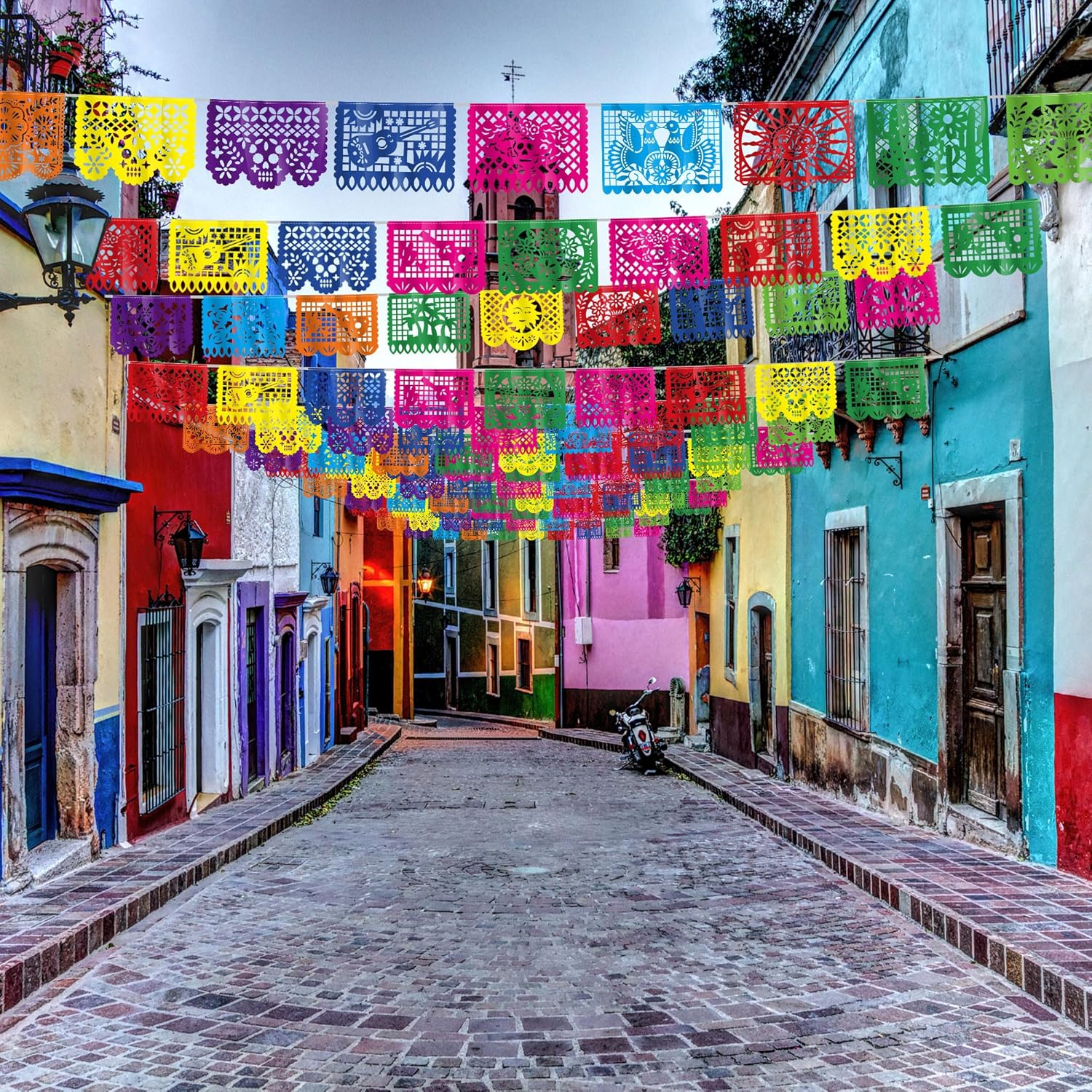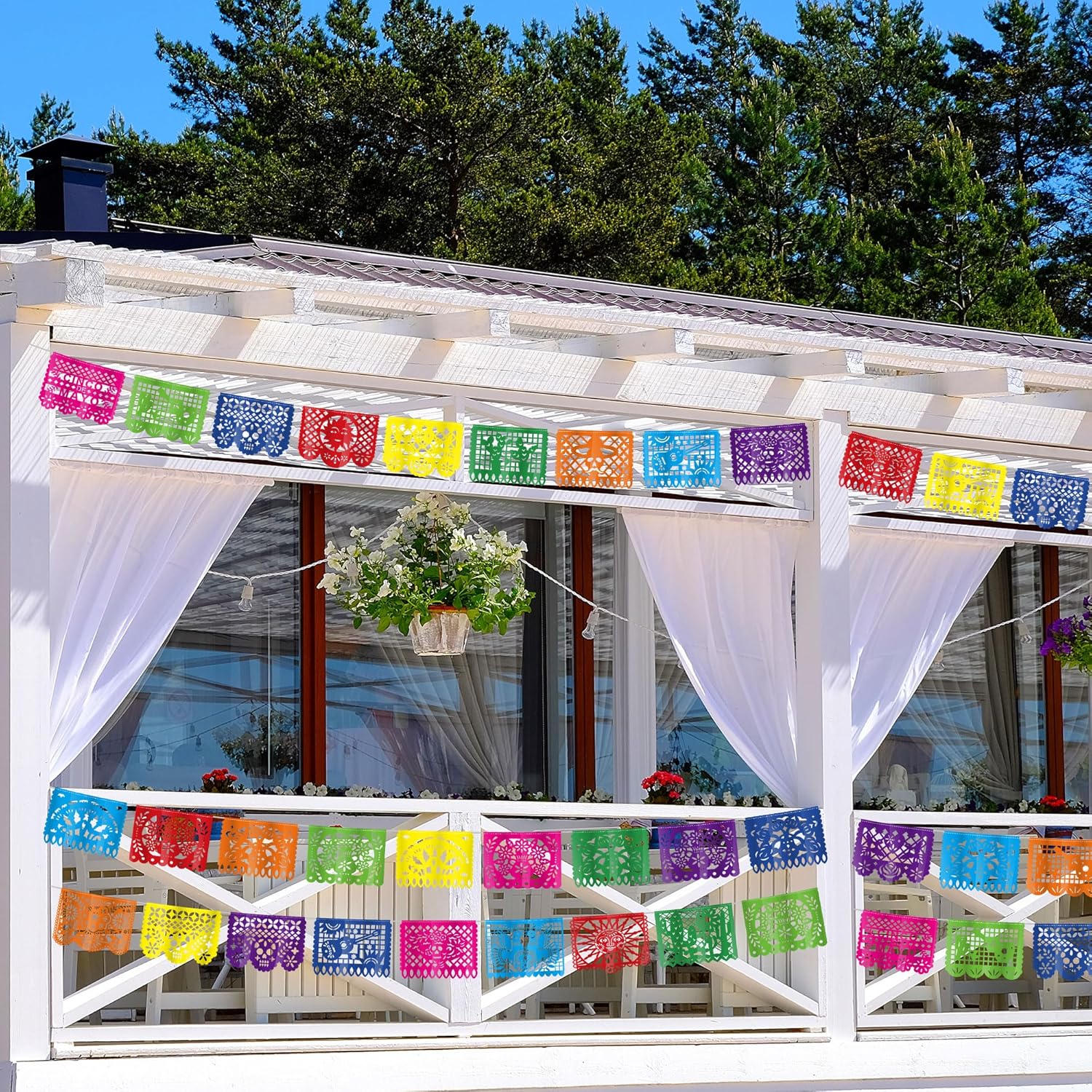 Il pacchetto include: riceverai 3 striscioni Cinco De Mayo, 4,7 m per striscione, 15 m di lunghezza in totale, con ogni confezione contenente 9 bandiere di plastica, ciascuna misura 41 x 30 cm. DESIGN UNICO - Il nostro striscione per feste messicane presenta colori vivaci e una varietà di motivi messicani tra cui cactus, chitarra, sole, fiori e altro ancora. Design fronte-retro che consente una visione perfetta da qualsiasi angolazione. Facile da appendere: ogni set di striscioni picado in plastica viene fornito preassemblato in modo da poterli appendere facilmente dove preferisci. Sono le decorazioni perfette per la festa del Cinco De Mayo per migliorare l'atmosfera festosa. Materiale superiore: queste decorazioni per feste messicane sono realizzate in plastica di alta qualità, offrendo resistenza e proprietà impermeabili che le rendono perfette per decorazioni per feste messicane interne ed esterne. Ampio utilizzo: queste decorazioni per feste Fiesta sono adatte per una festa a tema messicano, celebrazione del Cinco de Mayo, Fiesta, Dia De Los Muertos, evento a tema Giorno dei Morti e altro ancora. Sono la decorazione messicana perfetta per la tua casa, ufficio, cortile, recinzione, veranda, soffitto, pareti, ecc.