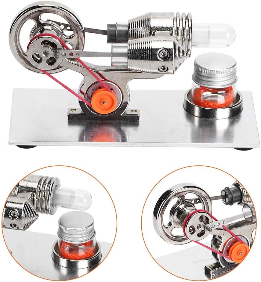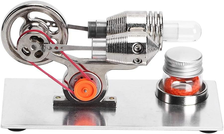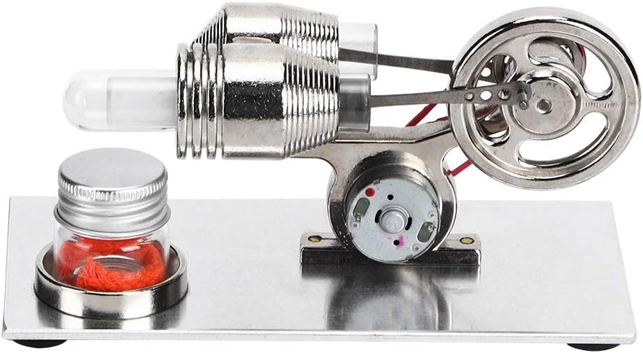[APPLICAZIONE E SPECIFICHE] - per insegnamento, esperimenti di laboratorio e appassionati di fisica. Materiale: metallo, vetro. Colore argento. [ASPETTO SQUISITO] - Con il suo colore argento brillante e la superficie complessivamente lucida, questo motore Stirling ha un alto valore di raccolta ed è di alta qualità. [EDUCAZIONE PRATICA DELLA FISICA] - Sperimenta l'affascinante funzionalità del motore Stirling e approfondisci la tua comprensione dei principi termodinamici. [SICURO E FACILE DA USARE] - Basta spruzzare alcol nella lampada ad alcool, riscaldare il tubo della lampadina e girare la ruota per generare elettricità e accendere la lampada. [MATERIALI DI ALTA QUALITÀ] - Realizzati in lega di zinco, lega di alluminio e vetro al quarzo caldo per una maggiore durata e un esterno lucido e resistente alla ruggine.