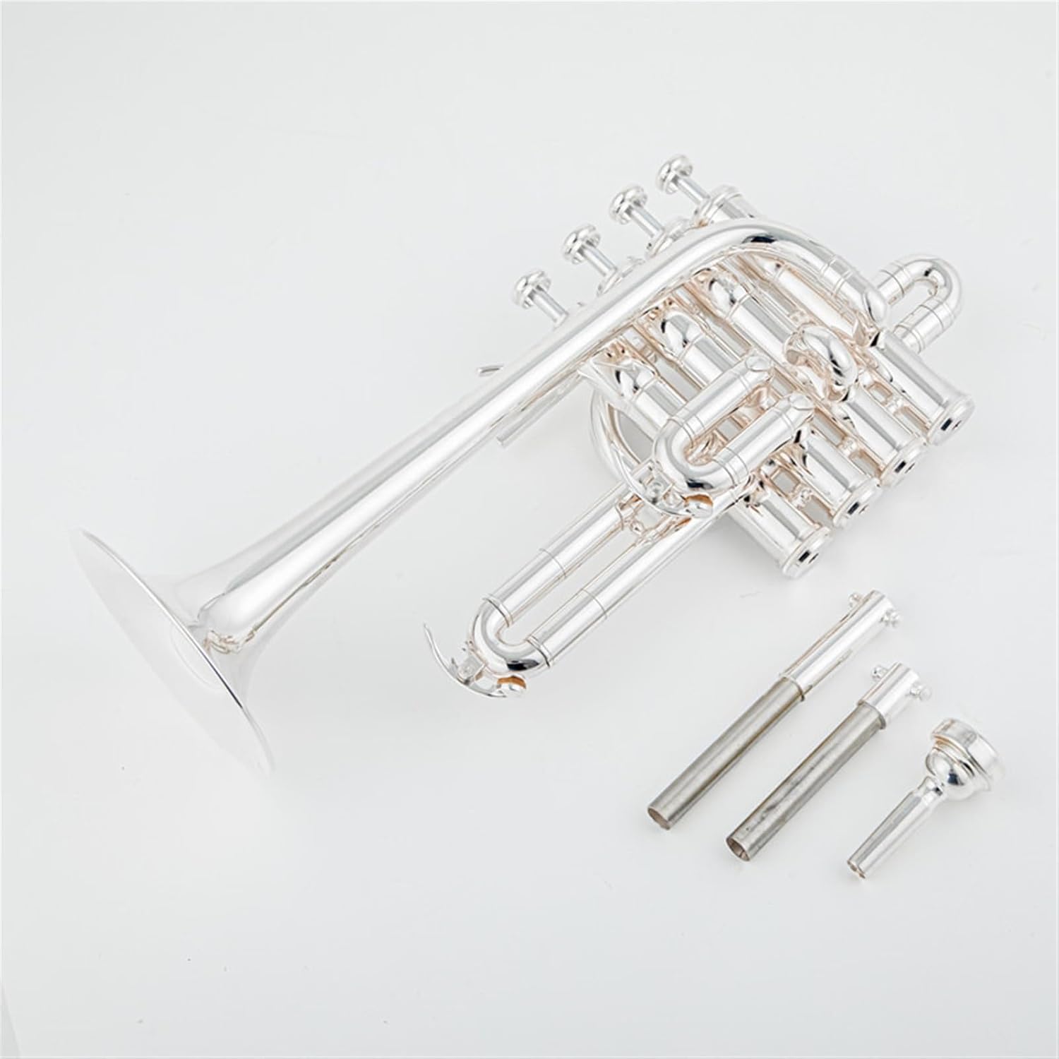 Strumenti in Ottone per Studenti Tromba Professionale Tromba in Sib Tromba in Ottone con Superficie Laccata Argento Oro (Color : Silver)