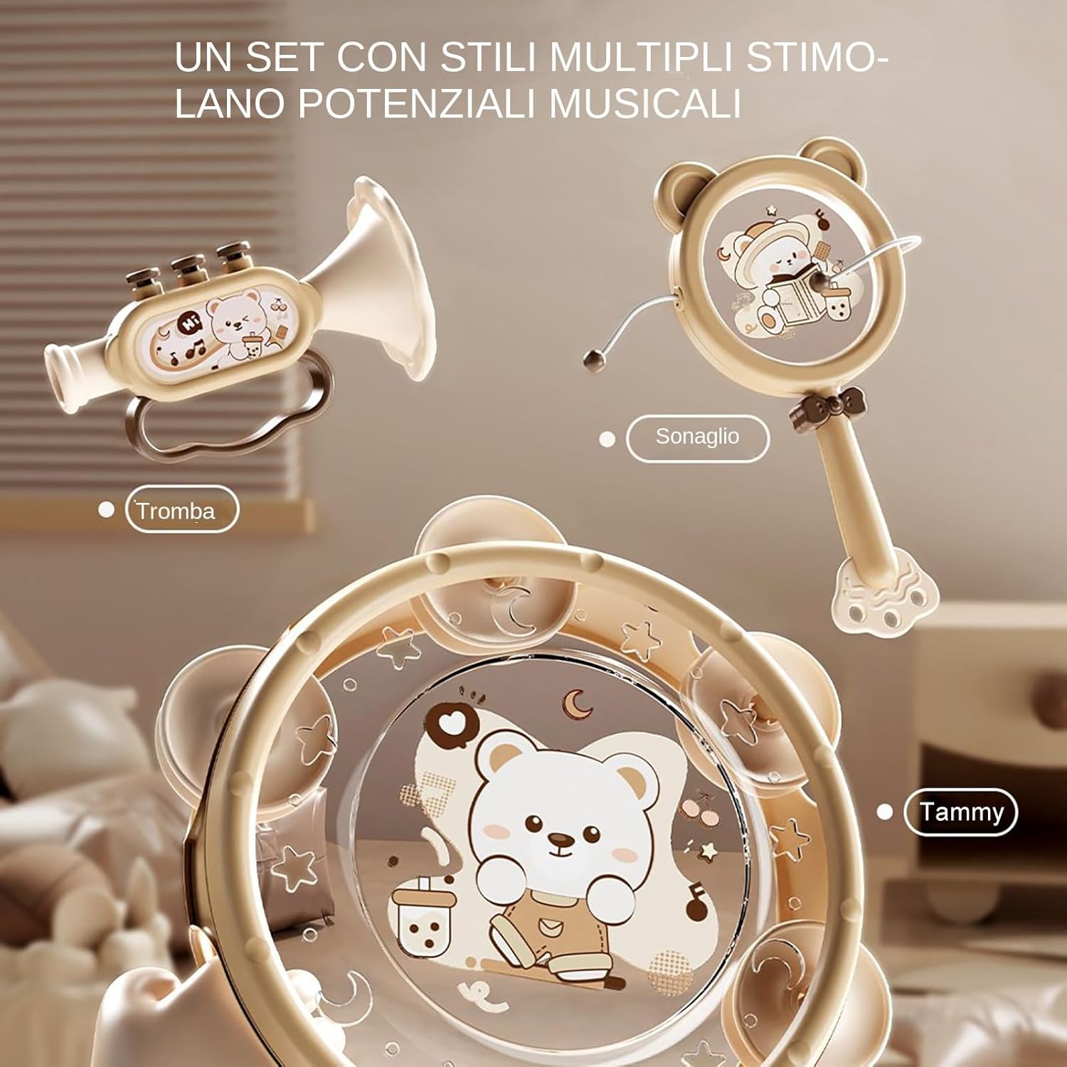 Strumento Ritmico: Stimola l'interazione con l'esplorazione ritmica durante attività musicali che migliorano l'apprendimento condiviso e rafforzano naturalmente i legami affettivi in famiglia Materiale durevole: Strumenti musicali per la prima infanzia costruiti in ABS pregiato, assicurano longevità d'uso grazie alla progettazione arrotondata che priorizza la sicurezza infantile Portabilità Efficiente: Progettata con di riordino integrato, consente organizzazione senza e trasporto agevole pronto per ogni spostamento, rendendo la musica sempre disponibile e sicura Utilizzo Versatile: Con 10 strumenti unici, questo set favorisce lo sviluppo delle abilità uditivo-ritmiche nei bambini. Aiuta l'avvicinamento alla musica ed è per attività di gioco sensoriale e sonoro nella prima infanzia. Fondamenti Apprendimento: Il set di strumenti aiuta lo sviluppo cerebrale precoce e la crescita sensoriale unendo stimoli uditivi, tattili e visivi per migliorare la coordinazione e costruire di apprendimento solide con facilità
