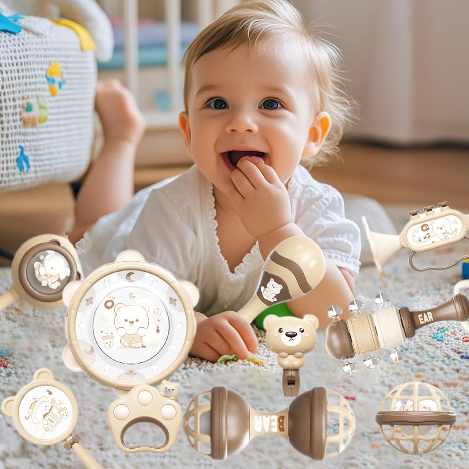 Strumento Ritmico: Stimola l'interazione con l'esplorazione ritmica durante attività musicali che migliorano l'apprendimento condiviso e rafforzano naturalmente i legami affettivi in famiglia Materiale sicuro: Design con bordi arrotondati e ABS durevole, garantisce protezione anti-e una struttura resistente al gioco frequente dei bambini piccoli Soluzione Compatta: Con design pronto per il viaggio che garantisce accesso immediato alla musica, il set offre organizzazione intuitiva e portabilità ottimizzata per massimizzare lo spazio durante le attività all'aperto dei bambini Utilizzo Versatile: Con 10 strumenti unici, questo set favorisce lo sviluppo delle abilità uditivo-ritmiche nei bambini. Aiuta l'avvicinamento alla musica ed è per attività di gioco sensoriale e sonoro nella prima infanzia. Fondamenti Apprendimento: Il set di strumenti aiuta lo sviluppo cerebrale precoce e la crescita sensoriale unendo stimoli uditivi, tattili e visivi per migliorare la coordinazione e costruire di apprendimento solide con facilità