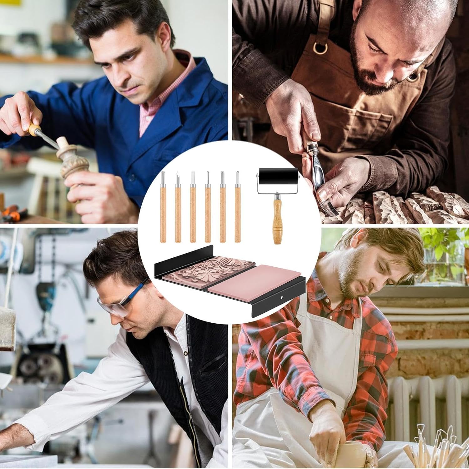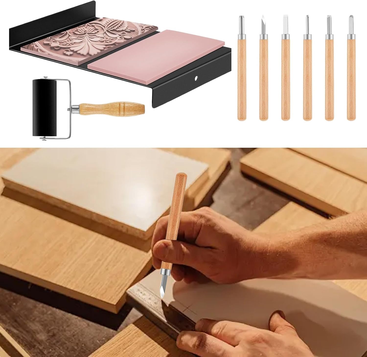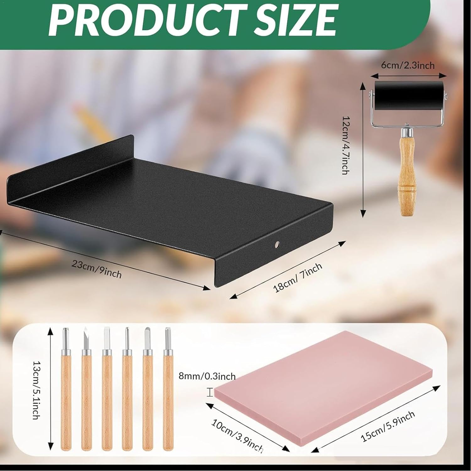 Robusti e durevoli: questi strumenti per la stampa su legno, utilizzando il metallo come materiale principale, garantiscono durata e prestazioni a lungo termine, rendendoli ideali per progetti complessi. Incisione ergonomica: realizzati con materiali affidabili, gli strumenti per la stampa su legno sono dotati di maniglie ergonomiche che garantiscono una presa comoda. Incidi con maggiore flessibilità per una maggiore precisione e stampe straordinarie. Molteplici funzioni: con il nostro kit per la stampa su legno e i suoi versatili strumenti di incisione, otterrai la precisione necessaria per eseguire con precisione le tue creazioni, non importa quanto complesse. Goditi una maggiore espressione e maggiori possibilità artistiche. Utile e funzionale: gli strumenti per intagliare il legno con foro per vite (viti non incluse) garantiscono un'applicazione precisa, uniforme e regolare dell'inchiostro fissando le posizioni del linoleum o dell'accensione. Ottieni ogni volta un'inchiostrazione precisa utilizzando un rullo inchiostratore incluso nel set. Utilizzo senza sforzo: migliora la tua stampa su xilografia con strumenti versatili, progettati per soddisfare le esigenze di artisti, principianti e professionisti. Il design compatto di questi strumenti da intaglio consente un facile trasporto e stoccaggio fornendo allo stesso tempo un'eccellente precisione