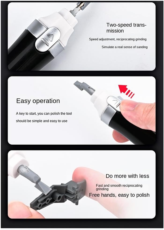 Le teste di levigatura intercambiabili, comprese le specifiche , consentono di affrontare con facilità una varietà di materiali e parti, garantendo ogni volta un effetto di levigatura perfetto. 100% e di alta qualità, Realizzato con materiali di alta qualità, durevoli, 2 velocità di regolazione, lucidatura regolabile rapida/lenta, simulazione della lucidatura reale. Efficiente e risparmiare tempo: il suo movimento alternativo ad alta frequenza garantisce una levigatura rapida e uniforme, aumentando significativamente la produttività. che tu stia lavorando su superfici piane, angoli stretti o curve complesse, questo garantisce risultati rapidi ed efficienti, rendendo il tuo più semplice e veloce.