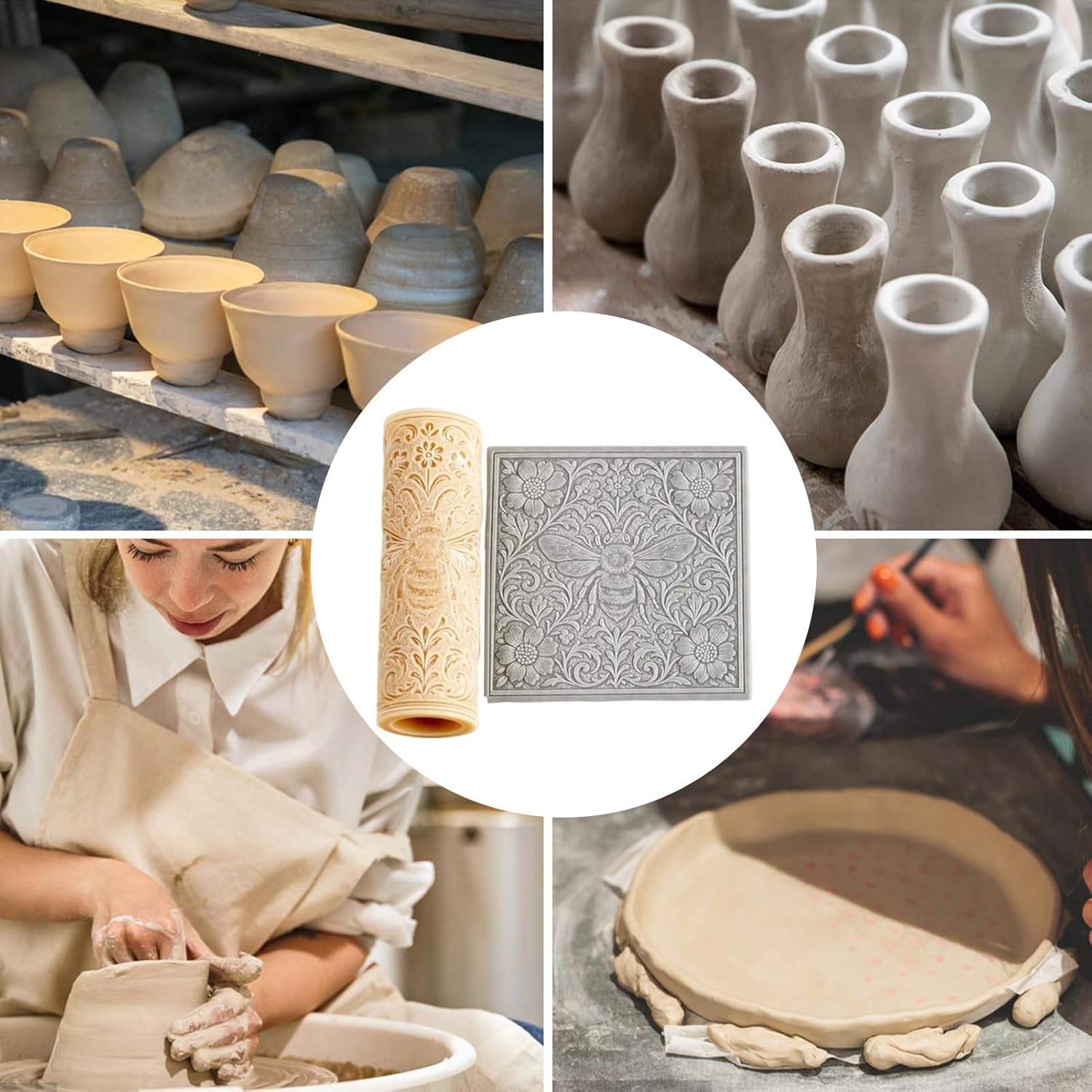 Dettagli artigianali naturali: crea artigianato artistico utilizzando rulli che emanano fascino naturale, con motivi finemente intagliati influenzati da un'estetica tradizionale senza tempo per imprinting creativo della texture Strumento robusto e senza aderenza: realizzato con materiali sostenibili che resistono all'usura, questo rullo in argilla indeformabile previene problemi di adesione e consente agli utenti di pulirlo facilmente con il minimo sforzo durante i progetti di ceramica Esperienza di rotolamento perfetta: l'innovativa tecnologia di giunzione garantisce un rotolamento ininterrotto, per motivi di goffratura coesivi e risultati perfetti con il nostro rullo con texture in argilla Prestazioni stabili con facilità: il design ergonomico garantisce una vestibilità comoda in mano, consentendo ai principianti di fare bene nel suo utilizzo, fornendo al contempo un controllo preciso su pressione e direzione, garantendo prestazioni stabili durante i progetti creativi Regalo creativo: adatto per presentare a familiari, amici o partner in giorni memorabili come compleanni, Natale e anno, migliorando i legami con espressione artistica