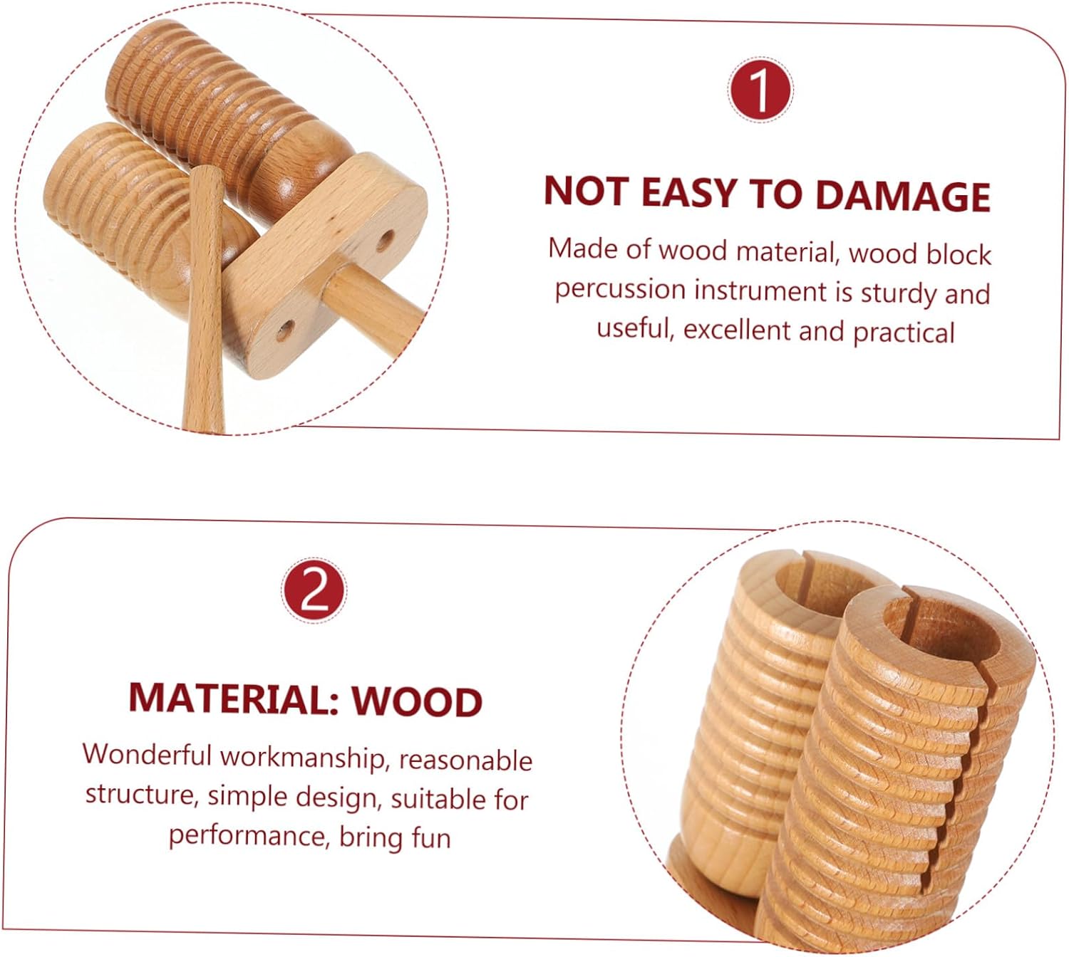 Strumenti musicali Montessori - strumento a percussione con blocco di legno facile da usare, facile da imparare, aiuta ad aumentare l'interesse per la musica, strumento musicale a percussione con blocco di legno - pregevole fattura, design semplice, struttura ragionevole, adatto per l'uso in spettacoli, porta facilmente gioia, blocchi di legno Blocco di legno del tempio - realizzato in materiale di legno, strumento a percussione con blocco di legno è robusto e utile, eccellente e pratico, strumento musicale per bambini piccoli Strumenti a percussione con blocco di legno - Gli strumenti musicali con blocco di legno sono facili da imparare, facili da suonare, aumentano l'interesse per la musica e sono uno strumento musicale per - Realizzato in legno, il blocco ritmico in legno è uno strumento per bambini utile ed eccellente, pratico e robusto
