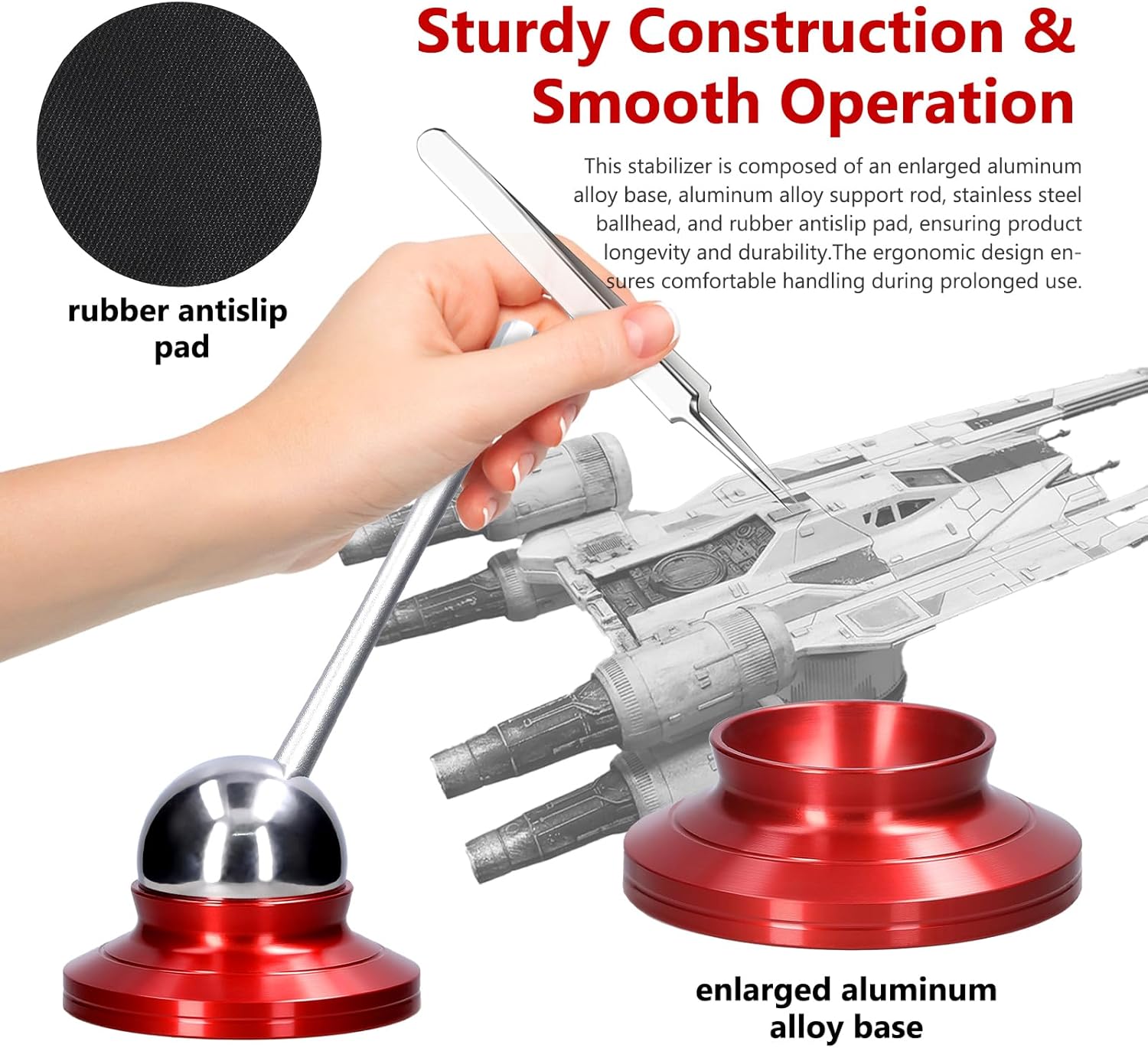 [Efficienza avanzata]: ridurre significativamente le strette di mano per l'assemblaggio dei modelli precisi e i dettagli di attività, aumentando la produttività. [Movimento regolabile e flessibile a 360 °]: manovrabilità senza pari con rotazione orizzontale a 360 gradi, miglioramento della flessibilità di movimentazione del modello. [STURDY COSTRUZIONE E FUNZIONAMENTO SIGNIFICATO]: base in lega di alluminio resistente, design ergonomico per un uso comodo durante le sessioni lunghe. [Smorzamento personalizzabile]: aumento dello smorzamento per rotazione e stabilità liscia, posizione di supporto regolabile per la versatilità. [Riduzione dello stress e supporto dell'attività ad alto difficoltà]: ridurre al minimo gli effetti delle strette di mano, ideali per compiti complessi di assemblaggio e di pittura.