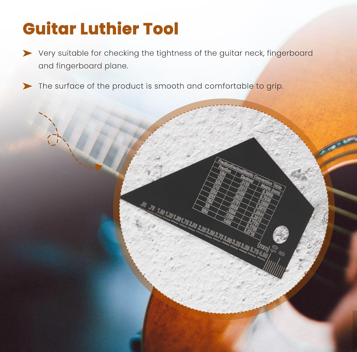 Realizzato in materiale in acciaio inossidabile, antiruggine e resistente, bello e pratico. 100% di zecca e di alta qualità Molto adatto per controllare la tenuta del manico della chitarra, della tastiera e del piano della tastiera. Sebbene di piccole dimensioni, ma compatto e leggero, facile da trasportare e da usare. La superficie del prodotto è lucida, con presa comoda, non graffia la mano.