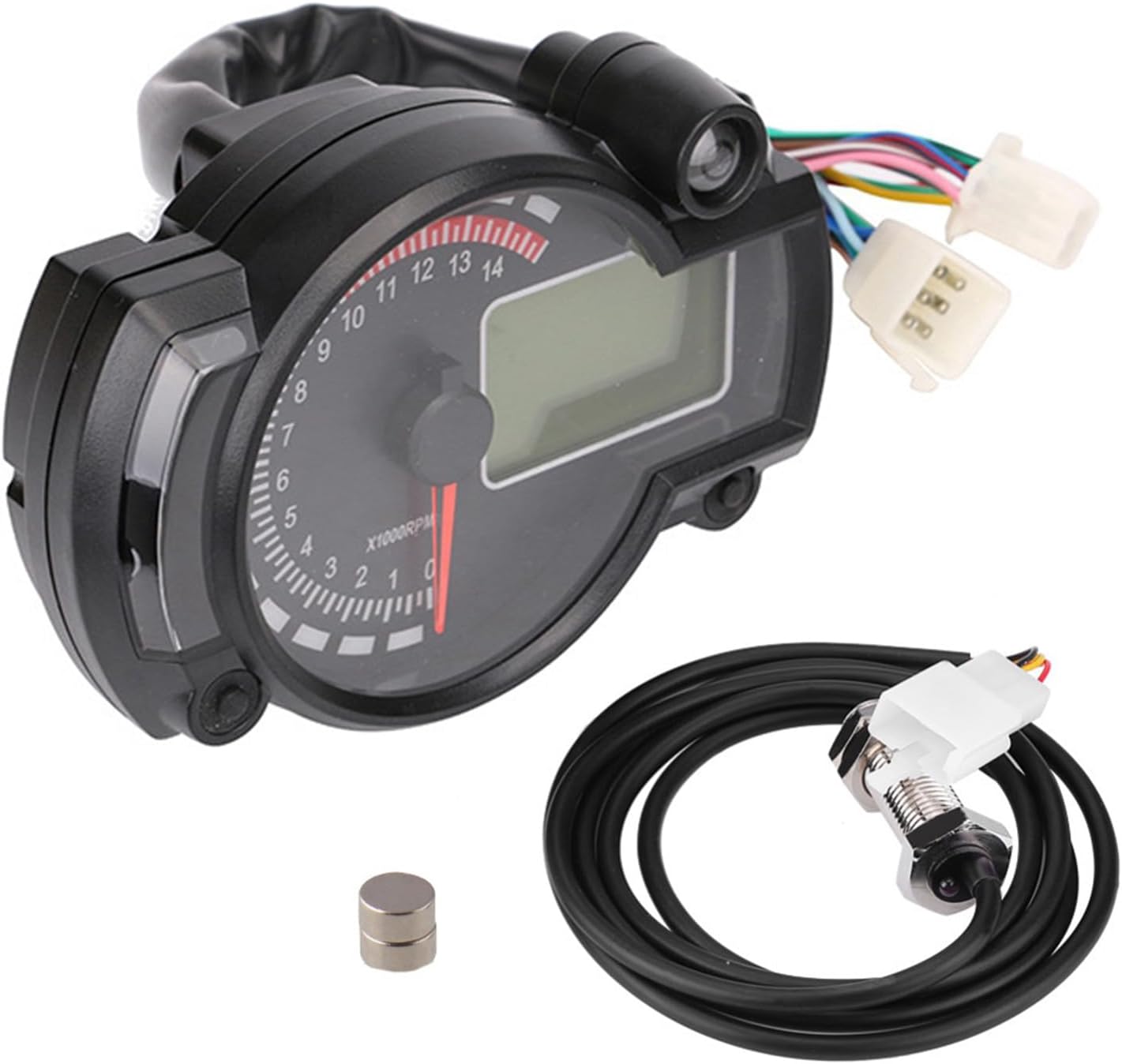 Progettato con capacità impermeabilità superiori, questo pannello strumenti per resiste a tutte le condizioni atmosferiche, rendendolo adatto per le corse sotto la pioggia senza timore danni Display cristalli liquidi: velocità, contachilometri, viaggio, strumento, posizione ingranaggio livelli olio e orologio in reale. Premere pulsante per controllare la conversione tra contachilometri e contachilometri Realizzato in ABS e materiali in metallo, questo accessorio per promette longevità e resilienze, mescolando perfettamente con l'estetica della tua bici offrendo impostazioni display personalizzabili Sperimenta nitidezza senza precedenti con nostro indicatore LCD per dotato un display risoluzione che garantisce facile leggibilità della velocità e del chilometraggio in qualsiasi condizione illuminazione Perfetto per appassionati i pendolari giornalieri, i viaggiatori a lunga e i piloti che richiedono un monitoraggio preciso della velocità e del chilometraggio per prestazioni e sicurezza migliorate