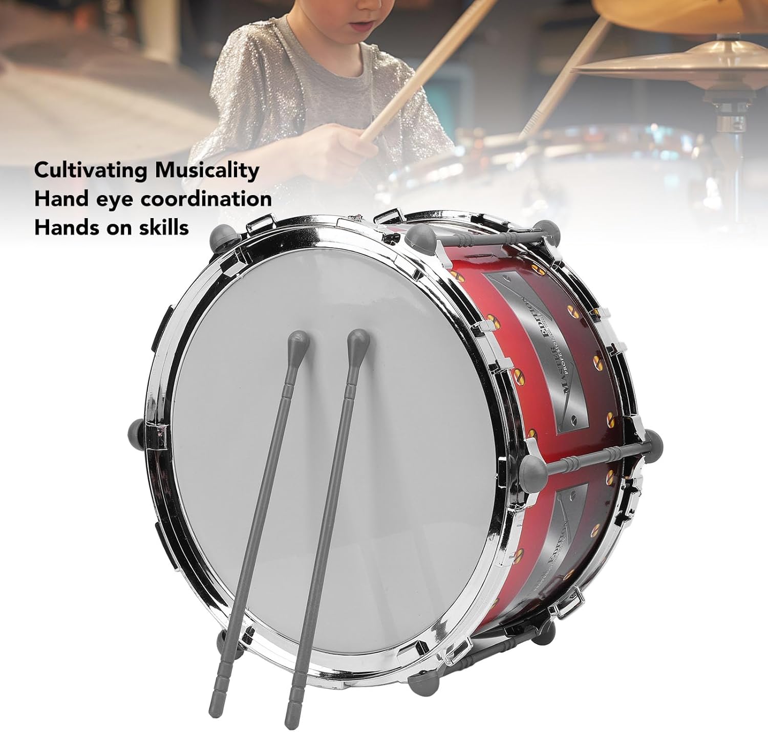 Educational Drum Toy: appositamente progettato per i bambini, questo giocattolo stimola il potenziale musicale dei bambini. Attira l'attenzione dei bambini e li incoraggia a impegnarsi in attività musicali con le mani. Funzione: questo modello di batteria jazz consente ai bambini di sperimentare il fascino della musica e sviluppare un senso di ritmo, portandoli nel colorato mondo della musica. Facilità d'uso: questo drum kit è progettato per un facile funzionamento, per i bambini. Con controlli intuitivi e un layout amichevole, i bambini possono giocare e imparare al proprio ritmo. Materiale: realizzato in materiale premium, questo educativo Earch - Learning Jazz Drum Toy è sicuro e affidabile per i bambini. Il materiale ben scelto offre un'esperienza musicale più realistica. Caratteristica: questo giocattolo jazz per bambini combina educazione con l'intrattenimento, portando piacere e divertimento ai bambini e rendere l'apprendimento di un'esperienza piacevole.