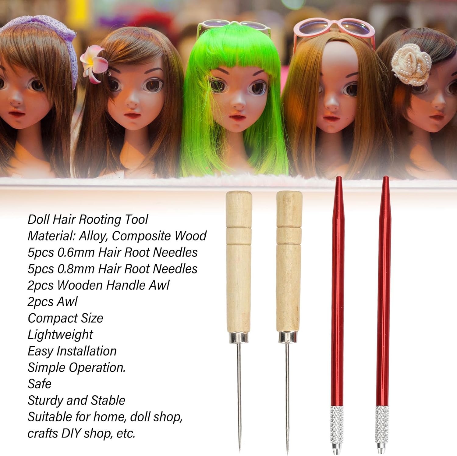 MATERIALI IN LEGA: questo strumento è realizzato con materiali in lega di buona qualità, sicuri ed ecologici. Offre durata e robustezza, senza parti facilmente deformabili, garantendo prestazioni stabili. FACILE INSTALLAZIONE: questo strumento è progettato specificamente per il rooting dei capelli delle bambole e lavori simili. Consente una facile installazione 'ago sul telaio di radicazione, garantendo un funzionamento semplice e senza problemi. LEGGERO E COMPATTO: il suo design è comodo riporre e trasportare. Si inserisce facilmente in una cassetta degli attrezzi, rendendolo adatto per l'uso domestico, negozi di bambole e negozi di bricolage. AMPIA APPLICAZIONE: questo strumento è versatile e può essere utilizzato in varie impostazioni. È molto adatto per l'uso domestico, negozi di bambole e negozi di bricolage, ecc. FORNITURE FAI TE: Oltre al rooting dei capelli delle bambole, questo strumento può essere utilizzato anche per vari altri progetti artigianali che richiedono un posizionamento preciso dei capelli. Fornisce versatilità agli artigiani e agli hobbisti per esplorare la loro creatività.