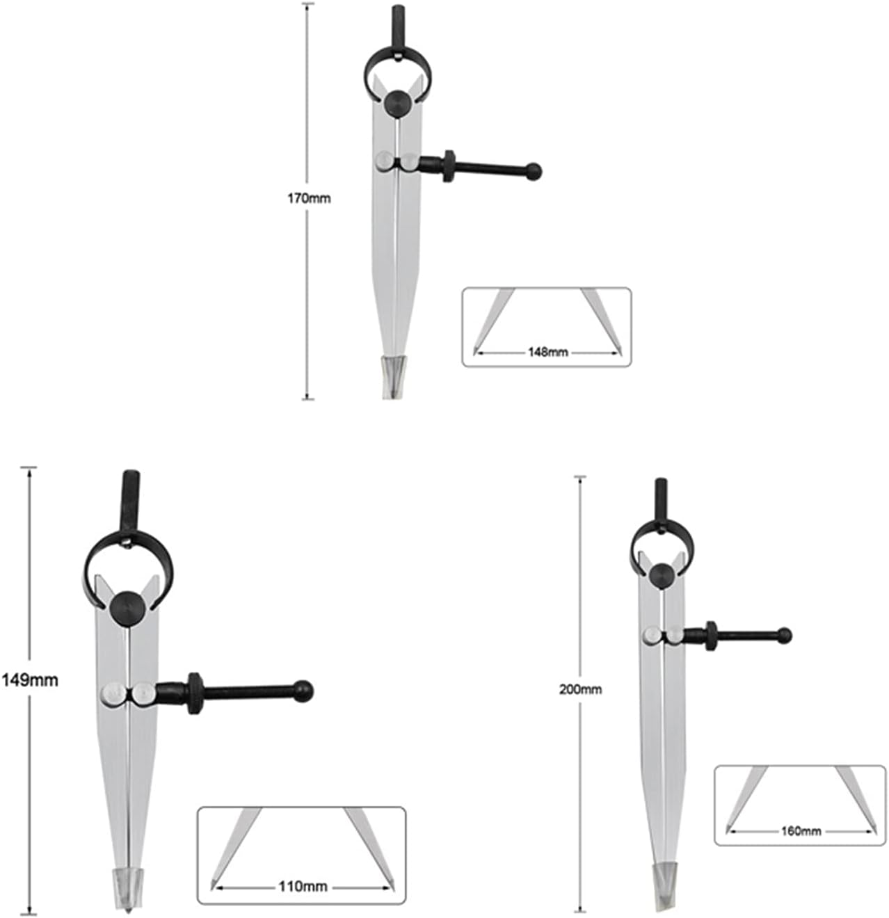 Strumenti pratici: perfetti per studenti, insegnanti, esperti di matematica, architetti, ingegneri, artisti, designer di qualsiasi livello. Può essere utilizzato a scuola, in ufficio, a casa o al lavoro. Puoi bloccare la bussola in posizione e tenerla effettivamente mentre scrivi. Realizzato in acciaio al carbonio di alta qualità, lavorazione squisita, pratico e facile da usare. La spaziatura è assicurata da dadi rapidi, semplici e facili da usare. Oltre a disegnare cerchi, puoi anche disegnare linee rette, archi, ecc. (se l'estremità è troppo affilata, puoi usare la carta vetrata per smussarla)