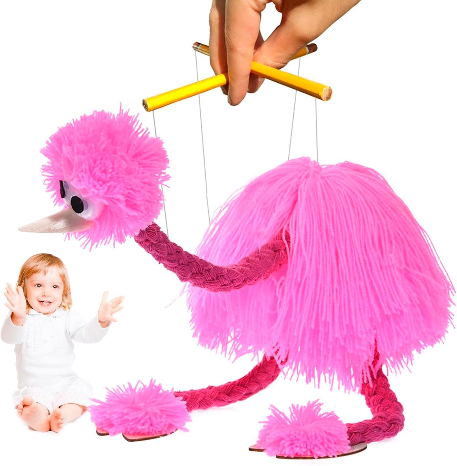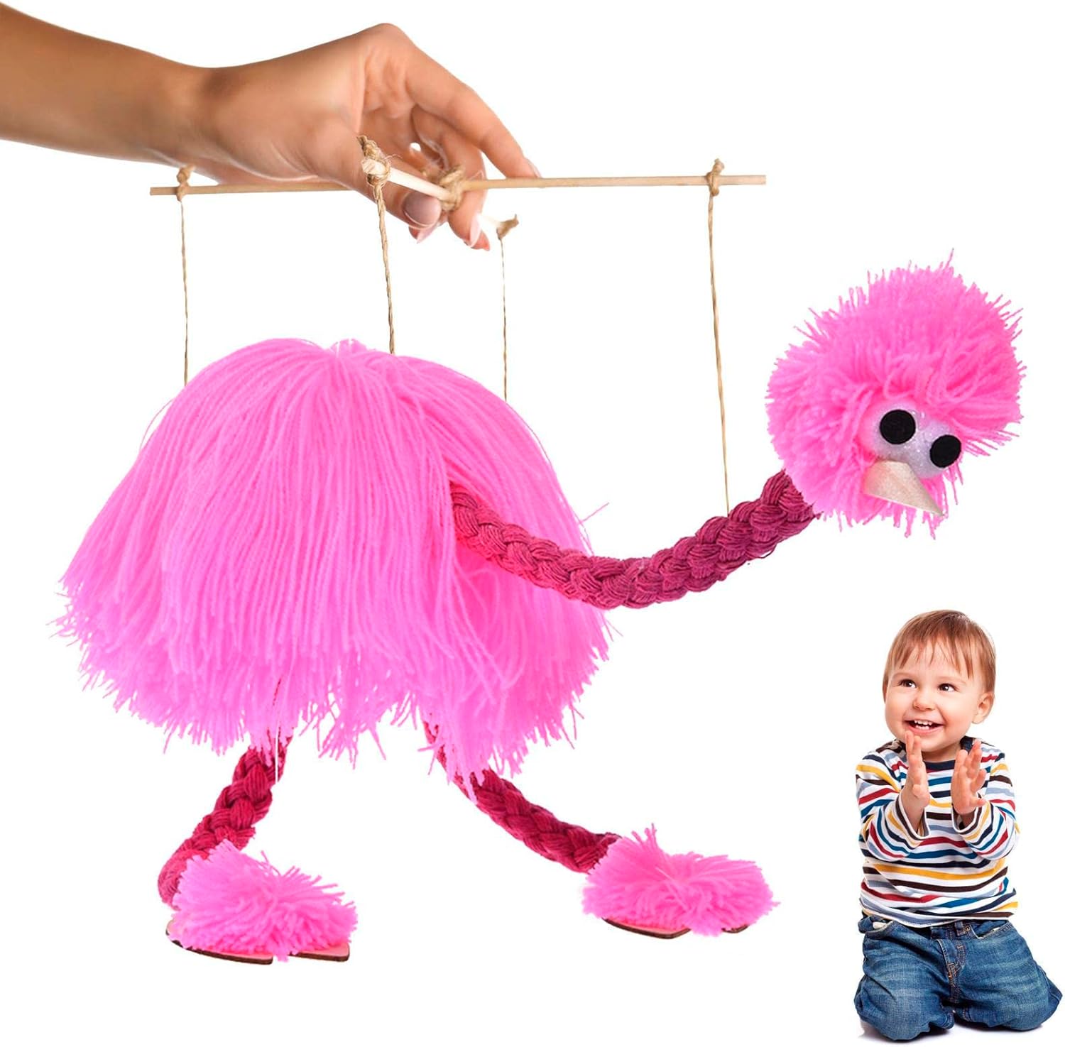 Struzzo carino: il suo aspetto realistico e il design che attira l'attenzione offrono un modo divertente e coinvolgente per presentarli al burattino stimolando la loro creatività e curiosità. Stimolare l'immaginazione: il nostro burattino di struzzo è un modo divertente per aiutarli a coltivare abilità espressive, esercitare coordinazione occhio-mano e stimolare lo sviluppo visivo. Corda staccabile: goditi il tempo di gioco versatile con questo pupazzo di struzzo. La sua corda staccabile e il suo corpo con corde morbide lo rendono facile da controllare, mentre le gambe in legno resistenti offrono una sensazione realistica. Funzionamento facile: con caratteristiche molto facili da usare, il pupazzo di struzzo cammina quando si gira bastone e si annuisce quando cade. Un giocattolo giocoso e coinvolgente. Ampiamente applicabile: abbastanza versatile per la narrazione, l'insegnamento e persino le esibizioni sceniche, questo burattino garantisce più opportunità divertenti e di apprendimento per i tuoi.