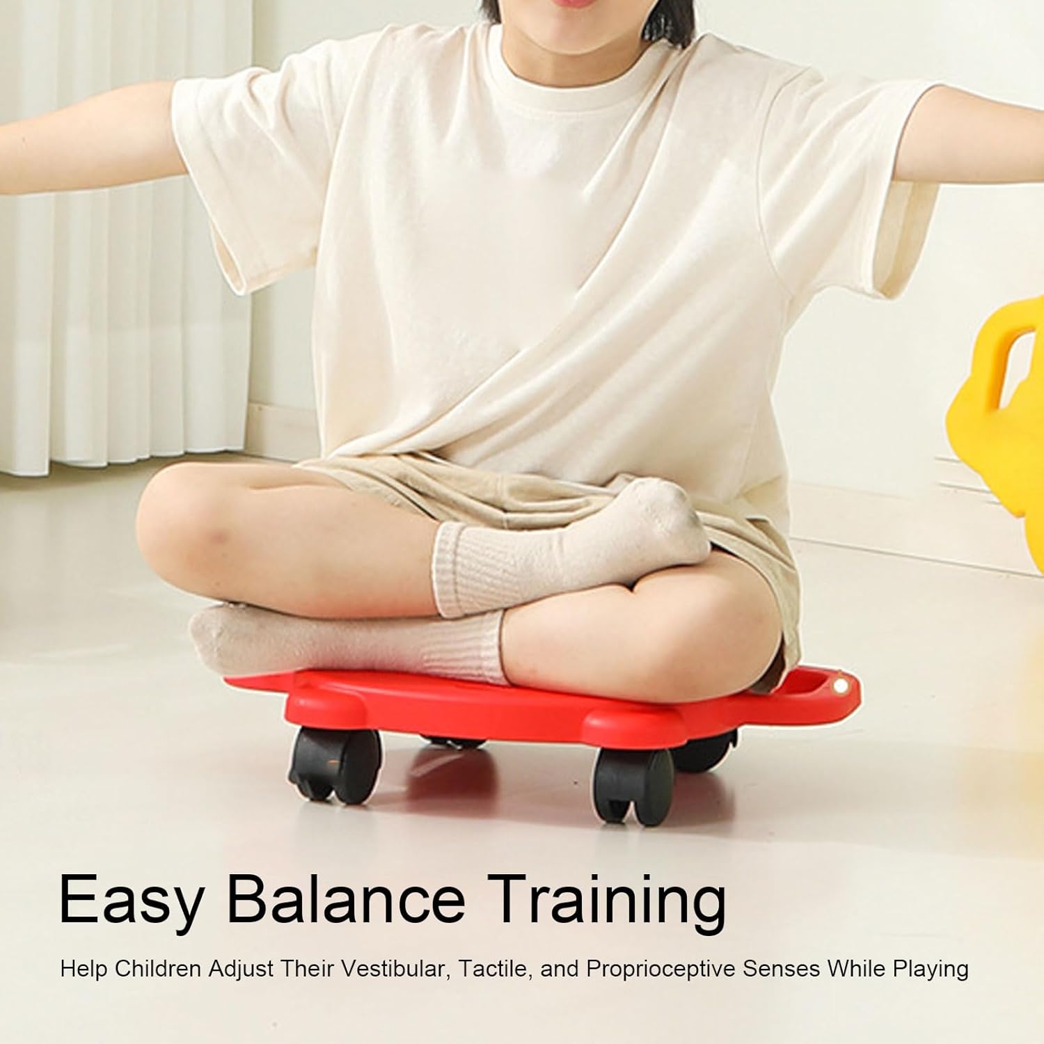 Soluzione di gioco per interni tranquilli- Le ruote speciali silenziose silenziose proteggano i pavimenti consentendo il gioco silenzioso in soggiorni, aule o sala giochi. Essenziale: ideale per lezioni di palestra prescolare, sessioni di terapia occupazionale o routine di esercizio interno. Design per la sicurezza: la robusta costruzione in plastica con manici ergonomici fornisce stabilità e sicurezza durante le attività fisiche. Scheda scooter rotante a 360 °- Dispone di ruote multidirezionali per movimenti di scorrimento lisci che sviluppano capacità di equilibrio e coordinamento nei bambini (costruzione in plastica, 15.7x12.4in). Divertimento interattivo: incoraggia il gioco attivo tra i bambini o il legame genitore-figlio attraverso attività di scooter condivise.
