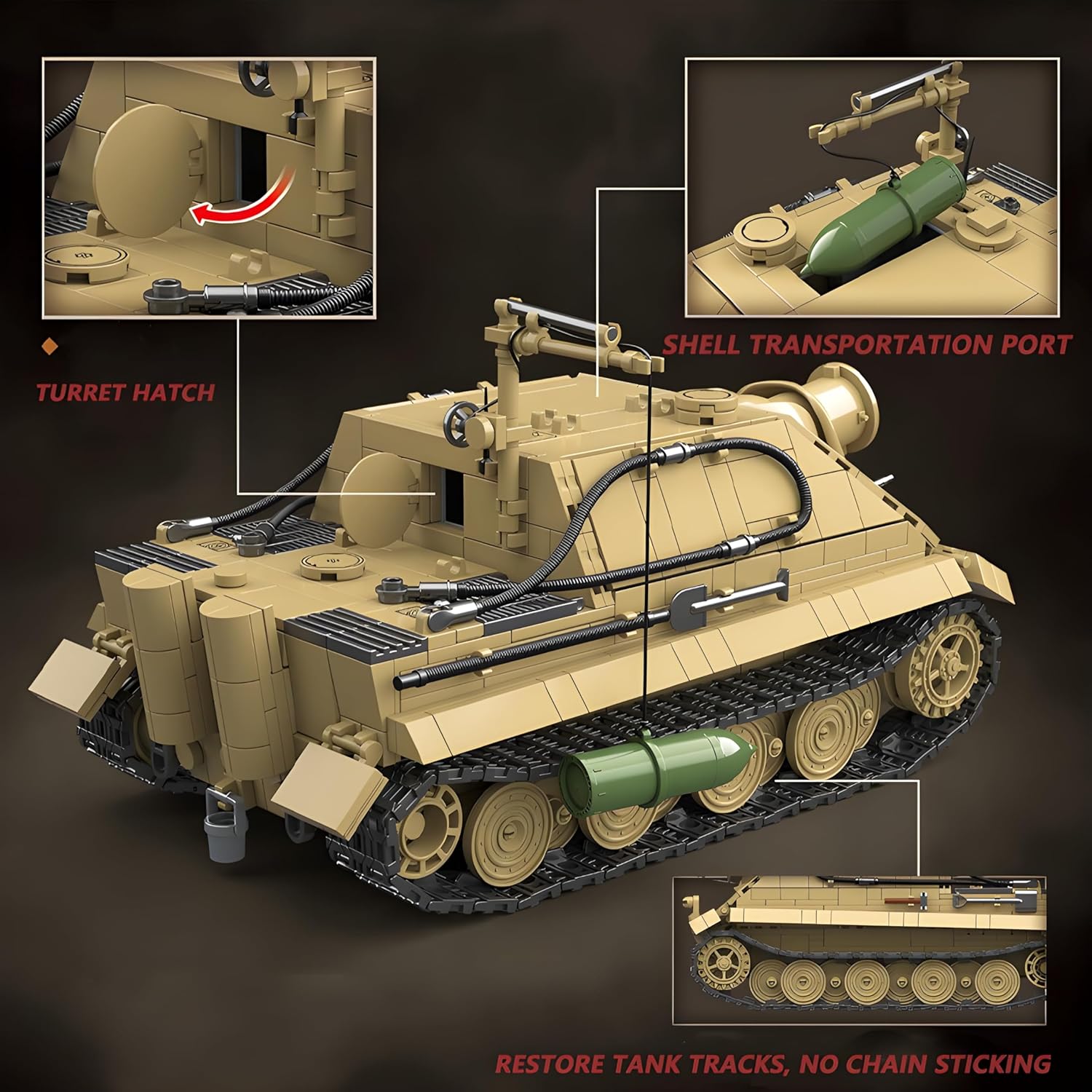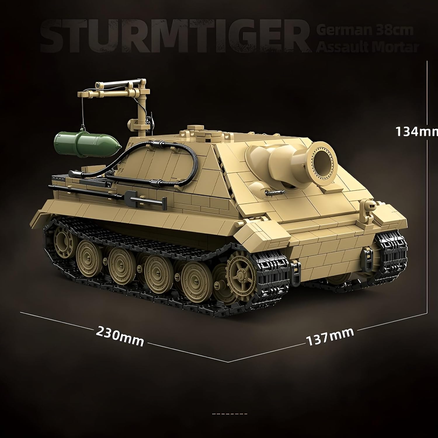 ALTAMENTE RIPRODUCIBILE: Basato sul mortaio d'assalto tedesco da 38 cm della Seconda Guerra Mondiale, 1394 parti ricreano fedelmente l'armatura pesante, l'enorme canna del fucile e i dettagli delle rotaie dello Sturmtiger, trasformando la leggendaria artiglieria in un modello da collezione, un must per gli appassionati militari. DETTAGLI RICCHI: questo set di carri armati tigre d'assalto include 6 personaggi e armi come fucili e granate per simulare il campo di battaglia o la narrazione interattiva. Una volta assemblato, il design dettagliato dalla cabina di pilotaggio al vano munizioni consente ai giocatori di comprendere in modo intuitivo la struttura interna del carro armato, il che è interessante e prezioso nella scienza militare. MATERIALI DI ALTA QUALITÀ: questo carro armato militare Tiger è realizzato in materiale ABS di alta qualità, con bordi lisci, connessioni solide e facile smontaggio, tenendo presente la sicurezza e la stabilità. Grazie alle sue caratteristiche di resistenza all'usura, il modello può essere utilizzato come display da tavolo ed è adatto anche per l'interazione genitore-figlio, offrendo un'esperienza sicura. REGALI CREATIVI: questo set di modelli di carri armati tigre è adatto ai bambini per allenare il pensiero pratico e spaziale, gli adulti possono ricordare la storia durante il montaggio, sia interessante che da collezione, è una scelta regalo perfetta. DIMENSIONI MODERATE: Il prodotto finito misura 23 × 13,7 × 13,4 cm, le dimensioni moderate non occupano spazio, possono essere utilizzate come libreria, vetrina, decorazione a tema militare, ma possono anche essere facilmente riposte nell'armadietto. A casa o in ufficio non è solo un omaggio alla cultura militare della Seconda Guerra Mondiale, ma anche una manifestazione del gusto individuale.