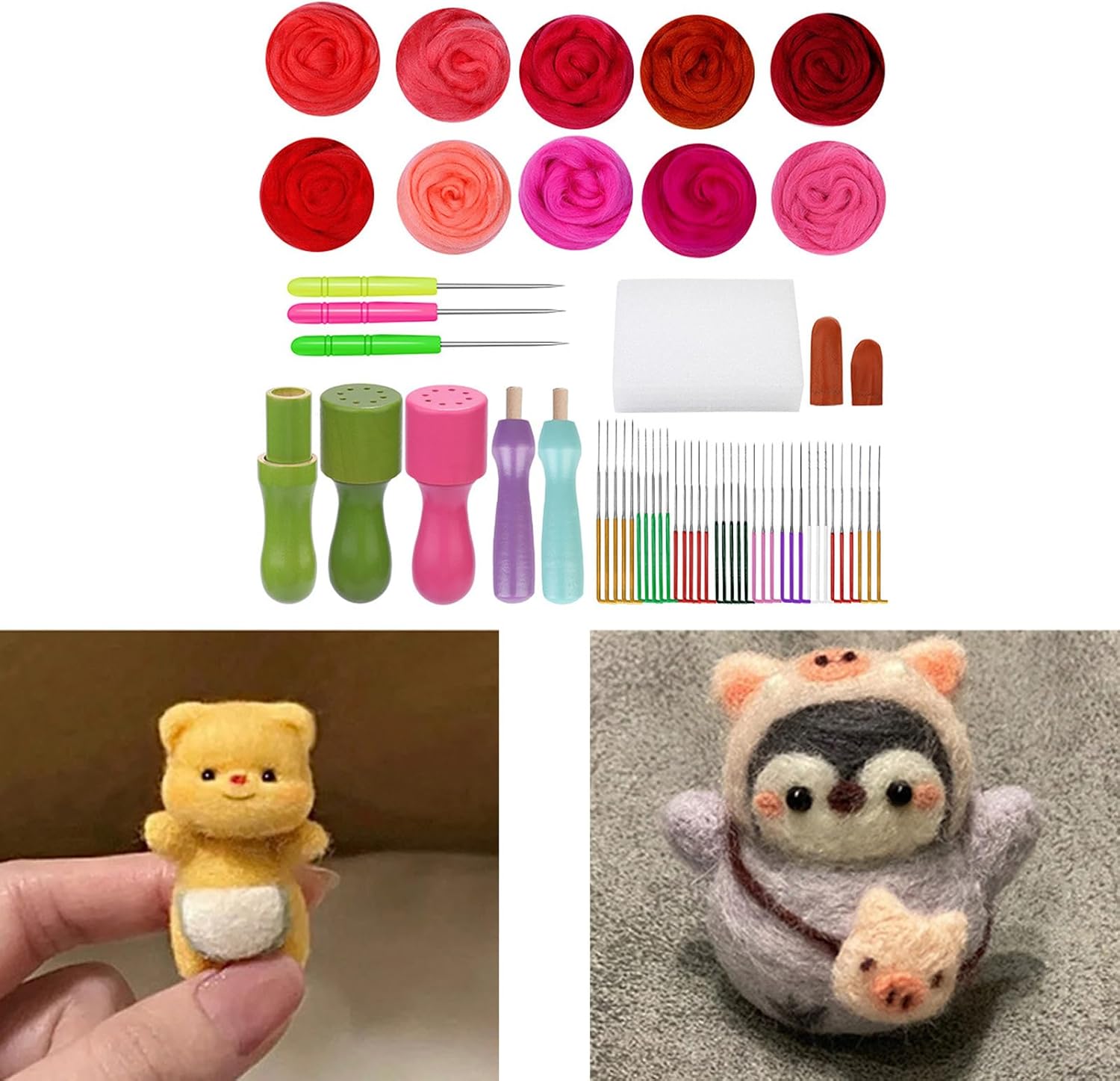 SueaLe Set per infeltrimento ad ago per principianti Set di feltro in lana animale con ago per infeltrimento Lana Roving Pad Finger Cots manico in legno