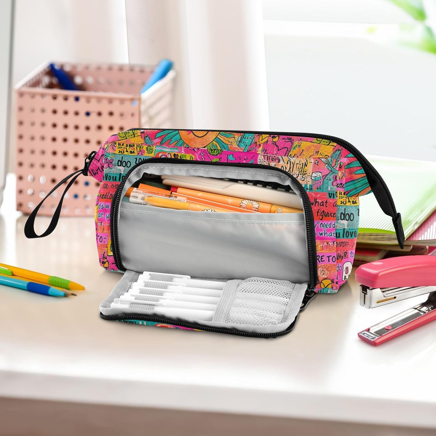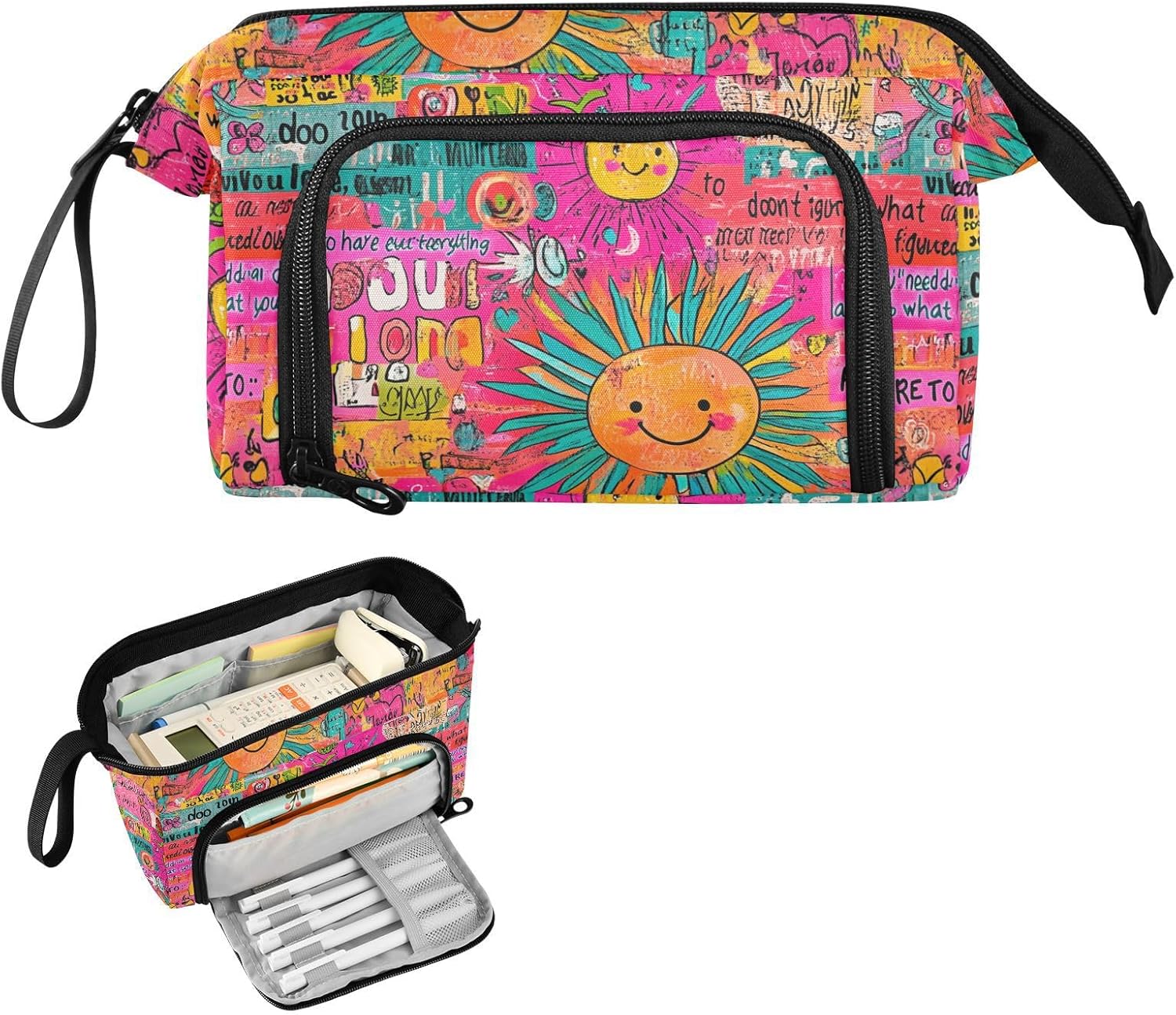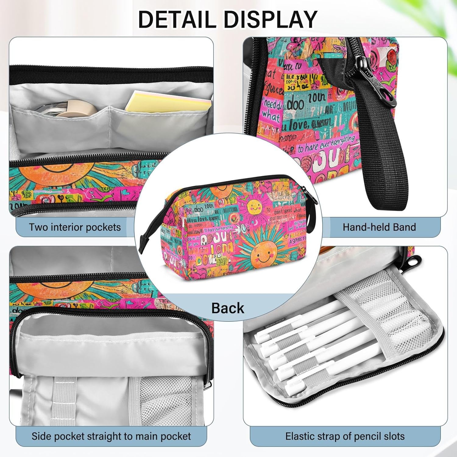 Materiale adeguato: questo robusto astuccio è realizzato in robusto tessuto di nylon, di lunga durata, pratico, resistente all'usura, resistente ai graffi, facile da lavare e pulire. Con cerniera in metallo liscio, può aprirsi e chiudersi facilmente. (Non adatto a bambini di età inferiore ai 3 anni!) Grande capacità: 24 x 9,5 x 15 cm. Dotato di 1 grande scomparto, 1 comoda tasca laterale e 2 tasche interne, Pencil Box è davvero un must have di dimensioni generose. La tasca principale può organizzare fino a 40-60 penne, matite o pennarelli, anche gomme, righelli, calcolatrici, nastri, foglietti adesivi, pennelli, cosmetici possono essere riposti facilmente. Con 5 matite schiaffeggiate sulla tasca laterale, le penne spesso utilizzate possono essere fissate. Due tasche interne possono contenere oggetti facilmente persi come carte, chiavi e contanti. Design portatile e conveniente: con il peso leggero, il corpo piccolo e la curva a mano, i nostri astucci sono facili da trasportare in borsa o tenere a portata di mano. L'apertura superiore e l'apertura laterale offrono scelte per voi per prendere o mettere le vostre necessità in esso. Puoi vedere chiaramente il tuo articolo dall'alto e trovare le tue penne, matite, pennarelli e pennelli usati di frequente dal lato. Uso multifunzionale: questo astuccio ha una grande capacità ma leggero da trasportare, adatto per studenti dell'asilo, elementare, scuola media, liceo, università per organizzare le loro forniture scolastiche. Inoltre, può anche essere applicato a vari scenari, come cosmetici, ufficio, viaggi, palestra, picnic, escursioni, campeggio, pittura e altre attività all'aperto. Struttura lavabile: l'intero astuccio è lavabile. Si consiglia il lavaggio a mano, non è consentito il lavaggio in lavatrice. Non utilizzare candeggina per la pulizia.
