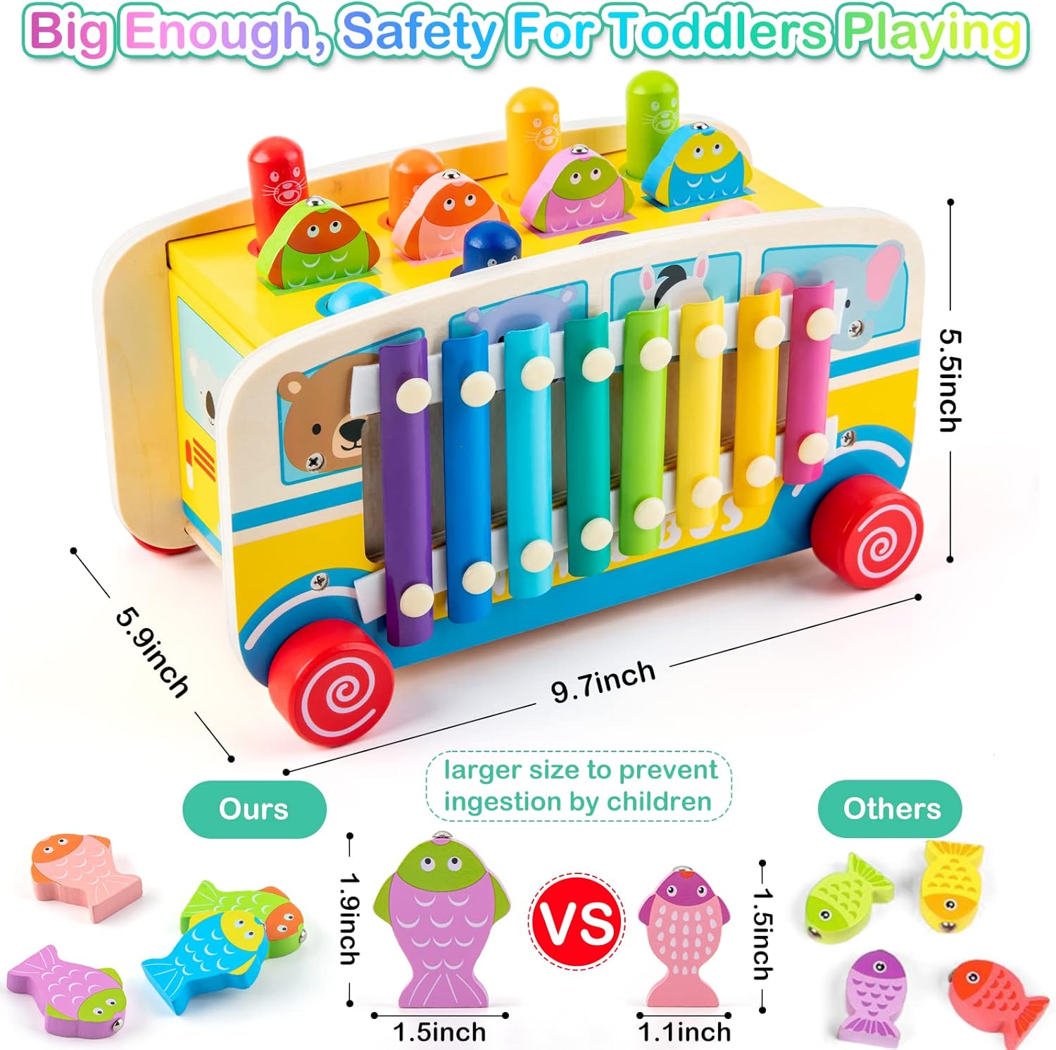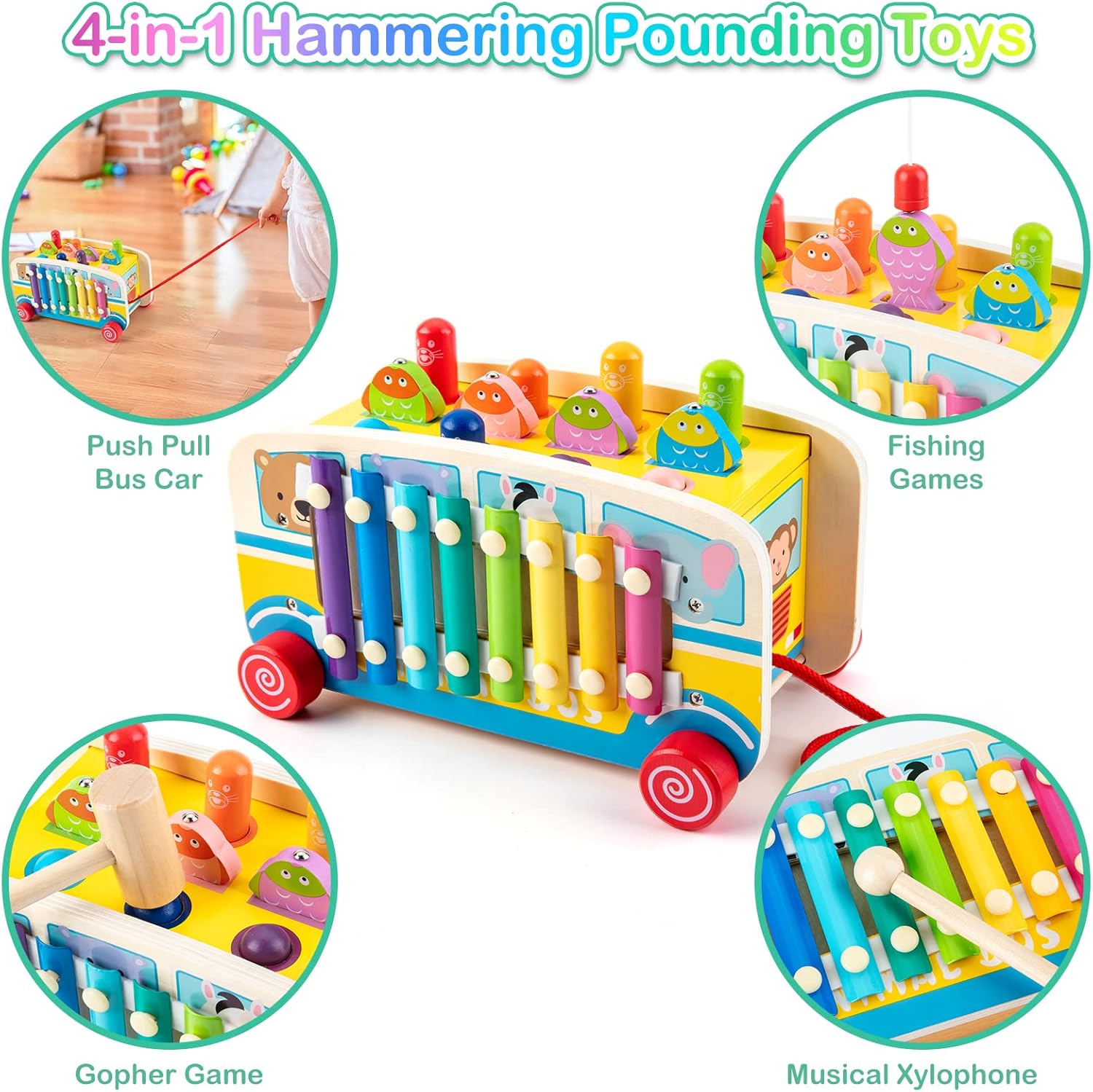 【Gioco in Legno 4 in 1】Questo giochi montessori 4 anni offre 4 opzioni di gioco: colpire la talpa, trainare il giocattolo-autobus, suona lo xilofono e vai a pescare. Forme interessanti catturano l'attenzione dei bambini, mentre colori vivaci e luminosi possono stimolare la loro percezione dei colori e contribuire allo sviluppo cognitivo. 【Sicuro e Resistente】Adatto per giochi educativi 3 4 5 6 anni. Il giochi legno bambini 2 anni è realizzato in legno naturale e colori a base d'acqua, garantendo sicurezza e resistenza. Inoltre, è stato lucidato a strati con bordi arrotondati e una struttura stabile che permette ai bambini di afferrare e giocare con facilità. 【Interazione Genitori-Figli】I giochi montessori 2 anni sono ideali per genitori e figli per trascorrere insieme il tempo libero e condividere momenti di crescita. Incentiva l'interazione tra genitori e figli, permettendo a voi e ai vostri bambini di godere di felici momenti familiari. Questo è il giocattolo d'attività perfetto per i bambini in età prescolare e rappresenta anche un'ottima scelta come giochi educativi 3 4 5 6 anni. 🎁【Idee Regalo】Il gioco del colpire le talpe può aiutare nello sviluppo della coordinazione occhio-mano, mentre la pesca contribuisce a promuovere le abilità motorie fini. Suonare un xilofono di legno incoraggia l'esplorazione di concetti musicali semplici. Il montessori 2 anni è il regalo ideale per i bambini in età prescolare da 3 a 7 anni ed è adatto per tutte le occasioni come compleanni, Giorno del Bambino, Natale, Halloween e Ringraziamento. 【Acquista Senza Preoccupazioni】Garanzia senza preoccupazioni di 12 mesi; Si tratta di un acquisto completamente privo di rischi; Se dovessi avere dubbi o insoddisfazioni nell'uso del gioco montessori 2 anni, non esitare a contattarci.