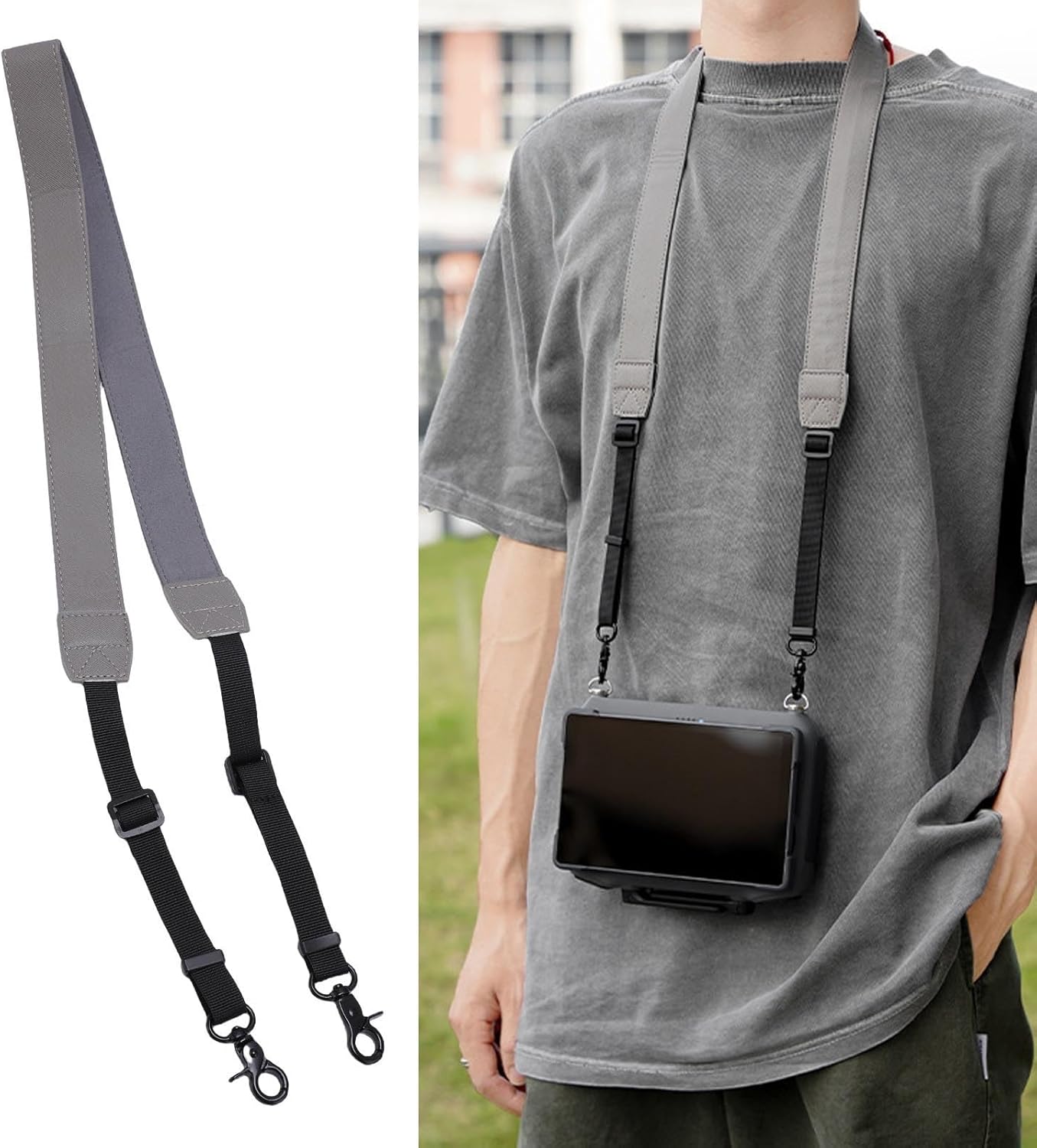 [COMPOSIZIONE MATERIALE PREMIUM] Questo cordino è realizzato con una miscela di materiali in nylon e PU, garantendo comfort durante l'uso prolungato e gestendo l'umidità senza sforzo. Il design traspirante sostiene il peso del controller senza allungamenti o strappi, promettendo resistenza e uso duraturo. [ DI FISSAGGIO SICURO] Il cordino è dotato di doppi ganci metallici con meccanismo di bloccaggio filettato, che garantisce una connessione al controller. I punti di connessione rinforzati impediscono il distacco accidentale durante le sessioni di volo attive, garantendo tranquillità durante le riprese aeree. [OPZIONI DI ADESIONE REGOLABILI] Con una regolazione della lunghezza compresa tra 53 e 62,3 cm, questo cordino soddisfa le diverse preferenze dell'utente. Il meccanismo scorrevole consente modifiche rapide, garantendo il posizionamento ottimale del controller per vari scenari di immagine, migliorando il controllo e il comfort complessivi. [COMODA SOLUZIONE DI STOCCAGGIO] Include una vite con a C salvaspazio per mantenere l'organizzazione del cinturino quando non in uso. Il design compatto e pieghevole riduce al minimo l'ingombro nelle borse degli attrezzi mantenendo tutti gli accessori ordinatamente insieme, garantendo un facile accesso e un'organizzazione senza soluzione di continuità. [ESPERIENZA DI VOLO MIGLIORATA] Questo cordino supporta una facile gestione del controller per la sostituzione della batteria e le regolazioni dell'attrezzatura. La distribuzione equilibrata del peso riduce l'affaticamento del braccio durante le sessioni prolungate di fotografia aerea, consentendo un'esperienza più confortevole e piacevole.