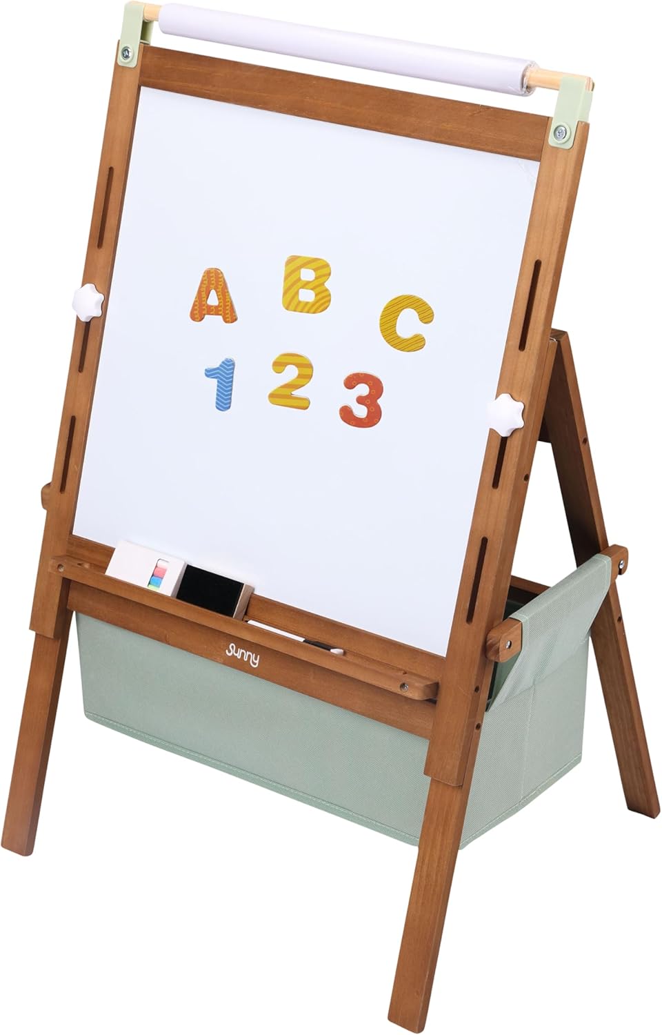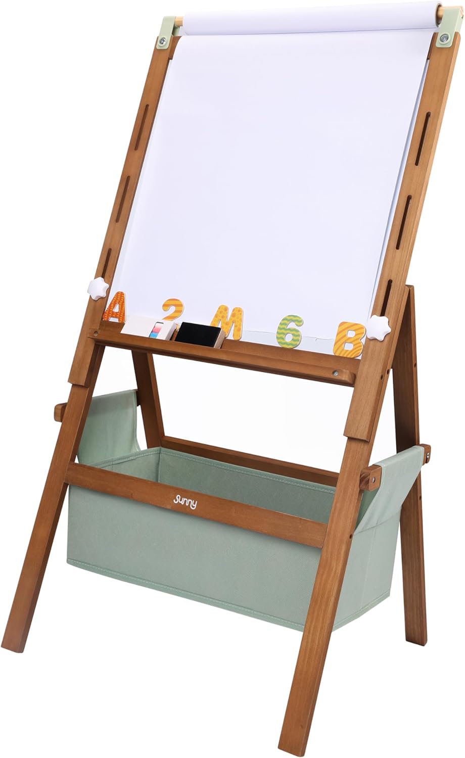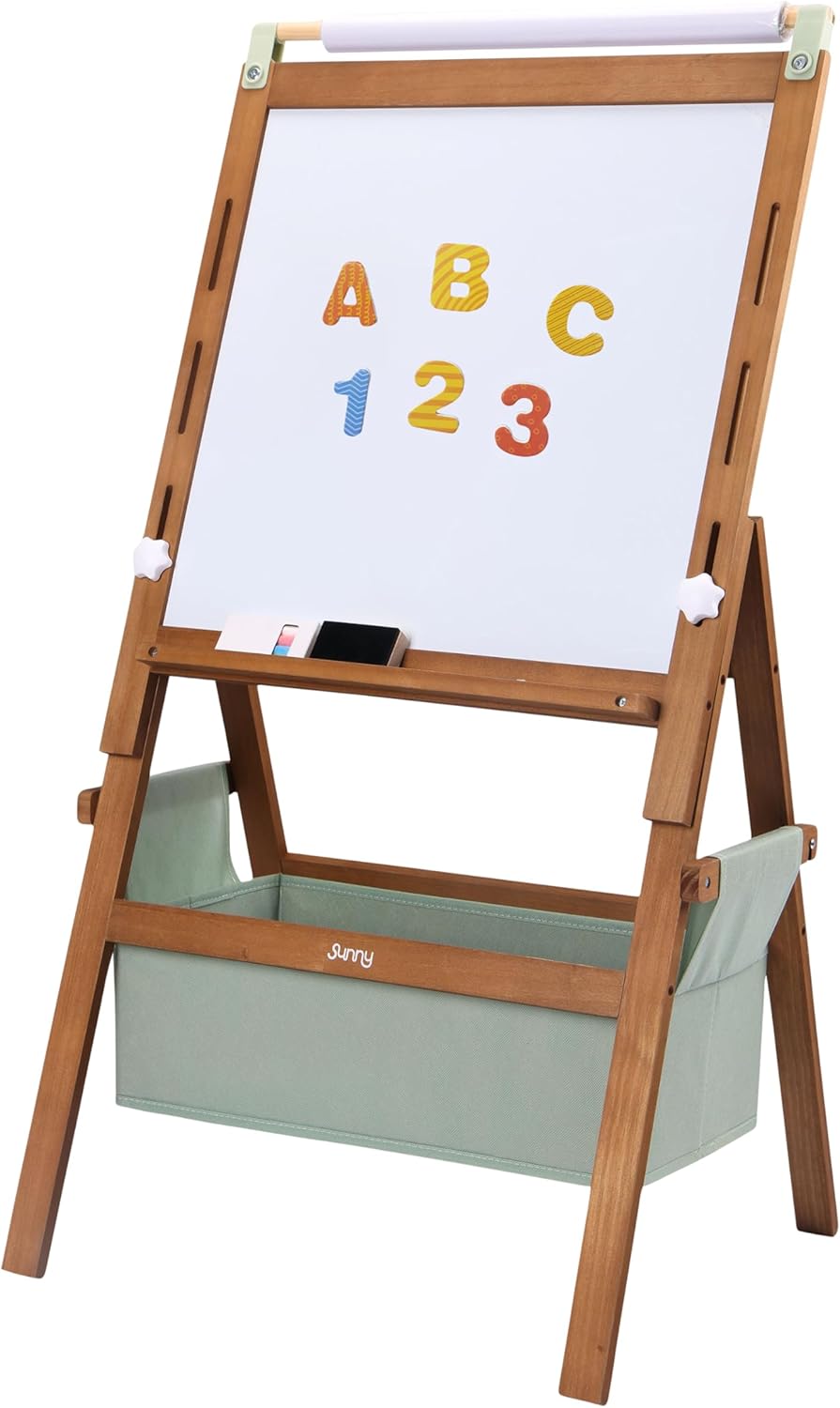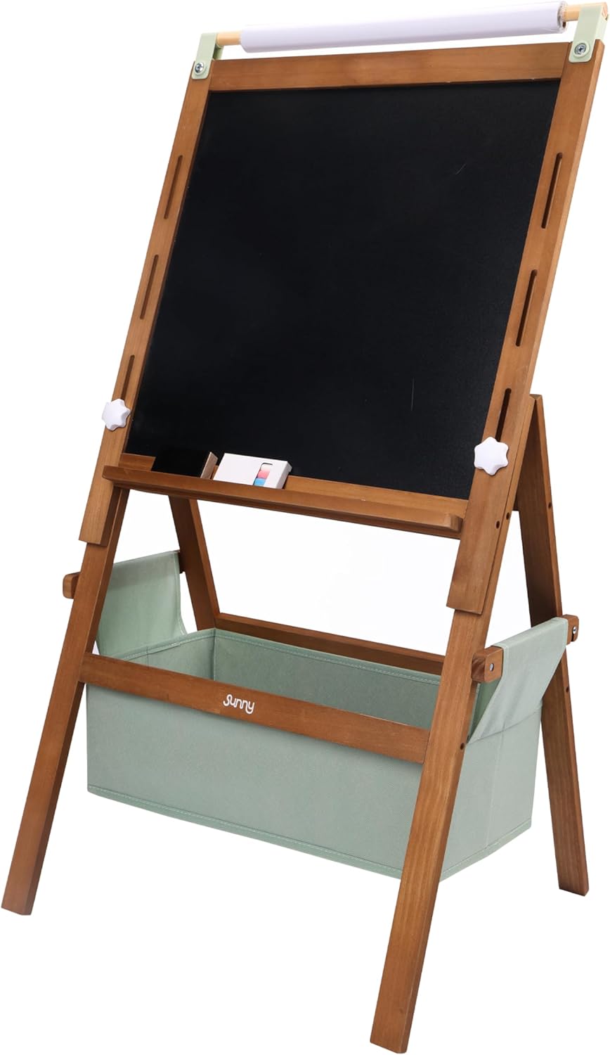 CREATIVO E VERSATILE: il cavalletto Sunny Lara offre ai bambini tre possibilità per dare libero sfogo alla loro fantasia: una lavagna bianca per pennarelli, una lavagna per gessetti per disegni creativi e un rotolo di carta per colorare senza limiti con matite colorate o vernici. Inoltre, la lavagna magnetica rende particolarmente emozionante l'apprendimento ludico di lettere, numeri e figure magnetiche. REGOLABILE IN ALTEZZA E ADATTO ALLA CRESCITA: grazie all'altezza regolabile, il cavalletto da pittura Lara cresce insieme al bambino e rimane interessante per anni. È perfetto per diverse fasce d'età, dai bambini in età prescolare a quelli in età scolare. Diventa così un compagno duraturo per momenti creativi e didattici. STABILE E COMPLETAMENTE ATTREZZATO: il cavalletto viene fornito con rotolo di carta, gessetti, pennarelli, cancellino e magneti. Nel robusto scomparto in tessuto sotto il cavalletto è possibile riporre ordinatamente penne e accessori, in modo che tutto sia a portata di mano. Il robusto telaio in legno garantisce una posizione stabile in ogni cameretta o sala giochi. DIMENSIONI E SICUREZZA: Realizzato in legno di pino certificato FSC al 100% proveniente da foreste sostenibili. Con dimensioni di 52 x 40 x 102 cm, il cavalletto da pittura Sunny Lara si adatta a qualsiasi stanza. Adatto a bambini dai 3 anni in su. SUNNY: Divertiti con Sunny. Che si tratti di giocare nella propria casetta, nella sabbiera o in un vero tipi indiano, Sunny realizza i sogni dei bambini. Il gioco di ruolo permette ai bambini di dare libero sfogo alla loro creatività e di sviluppare le loro abilità sociali in modo divertente. Crea un'infanzia indimenticabile con Sunny.