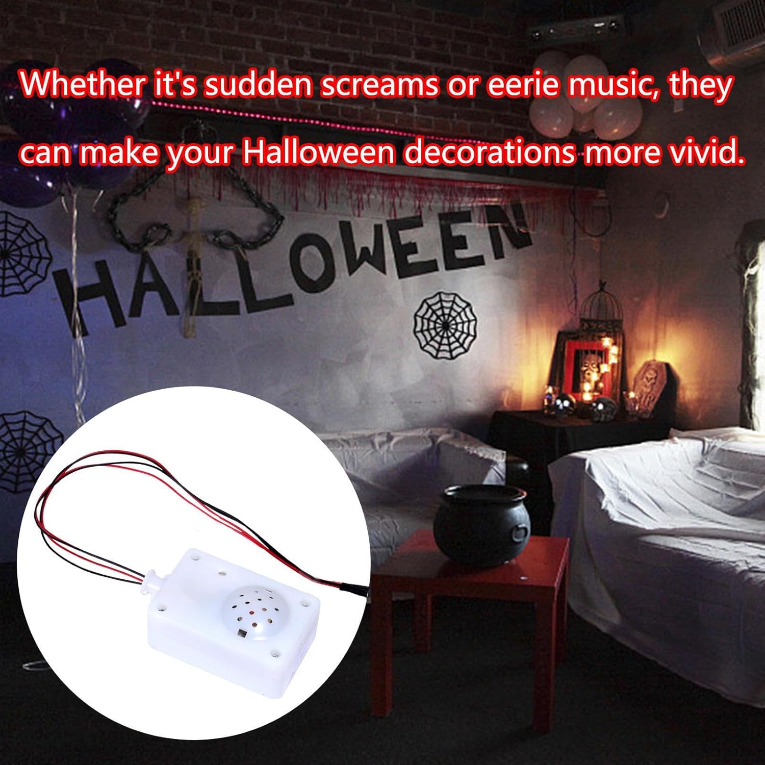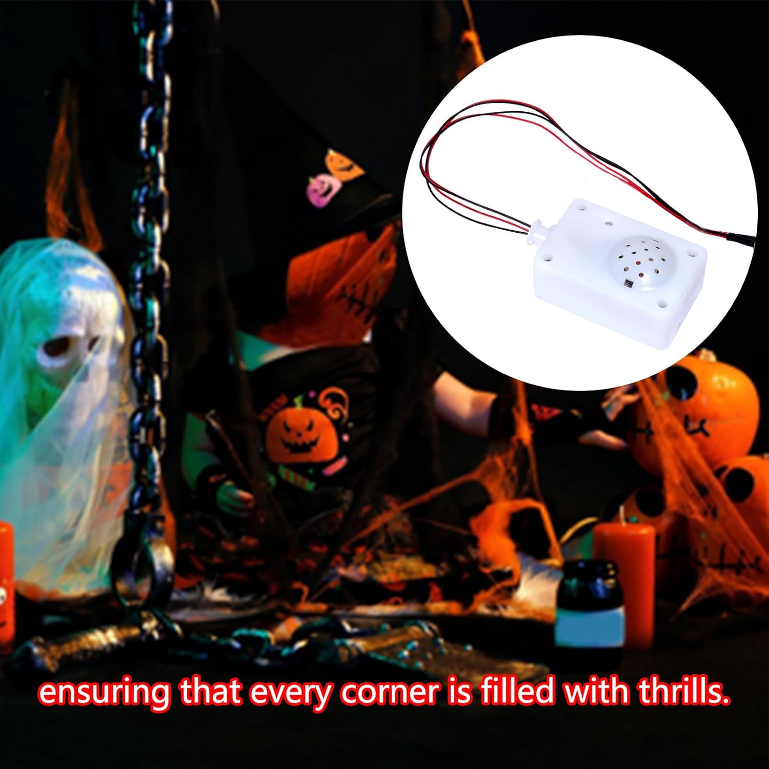 Effetto inquietante: Ghost Scribe Sounder è sapientemente realizzato per aggiungere spina dorsale a case o feste infestate. I suoi suoni inquietanti e ben realizzati si tradurranno in un effetto spaventoso che farà sì che chiunque ascolti rimanga spaventato e con brividi lungo la schiena. Tecnologia di controllo vocale: sintonizzati con il nostro Ghost Screaming Sounder, che attiva urla improvvise e musica inquietante con controllo vocale avanzato con suono o movimento, offrendo un'esperienza di Halloween migliorata. Stand Wear: aumenta il fattore paura con addominali di lunga durata e componenti elettronici che producono costantemente urla spaventose. Funziona all'interno o all'esterno. Riutilizzabile. Offri molteplici funzioni: Esperienza di spavento definitiva Esperienza Lo spavento ideale con Ghost Screaming Sounder. L'atmosfera spettrale e accogliente creata dalle luci a LED integrate e dagli autentici effetti sonori urlanti lo rendono una perfetta decorazione multiuso di Halloween. Ampia applicazione: ideale per qualsiasi scena che richiede effetti sonori spaventosi, che si tratti di uno spettacolo teatrale, di uno scherzo di Halloween o di una stanza di fuga.