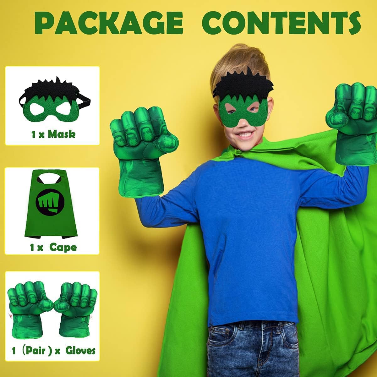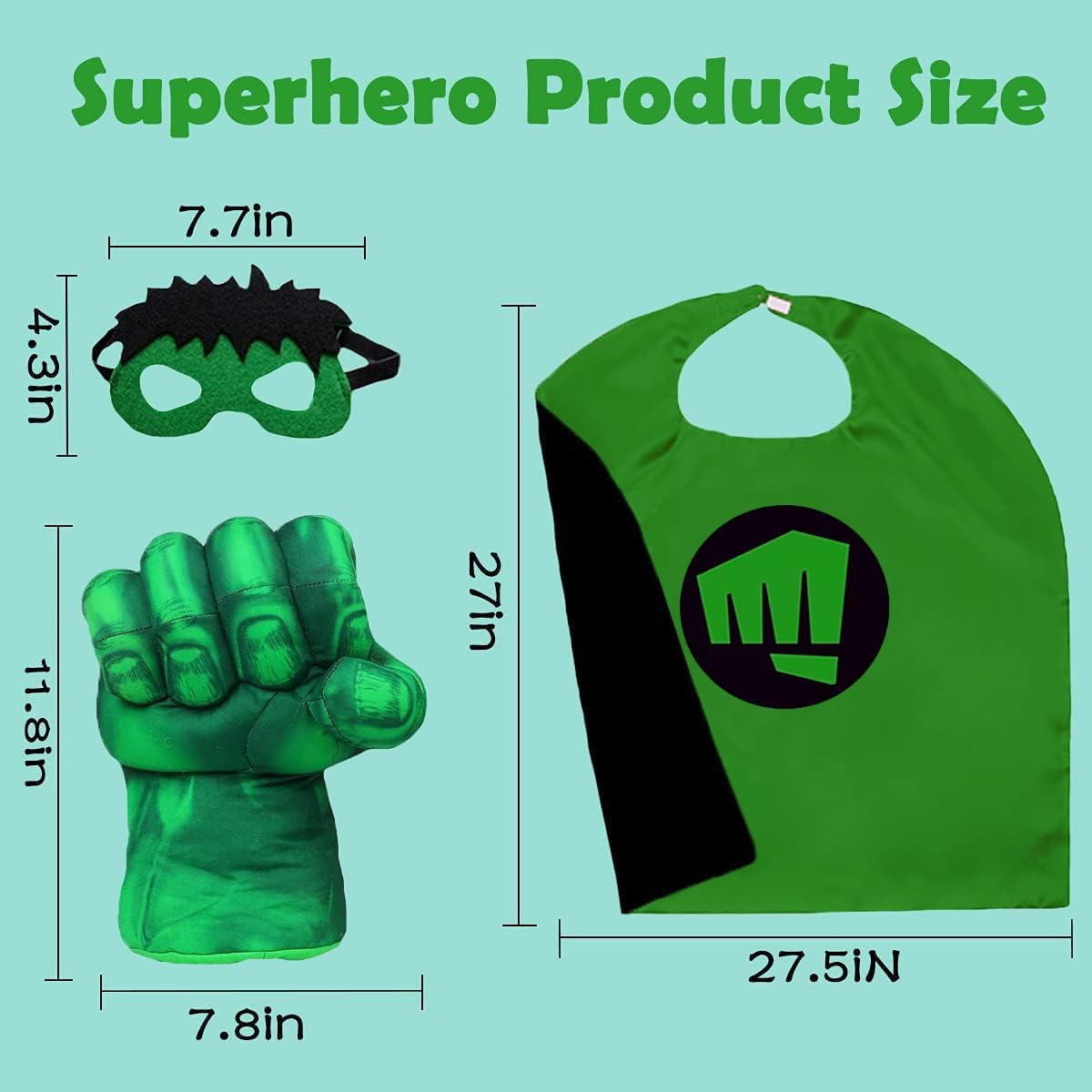 Set di guanti da supereroe: include 1 mantello da supereroe, 1 maschera da supereroe, 1 paio di guanti da boxe. I guanti da supereroe si abbinano bene con i mantelli e la maschera da supereroe per completare per un tocco aggiunto al costume di Halloween dei tuoi bambini. Le mani in peluche del supereroe rendono i guanti da supereroe più realistici e fanno sentire i bambini come un supereroe per rilasciare il potere per battere il male e salvare le persone e il mondo. ★ Con manici: all'interno dei guanti da supereroe sono presenti maniglie per sostenere e controllare i movimenti. Questi peluche a forma di pugni di supereroi sono facili da indossare e rendono facile per le piccole mani da tenere durante i combattimenti di gioco, ma sono comunque abbastanza grandi da poter essere indossati comodamente da un adulto. Funzionano bene anche come guanti da allenamento per boxe, che non danneggiano nessuno quando si gioca "Smashs". ★ Morbido e durevole: i pugni delle mani sono imbottiti in 100% cotone PP, fornendo uno spessore e un comfort eccellenti. Cuciture robuste e fabbricazione forte. Il bambino può giocare liberamente senza preoccuparsi di rompersi le mani, ferire gli altri o distruggere qualcosa. Il mantello ha una chiusura in velcro sul collo ed è realizzato in tessuto di raso liscio e setoso. ★ Guardia i sogni eroiici dei bambini: i bambini fantasticano che possono anche diventare splendenti, possedere forti armature e superpoteri, sconfiggere tutte le forze del male, mantenere la pace nel mondo e proteggere le loro cose amate. Un bambino con il sogno di un eroe desidera essere forte come il suo eroe, con il nostro mantello da supereroe per bambini e guanti con pugni di peluche, lascia che i bambini siano i loro eroi. ★ Ottimo regalo per bambini: i pugni sono una buona scelta per feste di compleanno, Natale, giocattoli di supereroi, travestimenti e giochi di finzione, regali di supereroi, Halloween e così via. Un regalo simile può aiutarli a essere più coraggiosi, piacerà molto, vorremmo che sia un regalo perfetto per i tuoi bambini per realizzare il sogno del loro eroe. E molto grato ai loro genitori per aver dato loro un meraviglioso regalo regalo!
