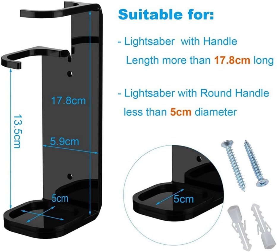 Questo supporto per spada laser monopezzo presenta un design offset innovativo che semplifica l'inserimento e l'estrazione della spada laser. Grazie al suo spazio generoso, è compatibile con la maggior parte delle spade laser. Il supporto per spada laser viene fornito con base acrilica e un kit hardware completo che mantiene la tua spada sicura e bella. Il materiale durevole fornisce un supporto stabile per un uso a lungo termine. Il pacchetto viene fornito con kit di installazione completo e istruzioni, monta il supporto per spada laser saldamente sulla parete in pochi passaggi, copriviti inclusi per nascondere le viti. Nota: è necessaria la perforazione. Con questo supporto da parete per spada laser puoi visualizzare perfettamente le tue spade laser senza nascondere i dettagli, la tua spada laser sembra bellissima e fantastica quando si illumina. Se necessario, puoi rimuovere facilmente la spada laser dal supporto. Si adatta a una larghezza e una lama inferiori a 5 cm/1,97, controlla se la dimensione è adatta alla tua spada laser prima dell'acquisto. (ATTENZIONE: SOLO supporto a parete, spada laser NON inclusa)