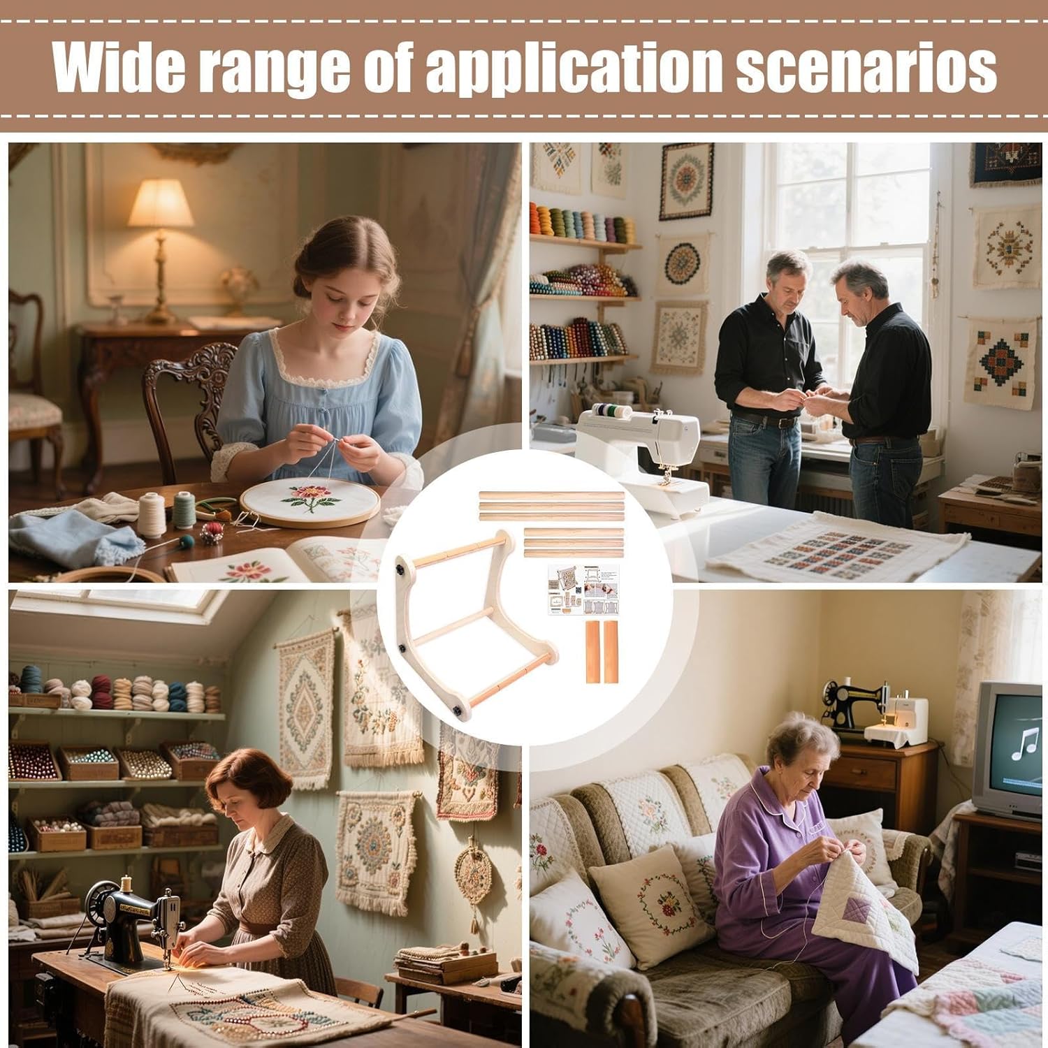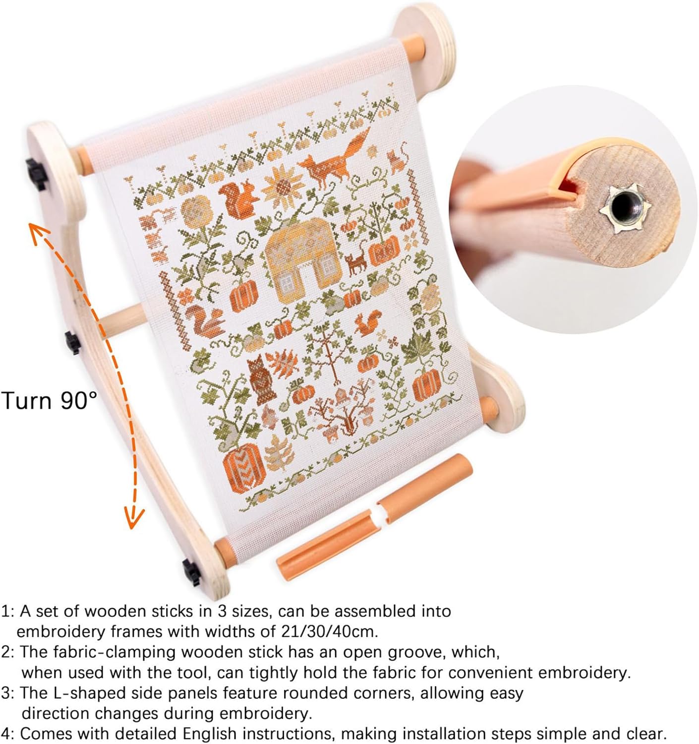 Supporto flessibile del tessuto: ideale per l'uso su scrivania o sul grembo, il suo design regolabile si adatta a più dimensioni del tessuto e fornisce tre opzioni di asta di legno per soddisfare diverse esigenze di artigianato Comodo montaggio e mobilità: progettato per un facile montaggio e smontaggio, questo supporto da ricamo offre comodità portatile e stoccaggio compatto, garantendo un uso senza interruzioni a scuola o nel tuo lavoro creativo Materiale sicuro: realizzato in legno duro lucido, questo supporto da ricamo fornisce un supporto stabile proteggendo il tessuto da scivolare o danni durante l'uso, garantendo prestazioni di lunga durata con la sua struttura in materiale di lunga durata Design antiscivolo: progettato con barre trasversali scanalate e 8 clip antiscivolo, questo supporto da ricamo assicura una migliore stabilità, mantenendo il tessuto saldamente in posizione per evitare spostamenti durante le cuciture Multiuso: adatto per ricamo, cucito e altro ancora, migliora i progetti di trapuntatura, perline e taflyry, fornendo un'adattabilità senza pari per attività creative
