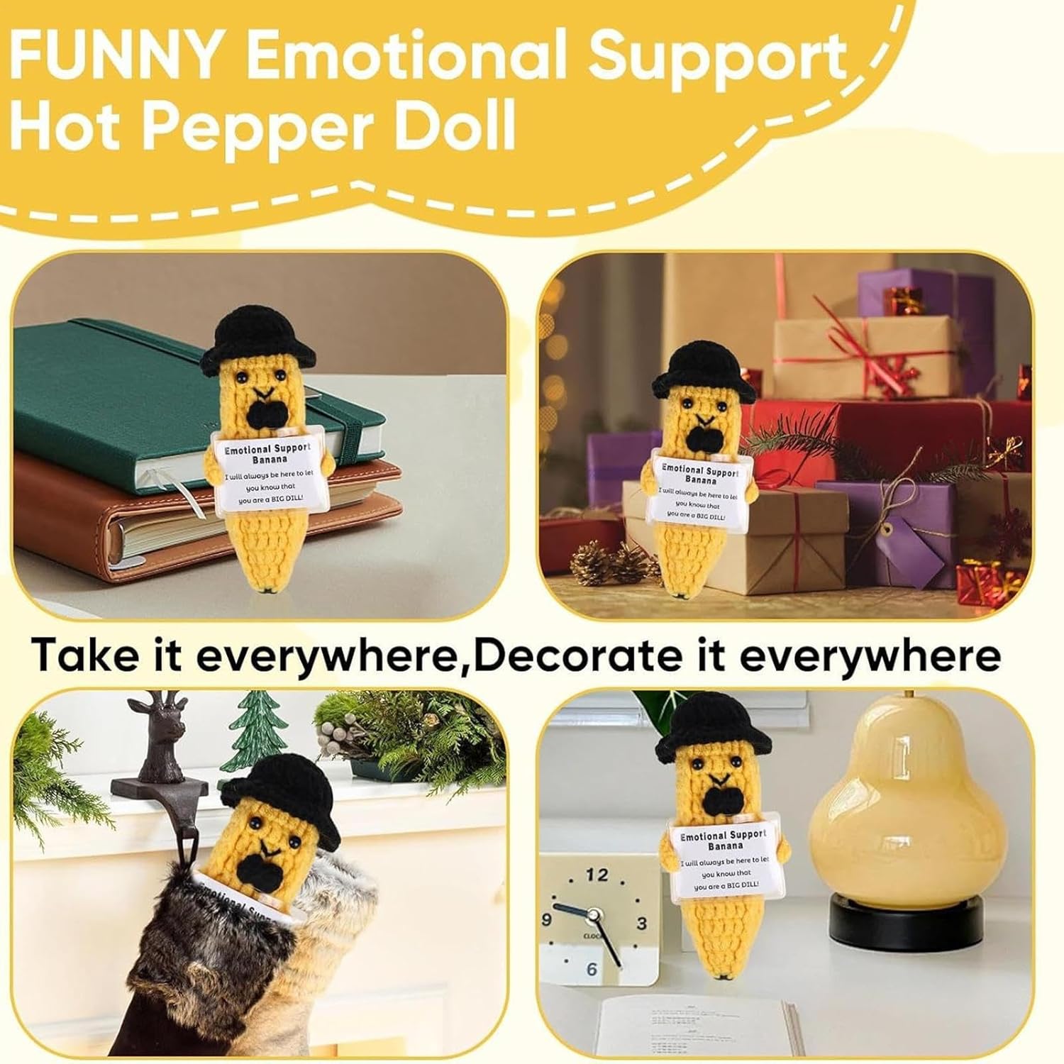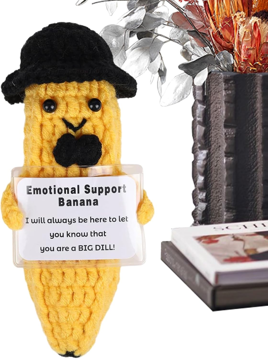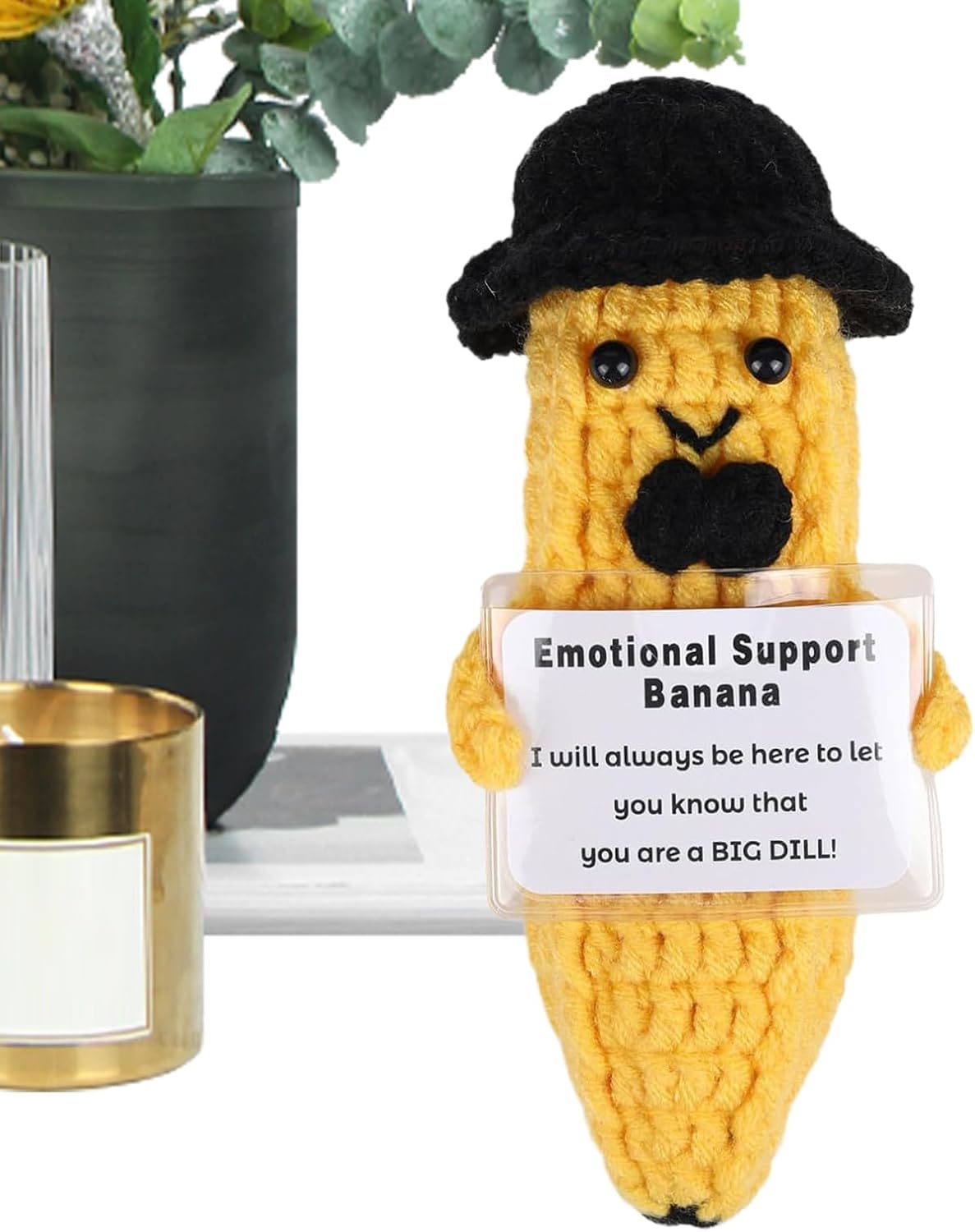 Supporto per la spinta ': più felice quando vedi l'ispirazione che la banana ti sorride. Questo adorabile compagno fornisce costante comfort e supporto, portando un buon ogni volta che ne hai bisogno. La sua presenza allegra illuminerà i tuoi giorni difficili, rendendolo un'adorabile ispirazione su cui puoi affidamento Usi versatili: incarnare il potere della positività, la nostra banana di ispirazione è perfetta per chiunque abbia bisogno di un pick-me-up. Diffondi risate e allegria tra amici e colleghi e guarda come aumenta i tuoi spiriti e calma il tuo Uso ampio: qualsiasi impostazione di decorazioni per la casa con la sua versatilità, la banana ispirazione è perfetta per aggiungere un tocco divertente ai display della scrivania durante eventi speciali o come un'aggiunta distintiva alla tua collezione di decorazioni per la casa Craftsmanship eccezionale: lascia che la nostra banana di ispirazione ti porti conforto e pace con la sua consistenza morbida, realizzata con filati e carta robusti. Meticolosamente realizzato con uncinetto fine, è ben fatto e non facile da deformare o sbiadire Divertente design di banane: indossare un cappello a cilindro nero e un , la nostra banana ispirazione è una bambola all'uncinetto distintiva e colorata che aggiungerà un tocco di allegria alla tua giornata. La sua forma di banana lo rende un compagno distintivo, portando calore e gioia nel tuo spazio con il suo aspetto luminoso e allegro