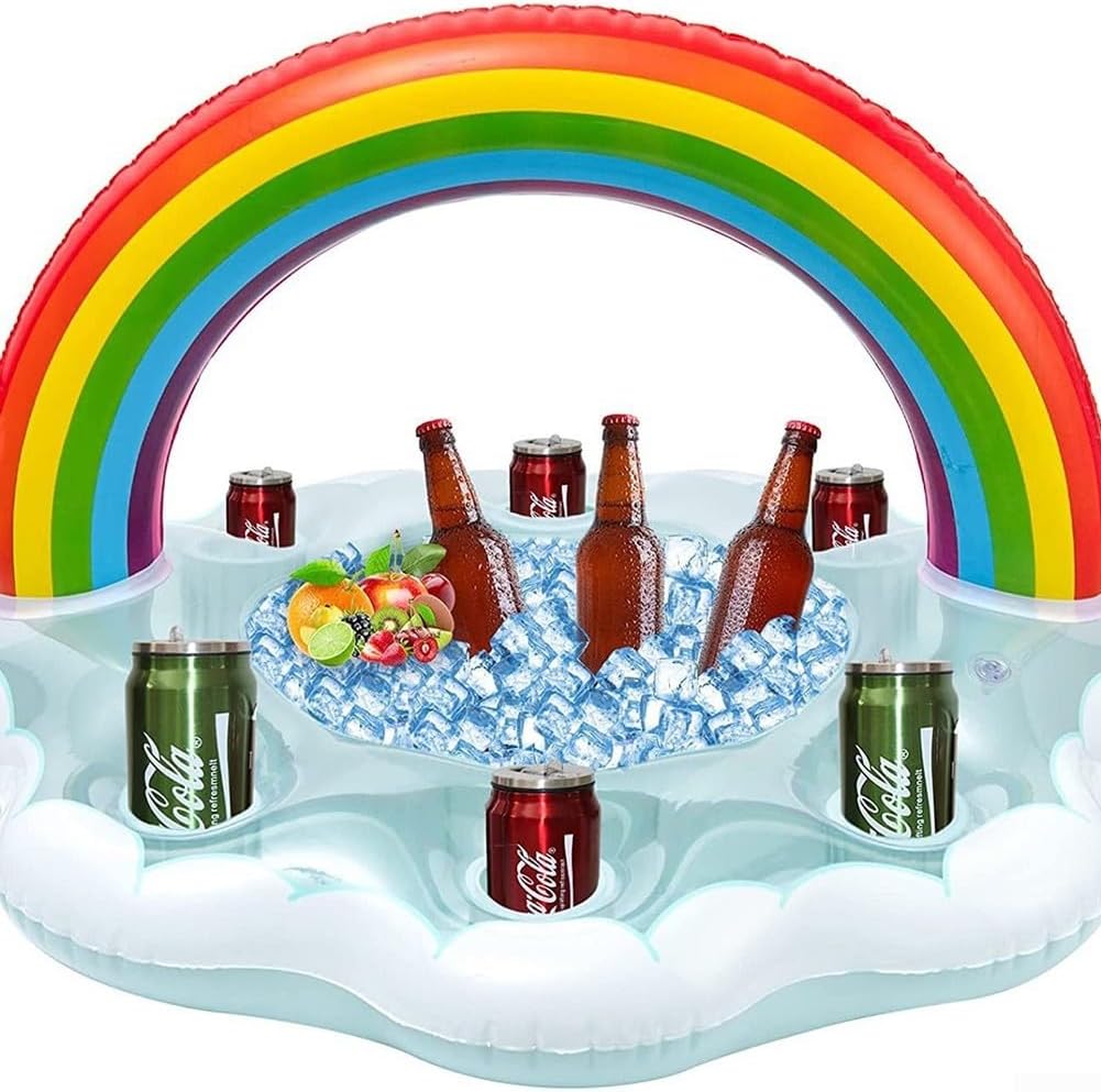 Design galleggiante per un facile accesso: tieni le bevande vicine mentre ti godi l'acqua; il nostro portabevande galleggiante garantisce un facile accesso alle tue bevande mentre ti rilassi. Scomparti multipli: con slot progettati per tazze e lattine di varie dimensioni, questo supporto garantisce che tutti possano gustare i loro rinfreschi preferiti a portata di mano. Materiale gonfiabile: realizzato in robusto materiale gonfiabile, questo prodotto resiste all'esposizione al sole, rendendolo una grande aggiunta per qualsiasi riunione o festa all'aperto. Adatto per tutte le occasioni: sia a bordo piscina che in spiaggia, questo bar galleggiante aggiunge divertimento e comodità al tuo tempo mantenendo le bevande a portata di mano. Facile da trasportare: la natura gonfiabile consente una conservazione compatta quando sgonfia, perfetta da portare in vacanza o semplicemente da riporre quando non in uso.