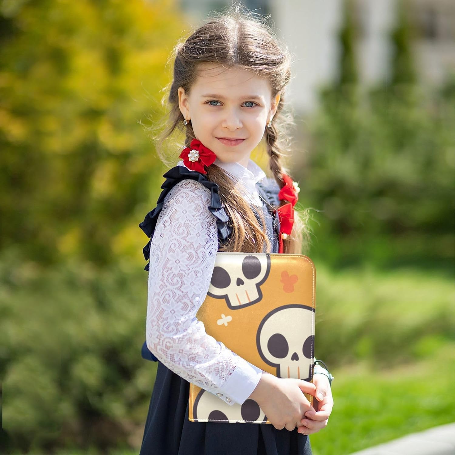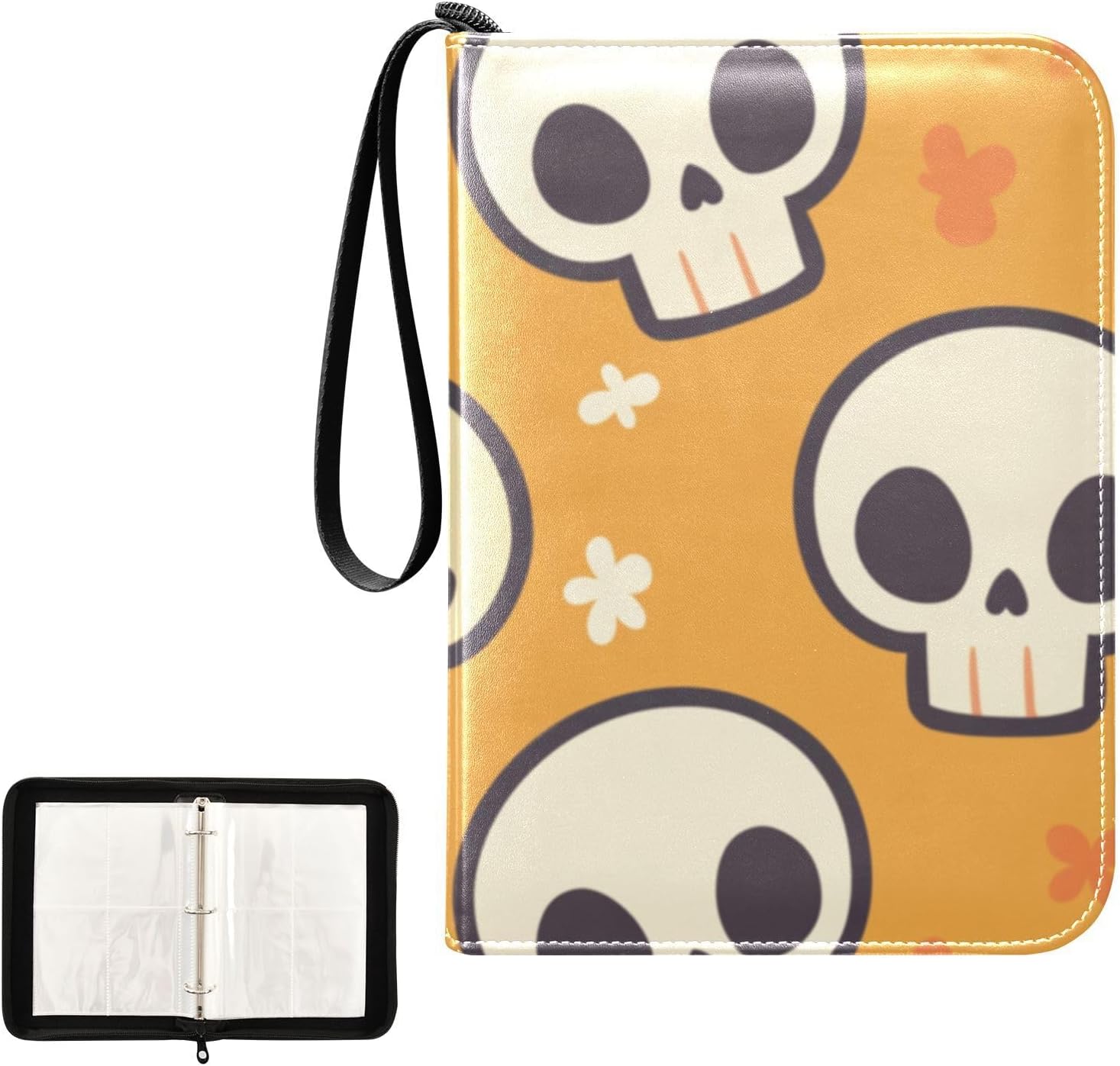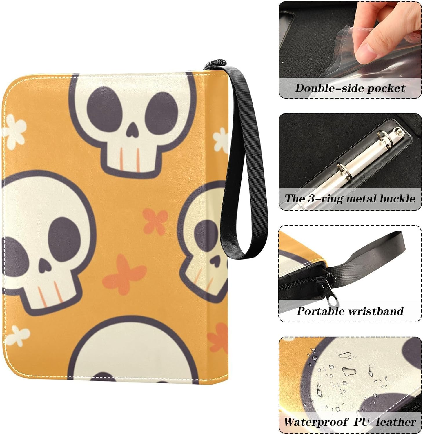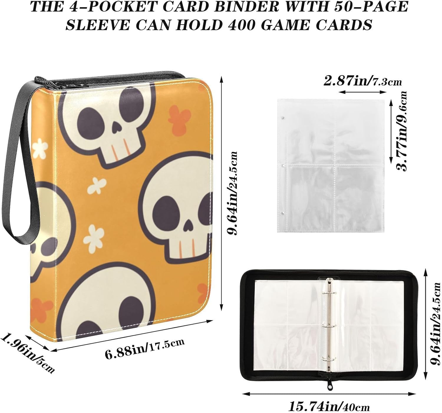 Supporto per carte collezionabili, protezione per riporre carte sportive, 50 pagine fino a 400 carte con motivo teschio di Halloween, sfondo arancione