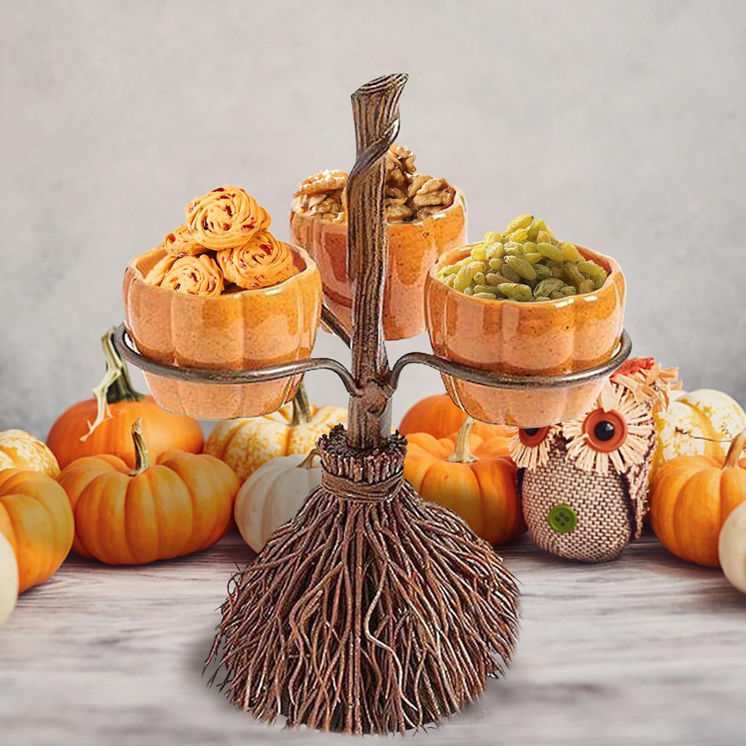 [Design innovativo della zucca] Creativo e bello, Halloween Candy Bowl presenta ciotole di zucca su un design a forma di manico di scopa, aggiungendo elementi alle decorazioni della tua festa. [Materiali di eccellente qualità] Robusto, ecologico e sicuro, il supporto per cupcake è realizzato in resina di alta qualità, durevole per un uso a lungo termine. [Adozione diffusa] La ciotola di zucca può essere utilizzata per contenere biscotti, cioccolatini, cupcake, antipasti e altri dessert o snack, perfetta per matrimoni, baby shower, feste di Halloween e altro, applicabile a varie occasioni. [Eccellente maestria] Non facili da rompere, le ciotole di Halloween per caramelle sono trattate con superba maestria, realizzate con trame chiare e aspetti divertenti. [Scelta ideale] I supporti per dessert sono meravigliosi regali di festa per amici, vicini e familiari, possono lasciare una profonda impressione sui tuoi ospiti, perfetti per abbinarsi al tuo arredamento per la casa di Halloween.