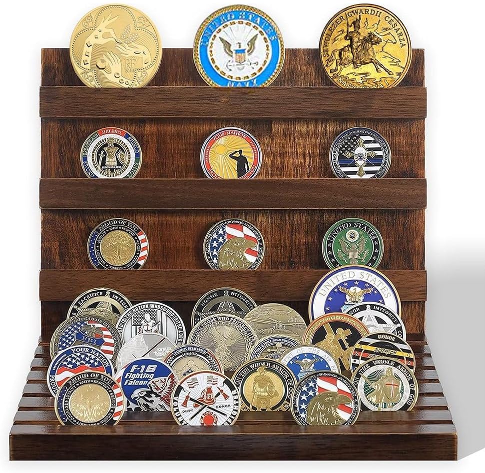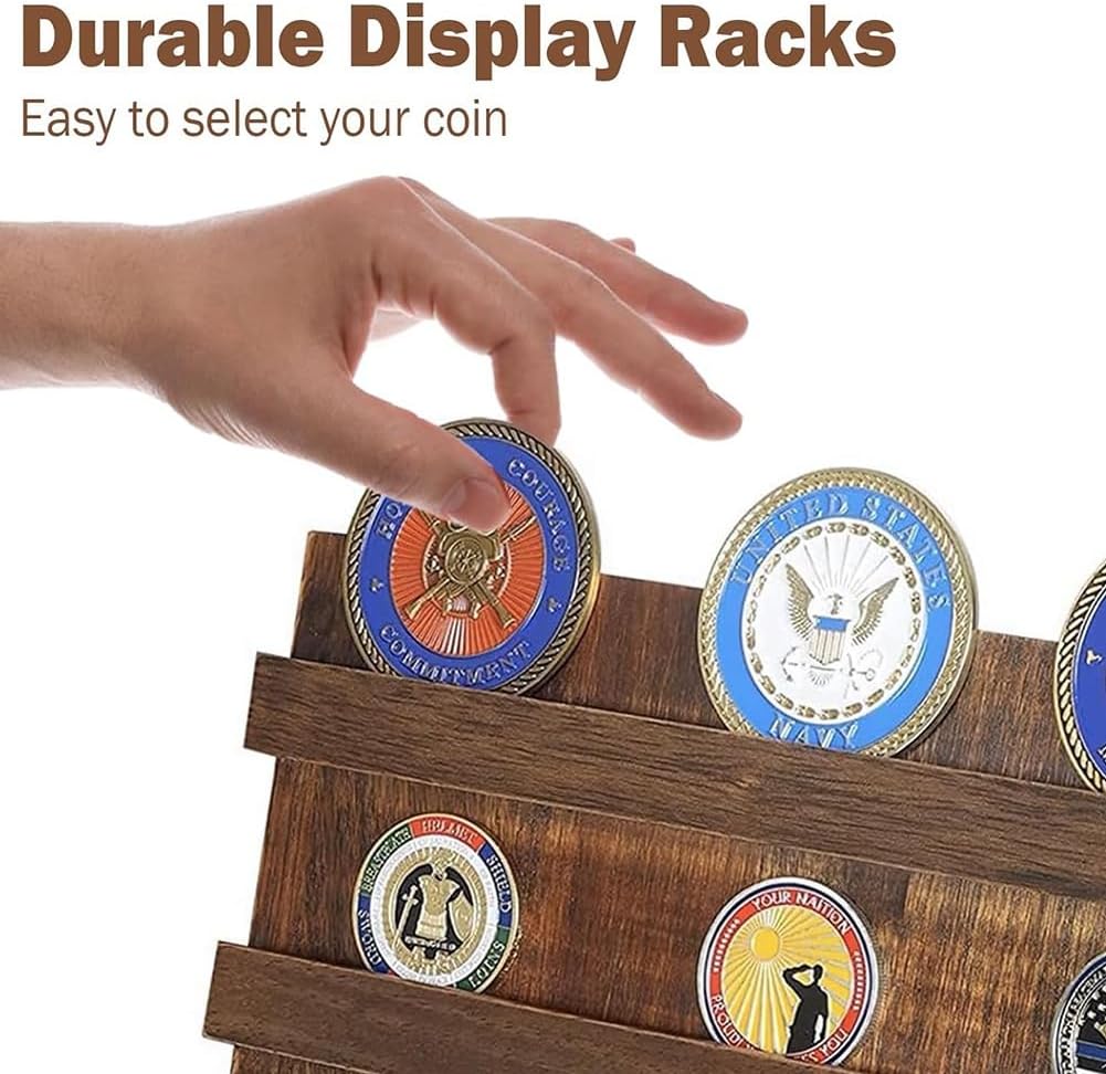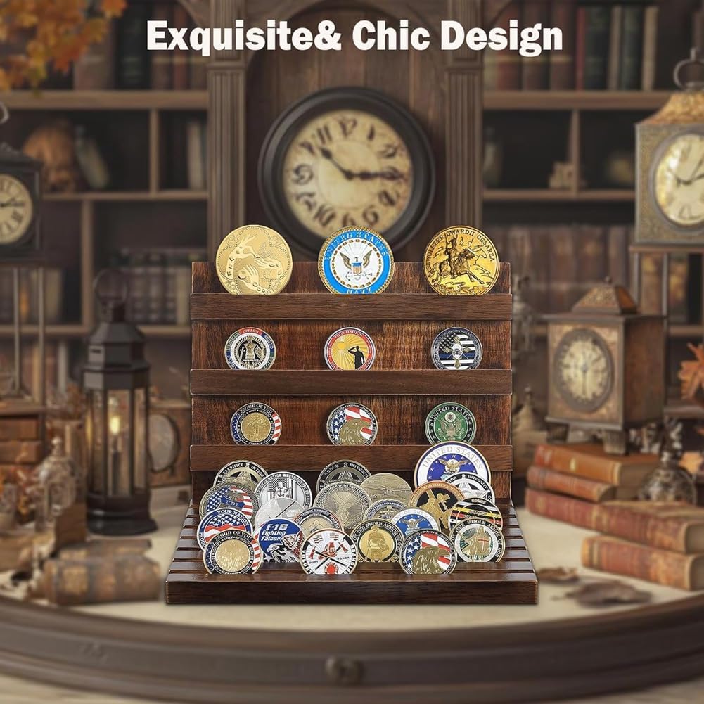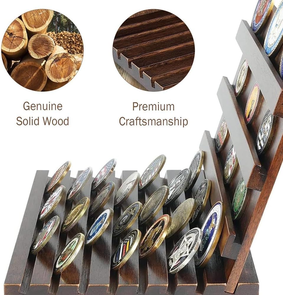 Decorazione versatile ed elegante: l'elegante finitura in legno si adatta a qualsiasi arredamento, che si tratti di ufficio, soggiorno o vetrina. Questo portamonete non è solo una pratica soluzione di archiviazione, ma è anche un elegante elemento che valorizza l'estetica di qualsiasi spazio. Design multi- per un'organizzazione ottimale: con 10 file per una facile conservazione ed esposizione, questo porta monete in legno assicura che la tua collezione organizzata e visivamente accattivante. Il design salvaspazio ti consente di le tue monete in ordine, esponendole in modo ben visibile affinché tutti possano ammirarle. Espositore in legno di alta qualità per monete: realizzato in legno di alta qualità, questo espositore per monete è costruito per durare. Rifinito con resistente allo sbiadimento, unisce ed . Questo supporto in legno massello è progettato per contenere fino a 60 monete. Perfetto per collezionisti e appassionati: collezionisti o chiunque gli oggetti commemorativi, questo espositore offre una soluzione per esporre monete commemorative, monete militari o altri oggetti memorabili. Arricchisce il vostro spazio con un tocco di raffinatezza e storia. Un regalo premuroso per veterani o collezionisti: questo porta monete in legno è la scelta , rendendolo un regalo ideale per compleanni, festività o occasioni speciali.