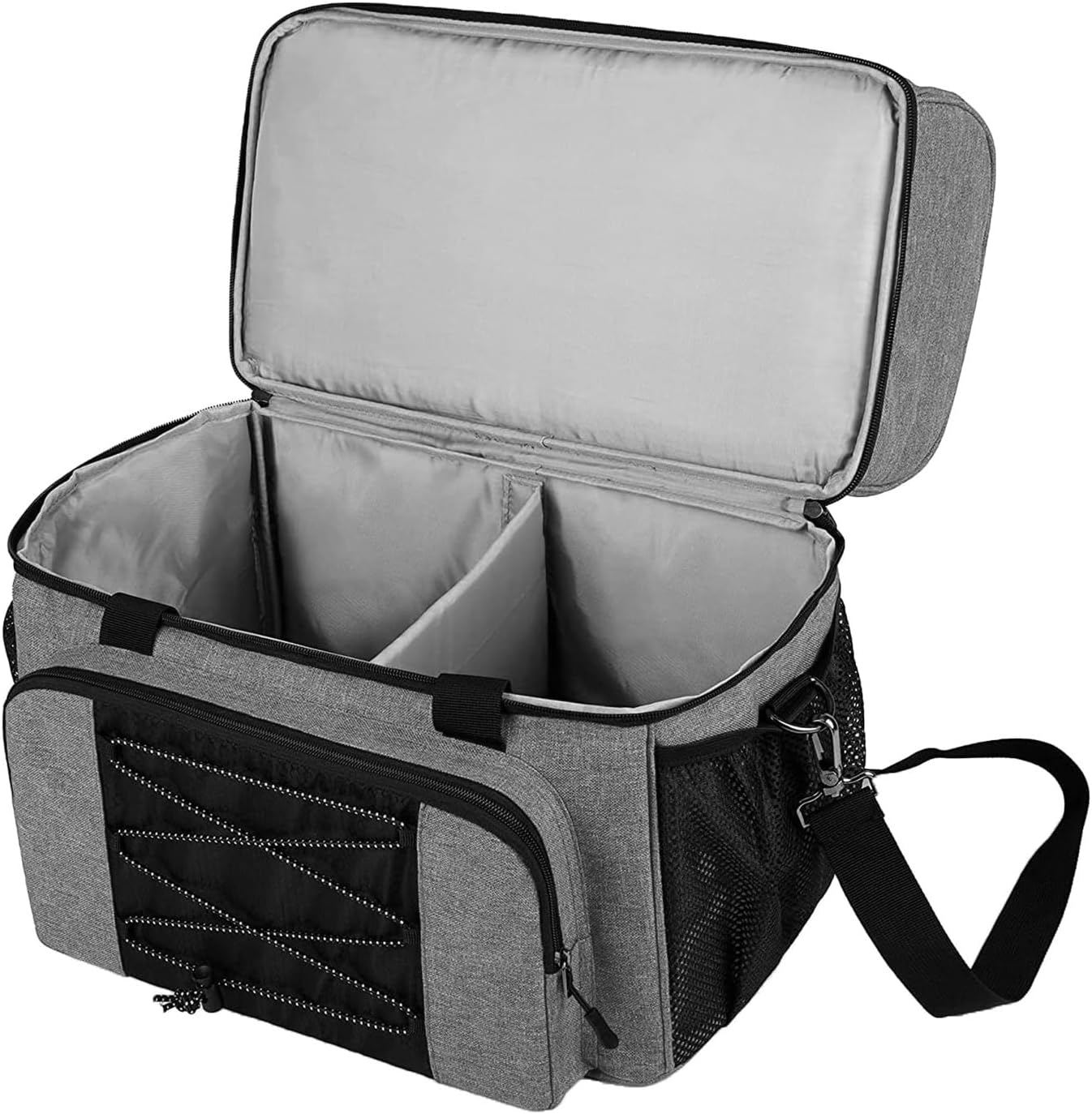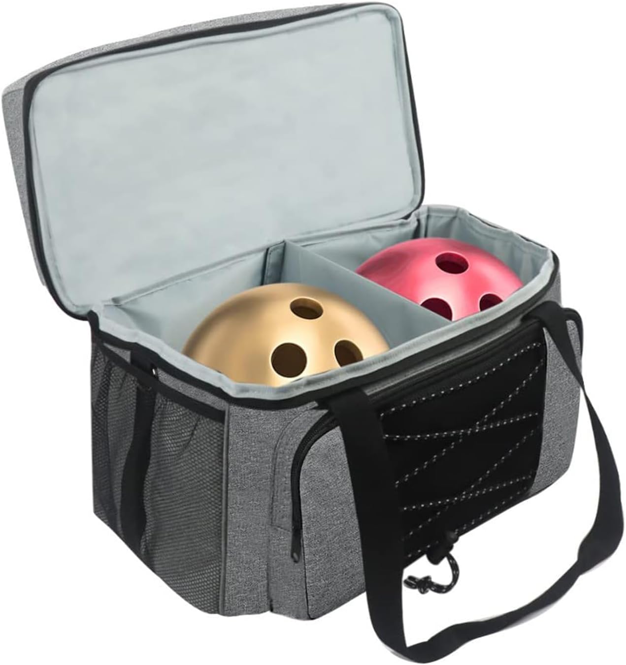 Realizzato in tessuto Oxford, resistente e impermeabile, pregevole fattura, è un bel regalo per giocatori bowling principianti o professionisti design della tasca aggiuntiva aumenta lo spazio archiviazione, comodo per riporre telefono, portafoglio, chiavi, bottiglie d'acqua, asciugamani, occhiali La borsa da bowling portatile può contenere facilmente 2 palle da bowling, portapalle e design divisore imbottito proteggono le palle da eventuali danni o ne impediscono rotolamento durante trasporto La tracolla imbottita regolabile e la maniglia imbottita offrono un'esperienza trasporto confortevole Lo scomparto superiore per le scarpe può contenere un paio scarpe alla taglia 16 e PVC trasparente all'interno facilita la rimozione delle macchie