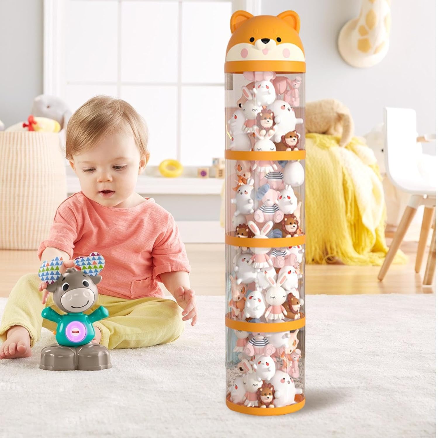 Design pratico: elevata capacità di archiviazione e dimensioni degli scomparti studiate creano un sistema di impilamento intelligente, i giocattoli di peluche salvaspazio e ben conservati per aree di gioco organizzate a lungo termine. Robusto sistema di archiviazione: combina una struttura resistente con un aspetto trasparente. Rimane intatto e privo di sostanze nocive per tenere in ordine gli animali di peluche Comodo da riporre: il coperchio a forma di cane consente l'accesso dall'alto e dal lato, mentre il meccanismo scorrevole offre una grande apertura per semplificare notevolmente la rimozione e la conservazione dei peluche. Funzione di rotolamento facile: con ruote girevoli per una scorrevolezza silenziosa e un movimento fluido. Ideale per la cameretta dei bambini, il cestino può essere facilmente spostato o riposizionato nella stanza. Versatile sistema di archiviazione: con scomparti interni regolabili e scomparti sicuri, garantisce una tenuta stabile con un utilizzo ottimale dello spazio per tutte le esigenze di conservazione dei peluche.