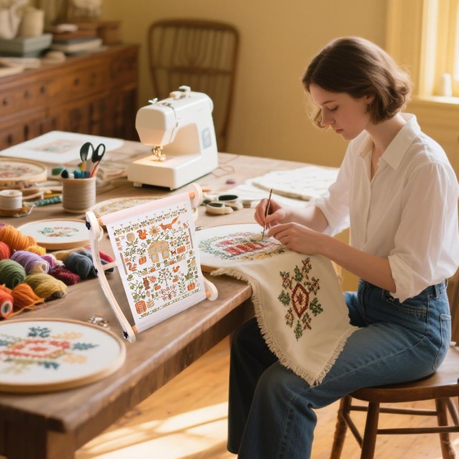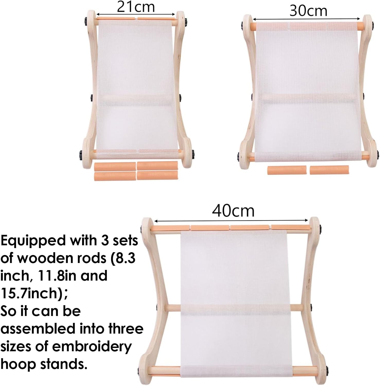 Compagno di artigianato regolabile: adatto per l'uso su scrivania o grembo, questo supporto da ricamo si adatta a varie dimensioni del tessuto con tre dimensioni di aste in legno per una maggiore flessibilità e convenienza Salvaspazio e portatile: dotato di un design senza attrezzi che consente una rapida installazione e smontaggio, assicura una portabilità senza sforzo e una conservazione efficiente, adatto sia per progetti scolastici che per lavori in studio Materiali durevoli: il design in legno duro lucido offre un supporto costante per evitare scivolamenti o danni al tessuto, rendendolo una scelta ideale per allenamenti di ricamo lisci e ininterrotti Tenuta sicura del tessuto: questo supporto da ricamo utilizza barre trasversali scanalate e 8 clip antiscivolo per migliorare la stabilità, offrendo una presa affidabile che impedisce al tessuto di spostarsi durante le attività di cucitura Ampia gamma di usi: progettato per gli appassionati di ricamo e cucito, è eccezionale in applicazioni di trapuntatura, perline e taflyry, rendendolo un must per progetti versatili