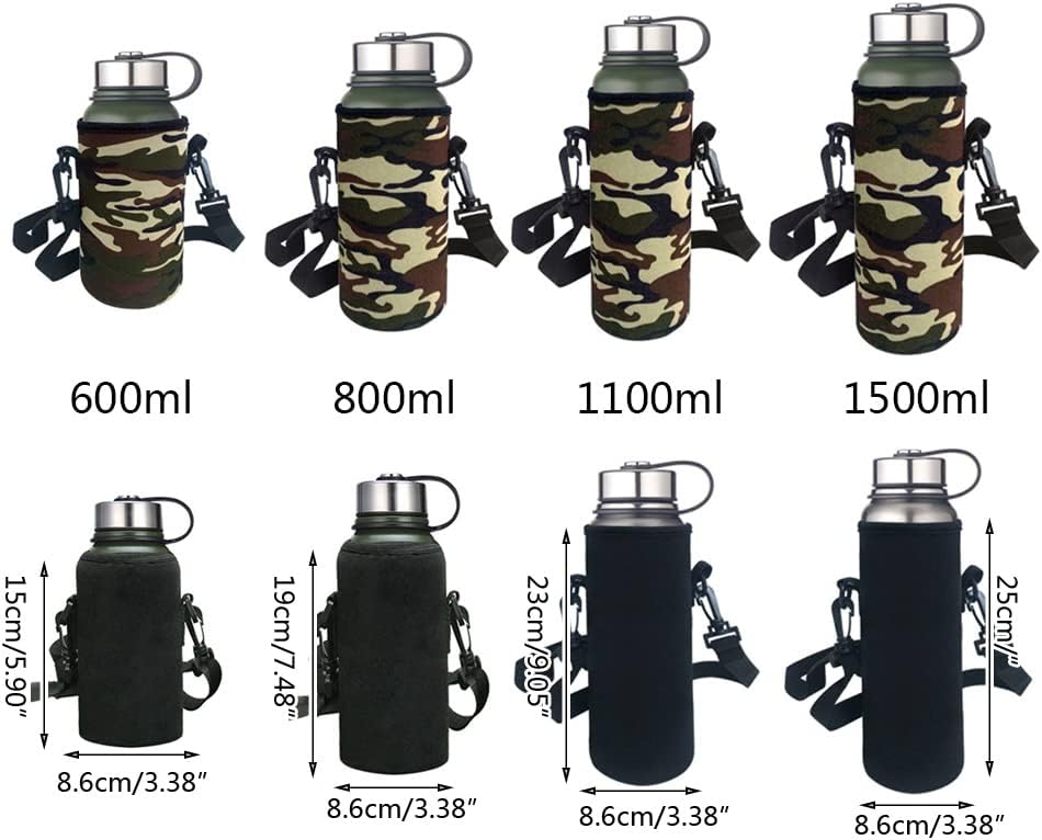 Materiale morbido: la nostra borraccia per il trasporto è realizzata in tessuto morbido, leggero, morbido ed elastico, quindi si adatta facilmente alla tua bottiglia. Mantiene il calore, impermeabile, antiurto e antiscivolo, fornendo protezione generale per la tua bottiglia. Portatile: progettato con la tracolla regolabile, facilmente regolabile, adatto per la maggior parte dei tipi di corpo, adulti o bambini. Si può indossare sopra la spalla, per il petto trasversale come una borsa a tracolla o semplicemente a mano, così comodo da trasportare. Ampia applicazione: adatto per varie bottiglie da 600 ml/800 ml/1100 ml/1500 ml, ideale per bottiglie in acciaio inossidabile e plastica, bevande sportive ed energetiche, proteggerà la tua bottiglia da graffi, raschiare e molto altro ancora. Lavabile: facile da pulire e lavabile in lavatrice. È caratterizzato dal fatto che il colore non sbiadisce, durevole per l'uso quotidiano e la borsa per bottiglie mantiene l'acqua alla temperatura perfetta. Occasioni: impermeabile e indossabile, adatto per passeggiate, corsa, palestra, escursioni, sport, scuola, ufficio e molto altro ancora. Ideale per adulti e bambini, e può trovare grande uso in questa borsa portabottiglie d'acqua.