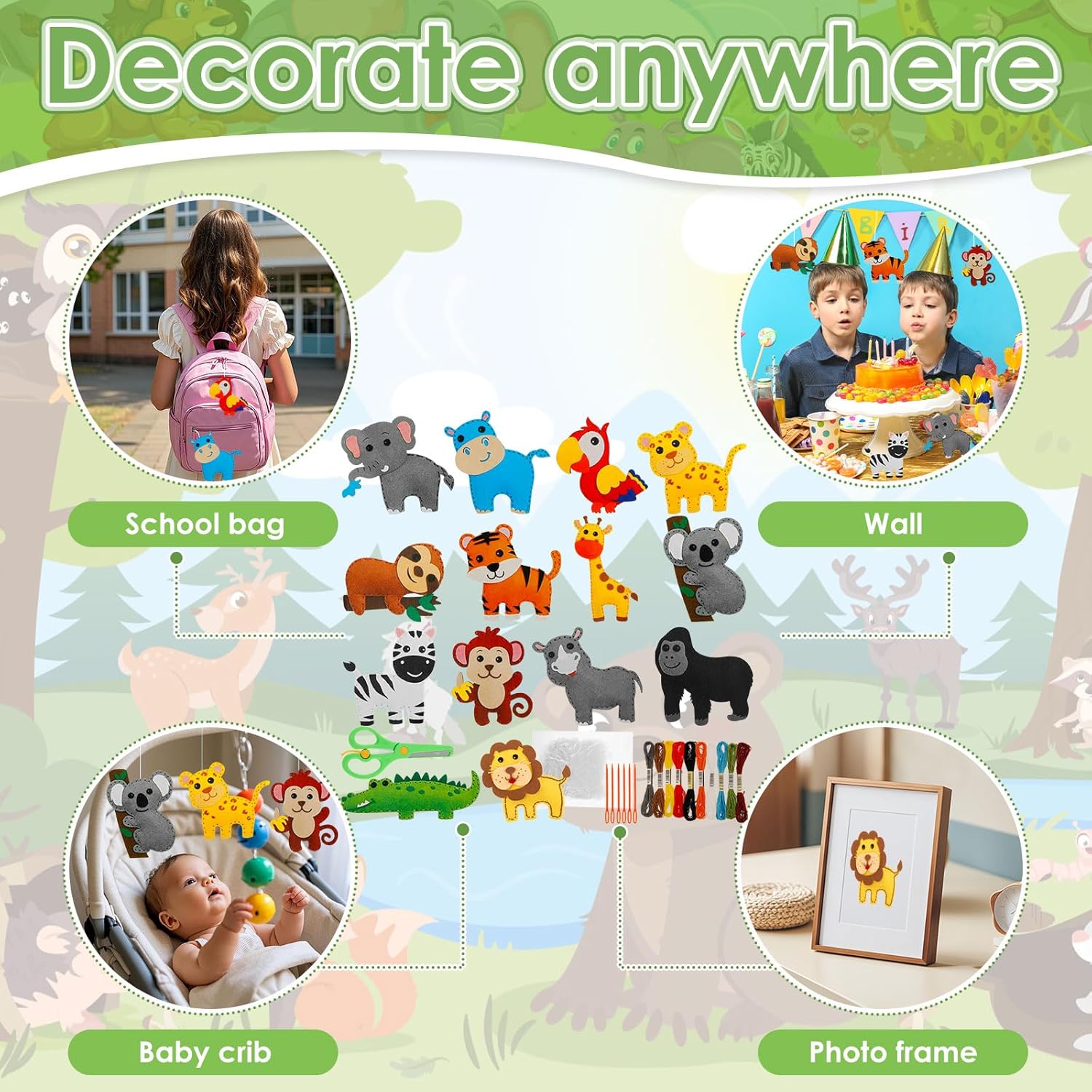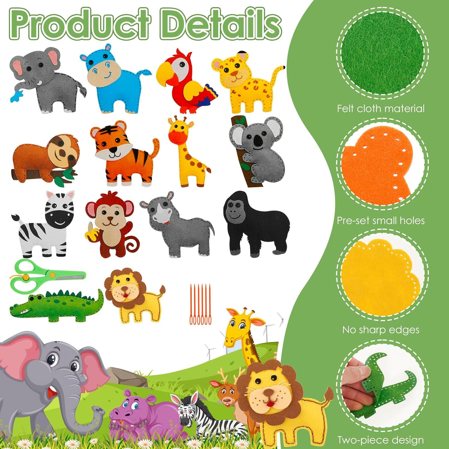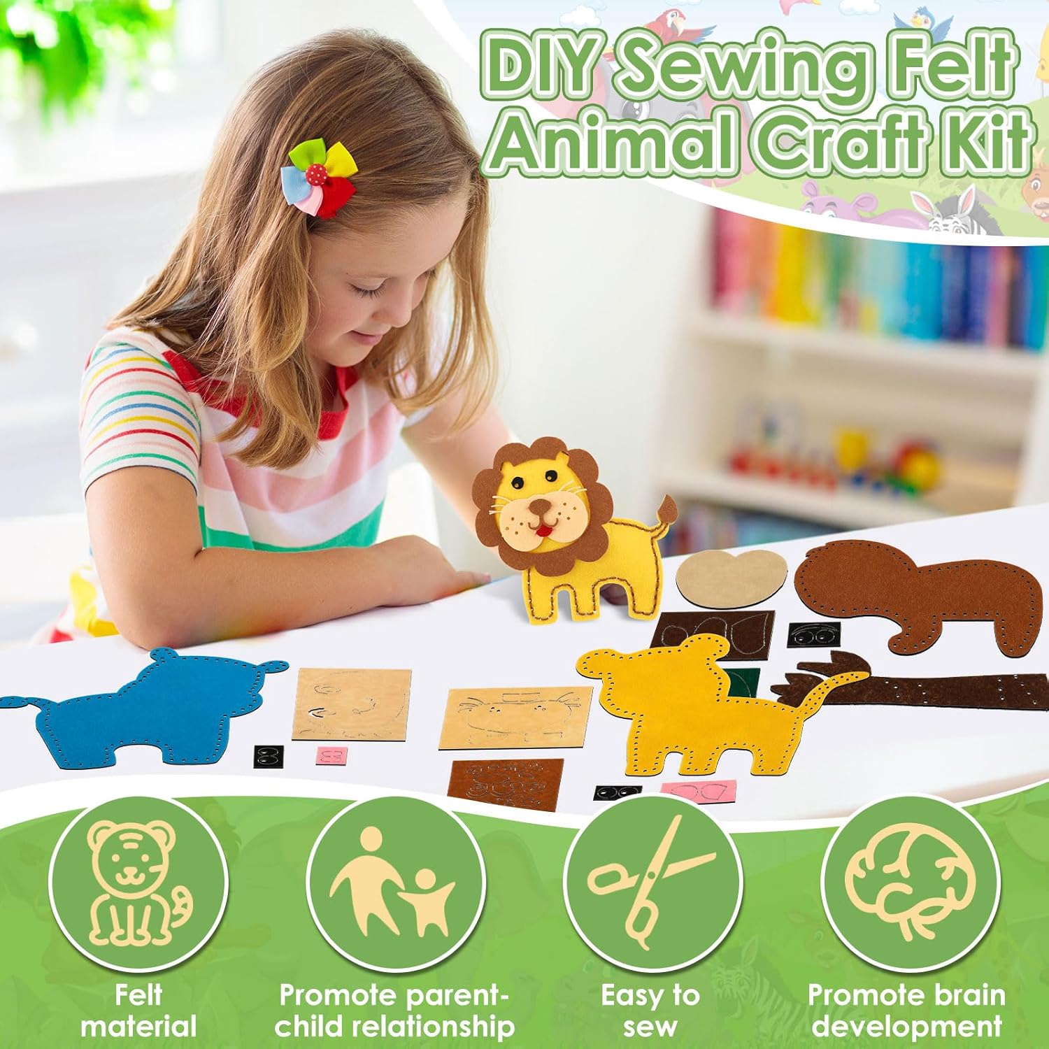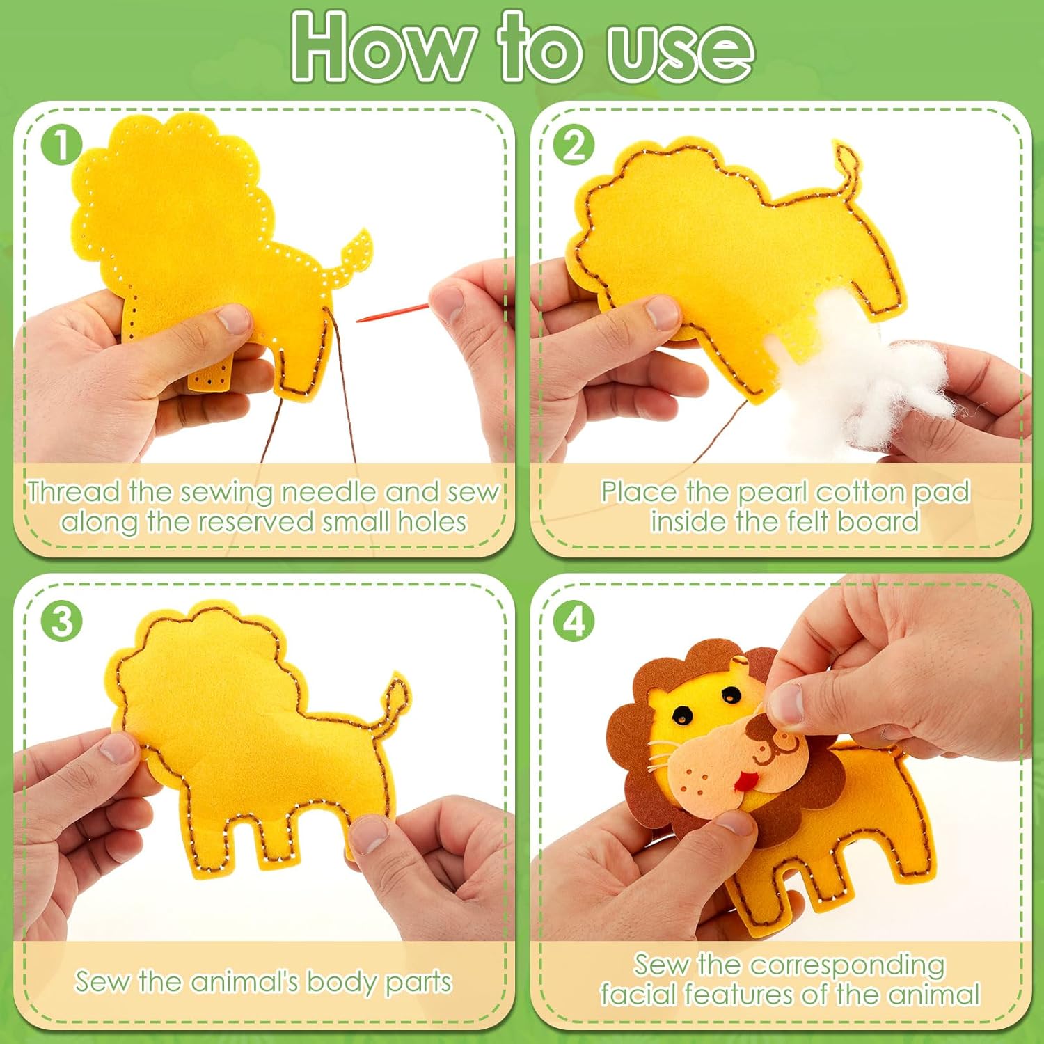 Feltro di alta qualità: questo set di cucito per bambini in feltro è realizzato in feltro ecologico di alta qualità, sicuro, atossico e durevole. Non ha bordi taglienti, quindi è perfetto per le piccole mani dei bambini. Non dovrete più preoccuparvi che i materiali artigianali siano dannosi per i bambini o si rompano facilmente: questo kit resisterà anche a giochi frequenti. Ideale per il divertimento quotidiano a casa o in kita, dove i bambini possono sfogarsi liberamente sugli animali in feltro, senza rischi Promuove il legame familiare: il nostro set fai da te per bambini in feltro è un ottimo strumento per genitori e bambini per giocare e imparare insieme. Promuove la comunicazione tra genitori e figli, rafforza il rapporto genitore-figlio e consente un prezioso tempo in famiglia. Non più solo intrattenimento passivo come la televisione: qui entrambi possono interagire attivamente, condividere idee e creare qualcosa di bello insieme. Ideale per i fine settimana o le ore serali a casa per portare la famiglia closer Facile da usare: con questo set fai da te per bambini, il cucito è semplice per i bambini: posizionare la base in schiuma sotto la piastra in feltro, infilare il filo da cucito attraverso l'ago e cucire lungo i piccoli fori predefiniti. Dopo la cucitura, il foglio di feltro può essere utilizzato ovunque come per decorare cornici, pareti, quaderni o zaini. Non è più necessario comprendere complesse istruzioni per il fai da te che frustrano i bambini: i semplici passaggi rendono facile iniziare. Ideale per i bambini che vogliono sperimentare il cucito per la prima volta Stimola le abilità: questo set per bambini in feltro per bambini è un ottimo giocattolo educativo: aiuta i bambini a migliorare le loro capacità motorie, favorisce lo sviluppo del cervello, la creatività e la coordinazione occhio-mano. Inoltre rafforza la capacità di pensiero, la concentrazione, la capacità pratica e l'interazione e offre ai bambini un divertimento duraturo. Niente più giocattoli che non promuovono lo sviluppo a lungo termine: qui i bambini imparano abilità giocosamente importanti. Ideale per bambini in età scolare e kita per crescere giocosamente Regalo perfetto: questo set di cucito per bambini in feltro è un regalo perfetto per i bambini, sia per appuntamenti di gioco, pernottamento con amici, piccoli gruppi o feste artigianali. Non è solo un semplice kit da cucito, ma un giocattolo educativo adatto anche per feste di compleanno, Natale o altre occasioni. Non siete più alla ricerca di regali inappropriati che si dimentichino rapidamente: questo set vi darà piacere a lungo e incoraggia anche le abilità. Ideale come regalo per nipoti, amici o bambini vicini