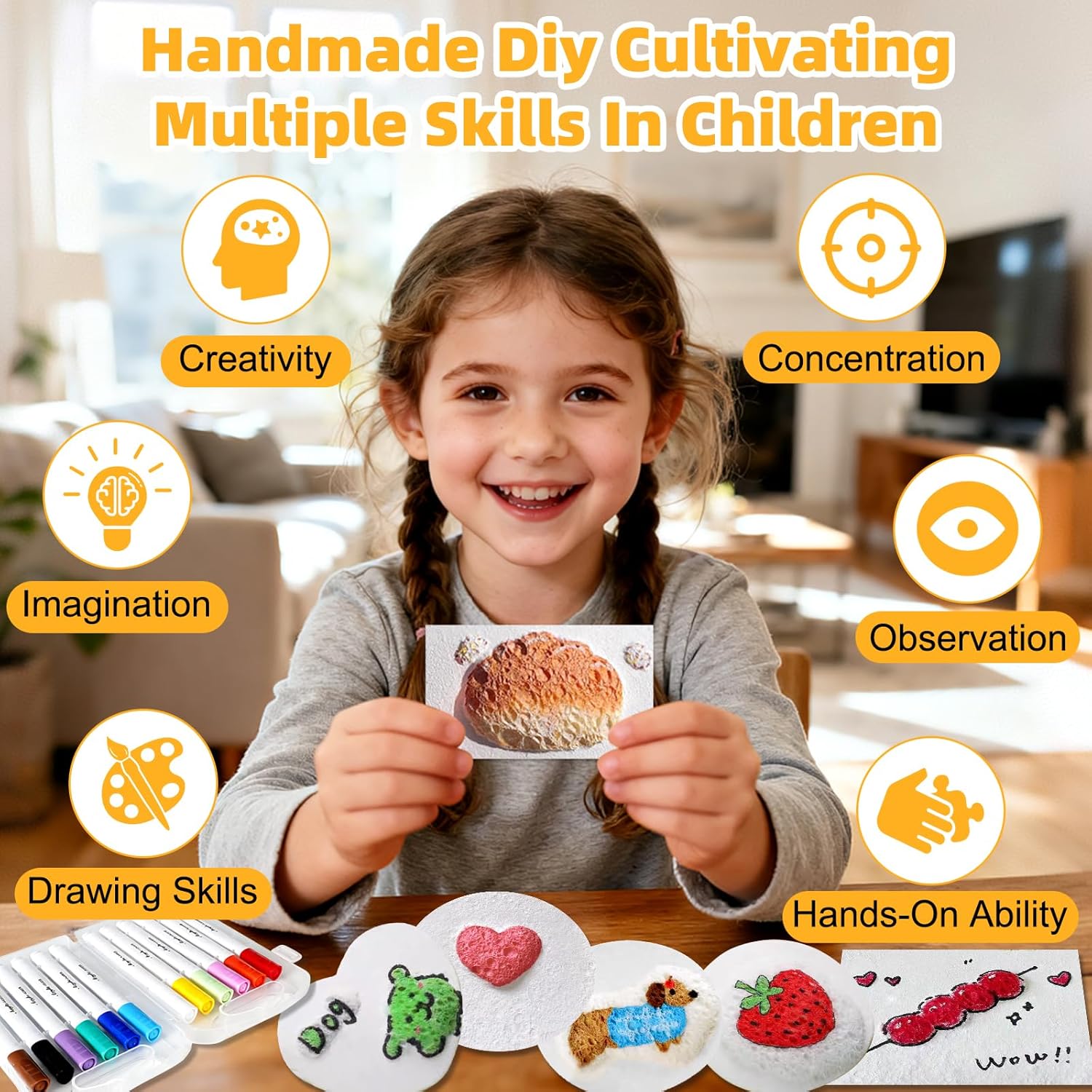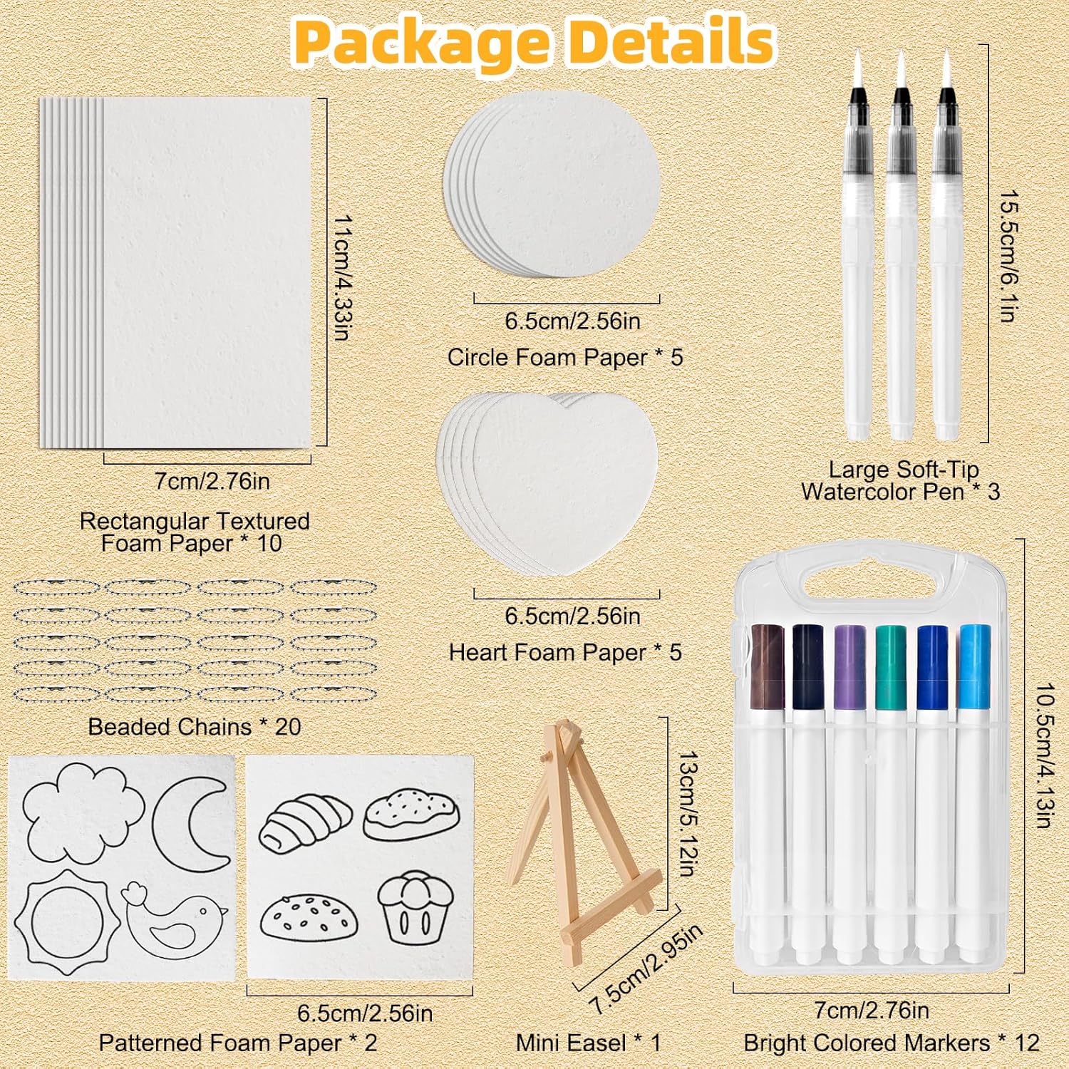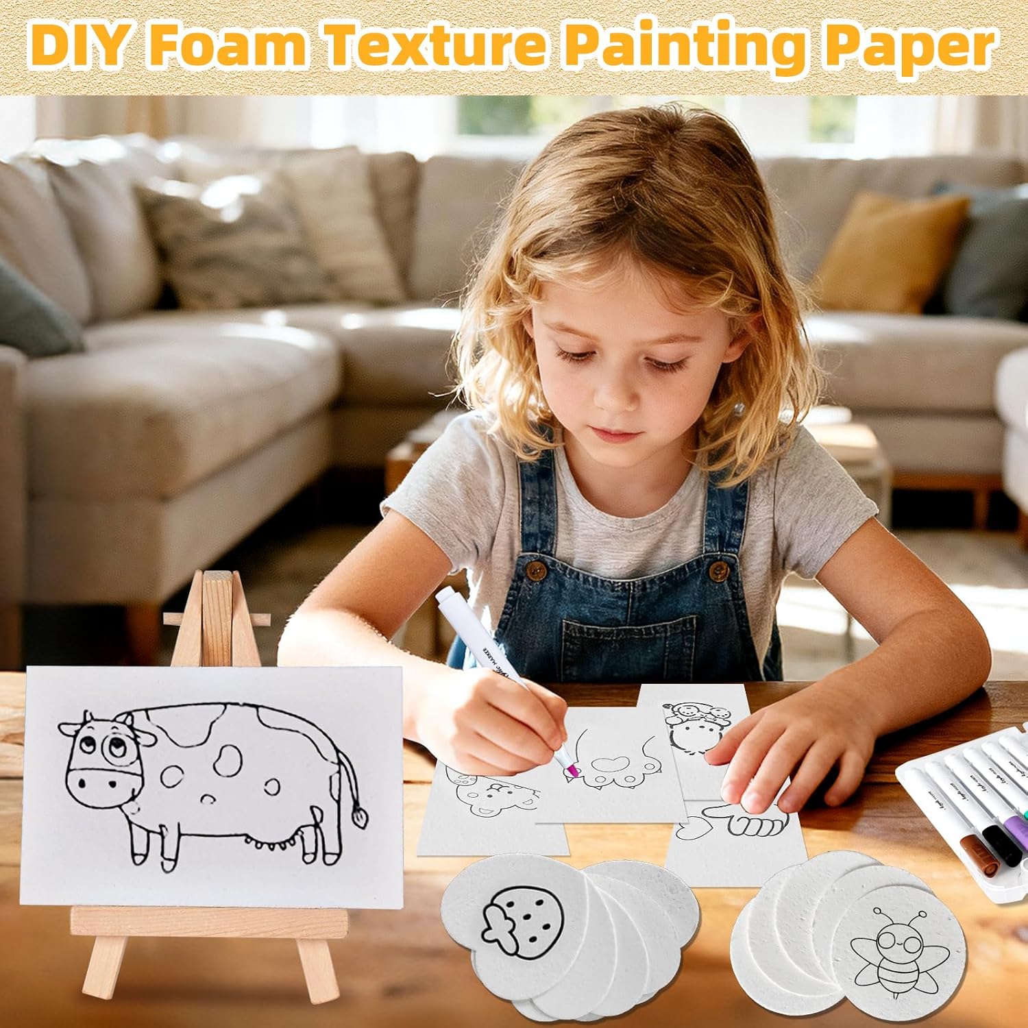 Kit Magico per Pittura con Texture 3D in Schiuma: Il nostro kit utilizza un materiale espanso attivato dall'umidità che, a contatto con l'acqua, si espande trasformando disegni piatti in dinamiche opere d'arte 3D. Perfetto per creare effetti di pittura gonfiabile (magic puffy paint) e per esperimenti creativi! Sviluppa Creatività & Motricità: Questo kit allena la motricità fine, la percezione dei colori e stimola la creazione autonoma. Adatto per giocare da soli o come attività creativa per tutta la famiglia. Ampia Gamma di Applicazioni: Compatibile con pennarelli, matite colorate e acquerelli. Questo kit magico per pittura con texture 3D è ideale per biglietti di auguri, progetti scolastici, decorazioni fai-da-te e regali unici. Contenuto della Confezione: 10 fogli di carta morbida vuoti, 1 cavalletto mini, 12 matite colorate vivaci, 3 matite acquarellabili a punta morbida, 5 fogli di schiuma rotondi, 5 fogli di schiuma a forma di cuore, 2 fogli di schiuma con motivi, 1 collana di perline (20 pezzi). Puoi creare tutto ciò che vuoi! Regalo Perfetto per Giovani Artisti: Che sia per un compleanno o per una festa, questo kit magico per pittura con texture entusiasmerà come regalo sia divertente che educativo, che promuove la creatività e l'immaginazione.