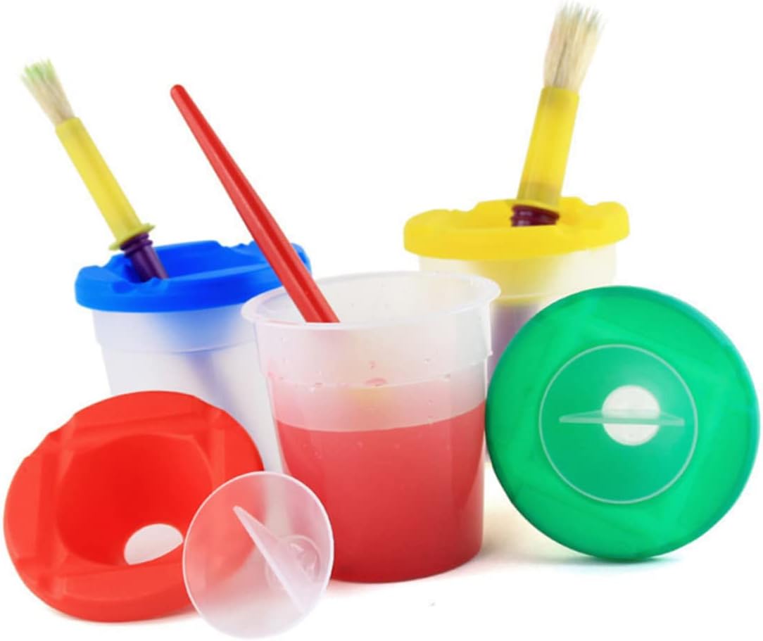 Kit di pennelli per pittura: perfetto per i giovani artisti per evitare enormi schizzi, strumento per dipingere per Pennello per dipingere con la tazza: i contenitori per dipingere sono progettati a prova di perdite, non c'è bisogno di preoccuparsi delle perdite quando il contenitore cade, strumento per dipingere per Strumento da disegno per : tazza trasparente per osservare facilmente il colore, contenitore per pigmenti colorati all'interno e coperchio della tazza multicolore e manico del pennello per un uso separato dei , pratico e facile da , strumento di pittura per Kit di pittura per : i contenitori per pittura anti-goccia sono ben realizzati e contengono abbastanza vernice, strumento per dipingere per Strumento per graffiti: set per pittura che include 5 bicchieri di casuali e 4 pennelli di normali, strumento per pittura per