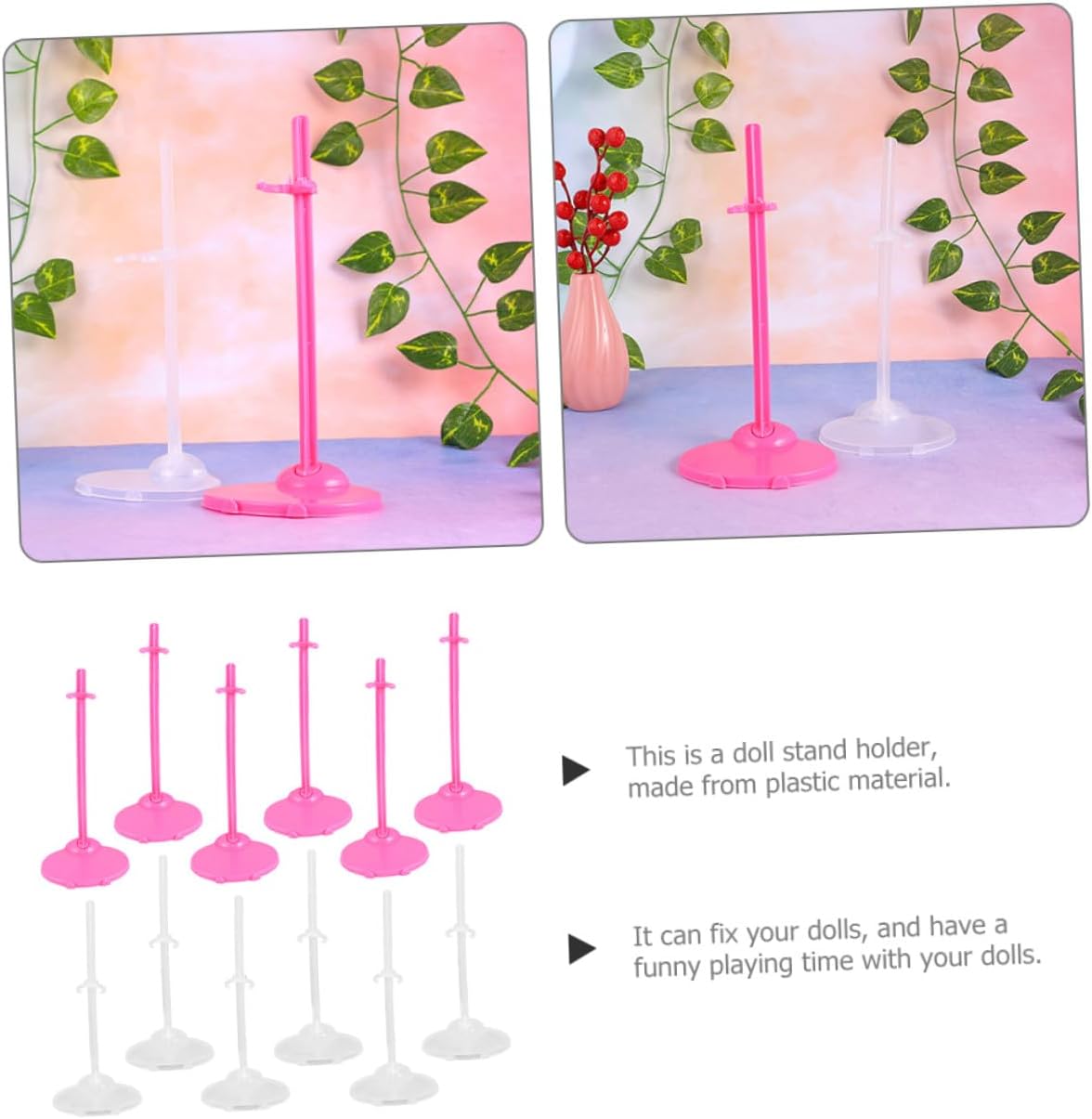 Espositore per bambole giocattolo: il design degli espositori per bambole è elegante e attraente, il che può migliorare il gusto e la creatività dei , espositore per bambole in plastica Clip per esposizione di bambole: materiale eccellente, buona fattura, molto robusto e durevole da usare a lungo termine, il supporto per esposizione di action figure ti offre praticità, supporti per bambole Espositore da tavolo per bambole: ottimo per bambole, figure, modelli, ecc. esporre giocattoli nella stanza su uno scaffale, un tavolo o un mobiletto, supporti per figure giocattolo Posizionamento sul tavolo delle bambole: scelta perfetta per i tuoi che indossano bambole in occasione di feste speciali come compleanni, natale, ecc., questi supporti per figure offrono loro un grande divertimento, supporti per espositori per bambole Supporto per bambole d'azione: adatto a bambole di diverse dimensioni, mantiene la tua in piedi e ti consente di goderti la loro bellezza, supporti per bambole