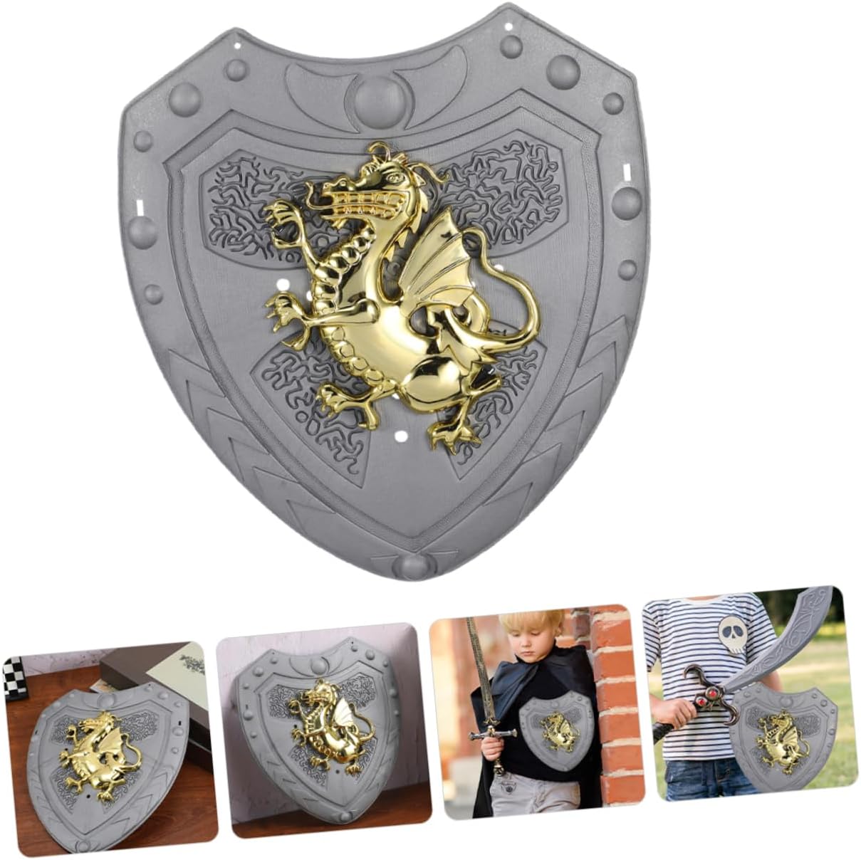 Sicuro per: questo scudo è stato appositamente progettato ed è sicuro e adatto ai bambini piccoli. scudo medievale, scudo del ragazzo soldato Design accattivante del drago: la forma del drago è accattivante e unica, il che lo rende una grande aggiunta al costume di qualsiasi bambino o alla collezione di giocattoli, allo scudo del cavaliere, al giocattolo del drago medievale Aspetto distintivo: il design del drago è sia distintivo che accattivante, assicurandoti di distinguerti durante o durante gli eventi in costume. armatura scudo per, decorazione murale medievale Ideale per giochi di ruolo: ideale per giochi di ruolo, questo scudo aumenta il divertimento e l'eccitazione di fingere di essere un cavaliere o un guerriero, scudo giocattolo, costume da cavaliere per i più piccoli Design unico del drago: il design a forma di drago è unico e accattivante, rendendolo un pezzo straordinario per qualsiasi gioco per bambini o evento in costume, costume da cavaliere per, armatura scudo per