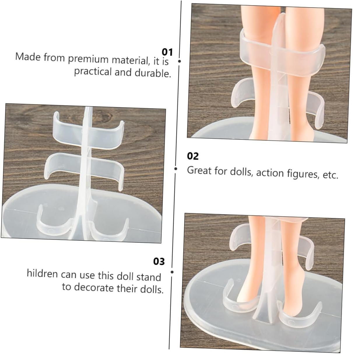 Supporto per bambola: realizzato in materiale di alta qualità, è pratico e un accessorio per bambole Telaio di supporto per bambole: i supporti per le gambe delle bambole sono semplici da usare e tengono facilmente le gambe delle bambole, supporto per bambole Base della bambola: leggera e facile da agganciare alla gamba della bambola, comoda da usare, supporto per esposizione della bambola Porta bambola: perfetto per esporre la bambola, facile da sostenere le gambe della bambola, accessori per bambole Supporto per bambola: realizzato in materiale di alta qualità, è adatto per un uso prolungato, supporto per esposizione di bambole